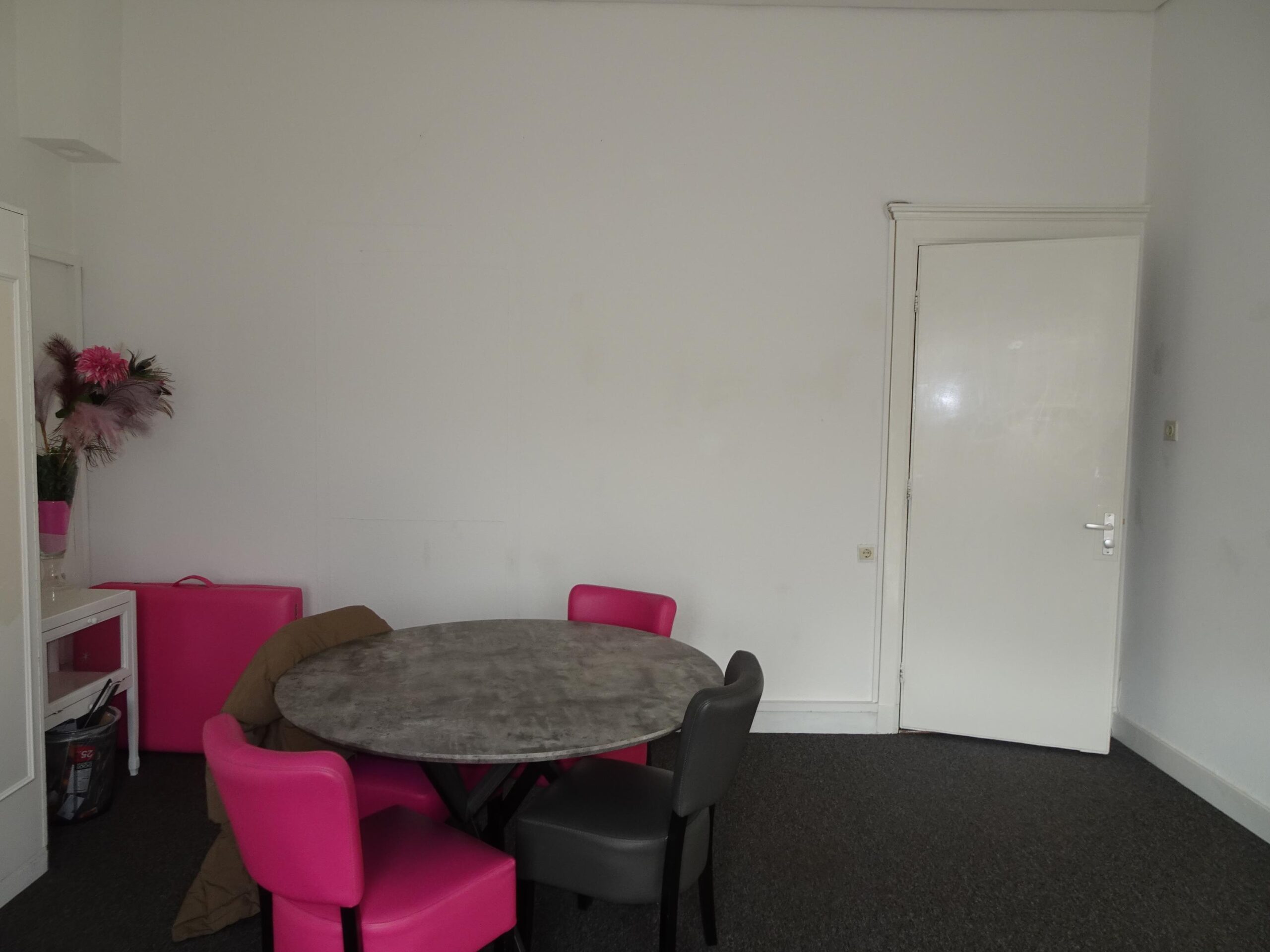 Entree vanaf de St. Annastraat met tevens achteringang voor personeel, vestibule, hal met trapopgang naar de eerste verdieping. Via de overloop toegang tot de kantoorkamer. De kantoorkamer is aan de achterzijde van het pand gelegen wat zorgt voor rust en privacy. Daarnaast heeft de kantoorkamer middels twee openslaande deuren toegang tot het eigen dakterras. De ruimte is tevens voorzien van wastafel en airco.