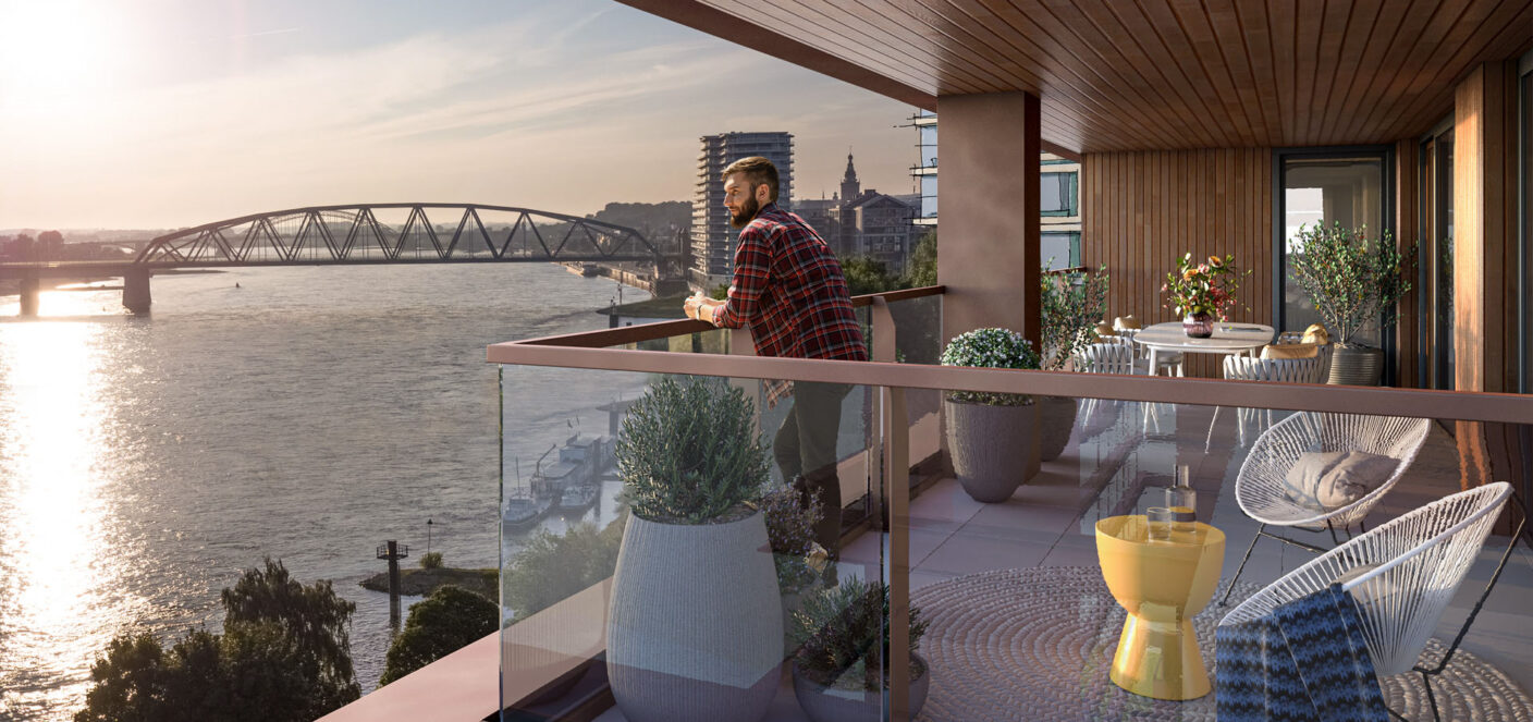 Wonen op hoogte met een panoramisch uitzicht over de stad of genieten van natuurlijke taferelen, de Iris Penthouses bieden een unieke woonervaring. Met een constant veranderend decor van Hollandse luchten en een levendige rivier, bieden deze penthouses een dagelijks schouwspel van zonsopgang tot de verlichte avondstad.