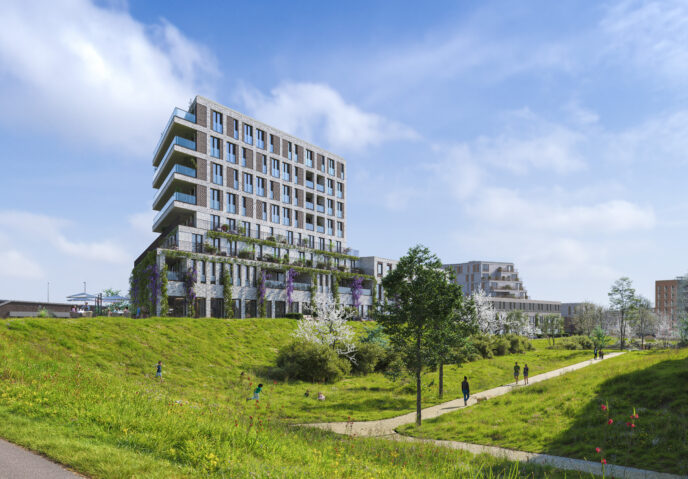 Op een fantastische locatie in Nijmegen, op de voormalige ROC-locatie in Dukenburg, komt een nieuwe woonwijk: Spot24. Hier woon je in het groen én in verbinding met je buurt en de stad. In drie fases worden er circa 450 aantrekkelijke appartementen gebouwd. De wijk wordt verdeeld in drie deelgebieden, met sociale knooppunten, parkjes voor sport en relaxen en kleurige binnentuinen. Het is dé plek waar leven, genieten en ontmoeten samenkomen.