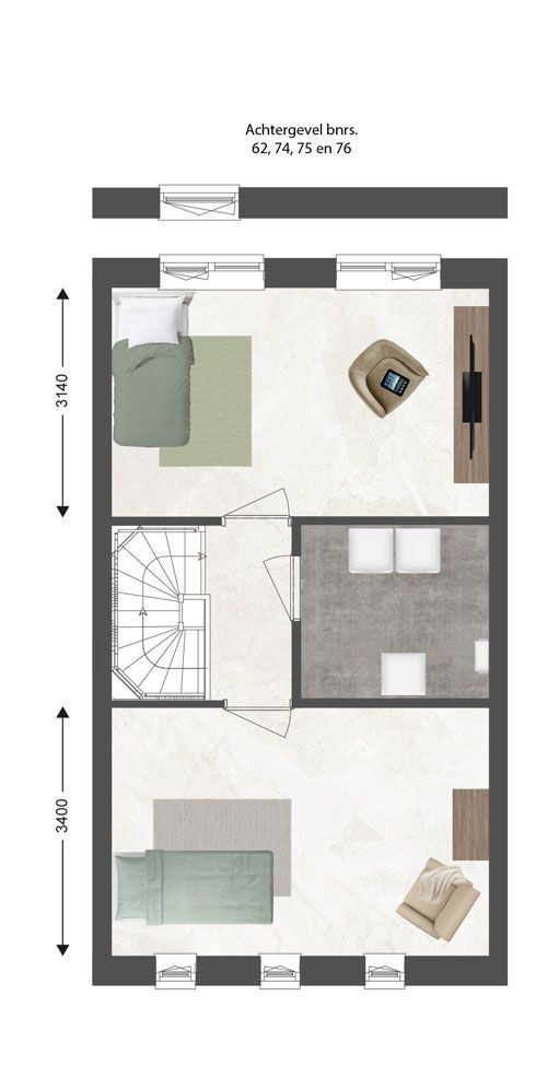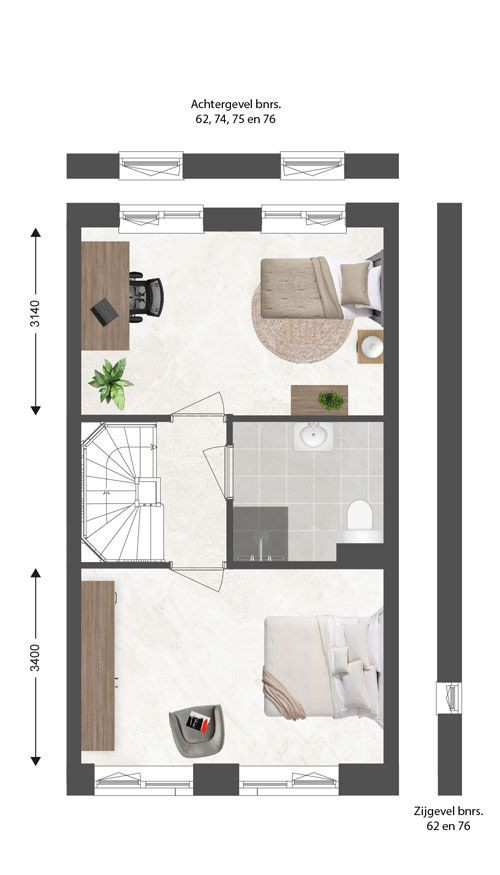 De indeling van deze woning is doordacht en flexibel. Op de begane grond bevindt zich de hal met toilet, de keuken aan de voorkant en het woongedeelte aan de achterzijde. Grote ramen tot aan de grond aan de achterzijde zorgen voor een naadloze verbinding met buiten. De eerste verdieping kan naar wens worden gebruikt, bijvoorbeeld als woonverdieping. Op de tweede verdieping vind je een badkamer en 2 ruime slaapkamers. De derde verdieping bevat nog eens 2 slaapkamers en de technische ruimte. Deze Urban villa hoek staat voor eigentijds wonen met stijl en veelzijdigheid.