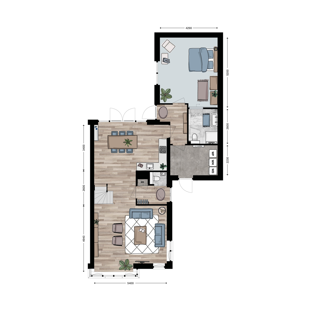Welkom in je nieuwe thuis! In deze levensloopbestendige twee-onder-een-kapwoningen – met slaapkamer en badkamer op de begane grond – vind je alles om heerlijk te leven, nu én in de toekomst. Je auto kun je kwijt op de parkeerplek op eigen terrein en in de ruime berging is genoeg plek voor de (elektrische) fietsen. De zonrijke tuin op het zuidwesten maakt het plaatje helemaal af.