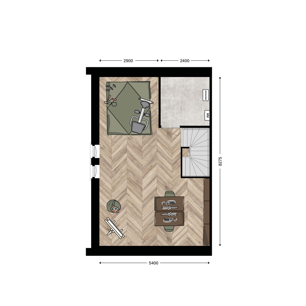 Via de zij-entree betreed je de hal naar de woonkamer en open keuken. De grote raampartijen zorgen voor veel lichtinval. De erker aan de voorzijde bij bouwnummers 41, 43, 45, 47, 49, 51, 57 en 59 zorgt voor extra woongenot en lichtinval. Via de keuken bereik je de hal naar de berging en de ruime slaapkamer. Vanuit de slaapkamer bereik je de badkamer. De ruime verdieping* biedt volop mogelijkheden. Wordt dit een hobbyruimte, of misschien de speel- of logeerkamer voor de kleinkinderen?