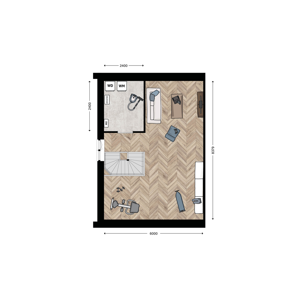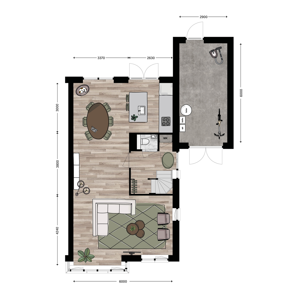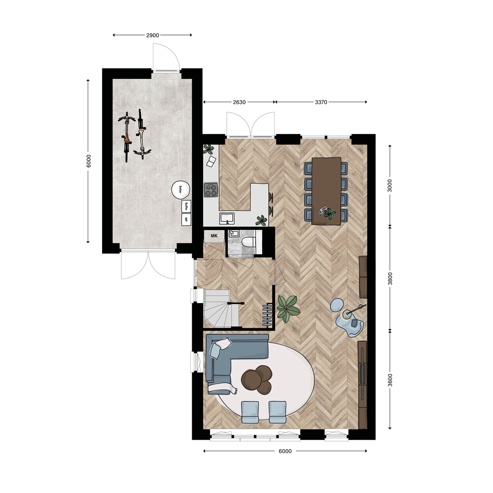 – Uitbouw begane grond (2,4 meter). Je profiteert van een extra ruime woonkamer en keuken.