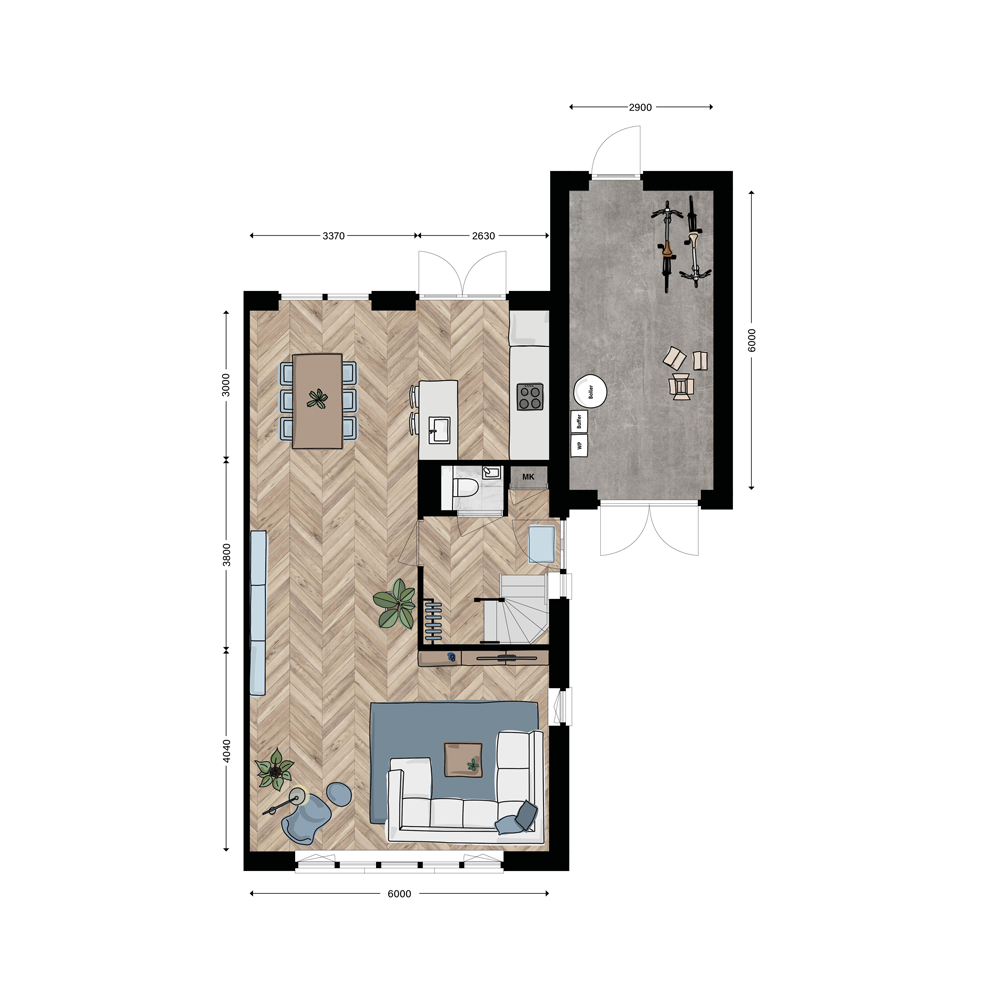 – Uitbouw begane grond (2,4 meter). Je profiteert van een extra ruime woonkamer en keuken.