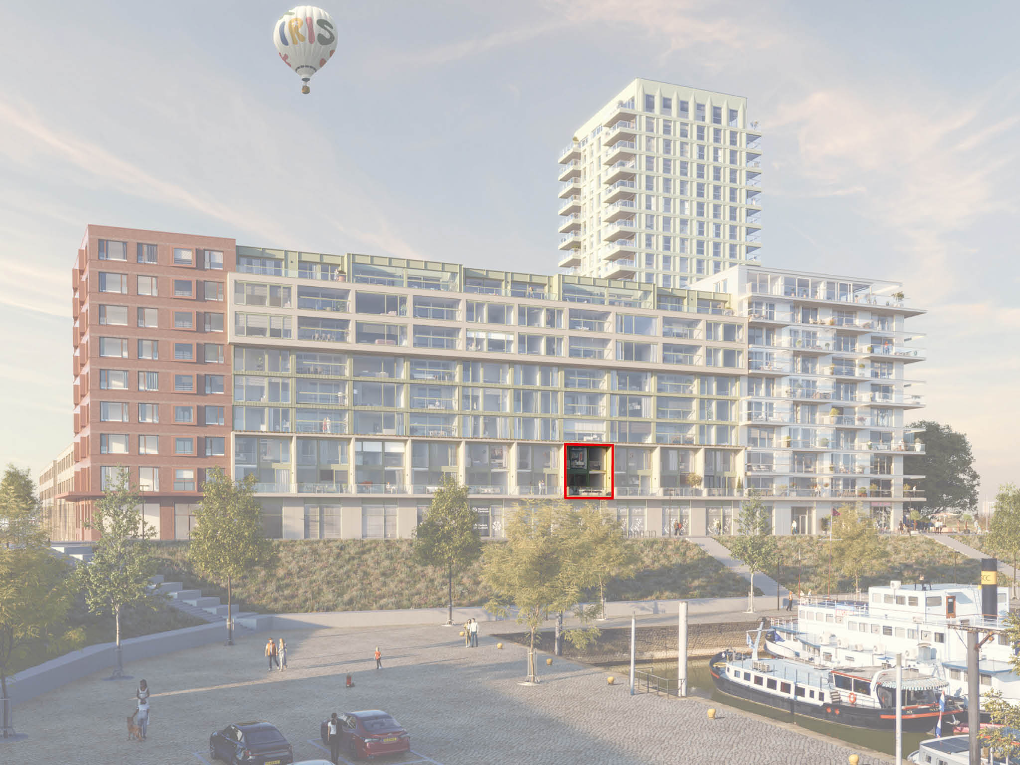 Hier stap je via de entree binnen in een lichte, open woonruimte waar de moderne keuken met kookeiland meteen de aandacht trekt. Wat een fijne plek om samen te koken, te borrelen of gewoon lekker te ontspannen! Halverwege de woonruimte vind je de hal met toegang tot de berging, met plek voor je wasmachine en droger, en een separaat toilet. Aan de achterzijde van de woning is er plek voor een gezellige zithoek met uitzicht op het grote balkon naar de haven. Zet op warme dagen de schuifpui open en laat de zomerlucht en Iris vibes naar binnen stromen. Zie je het al voor je?