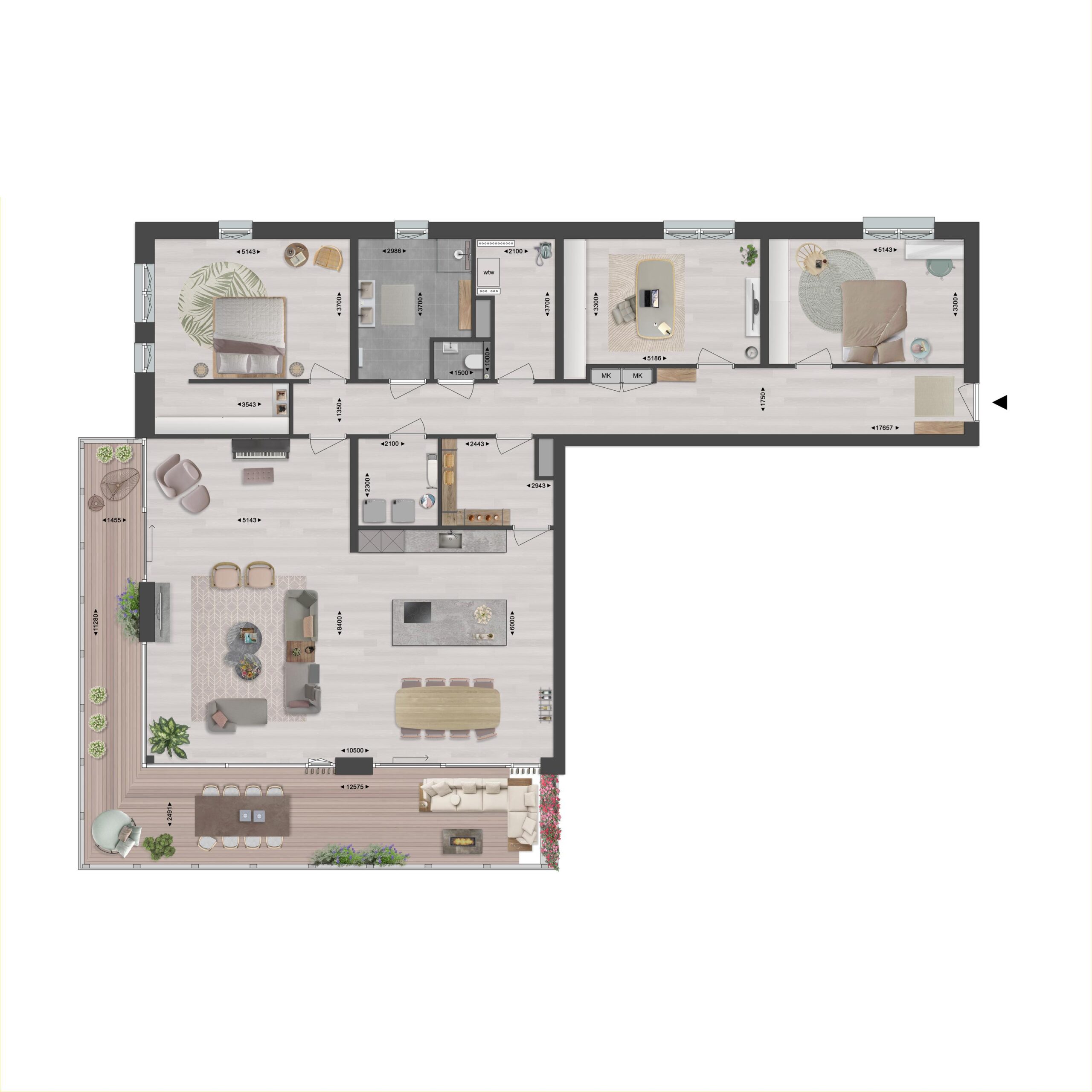Het grootste type van alle appartementen is de Salix. Met drie ruime slaapkamers en een royale L-vormige living zijn dit fantastische appartementen met een heerlijke buitenruimte. Op de derde verdieping van ieder gebouw bevinden zich twee van deze penthouses. En daarnaast is er ook een type Salix op de begane grond.