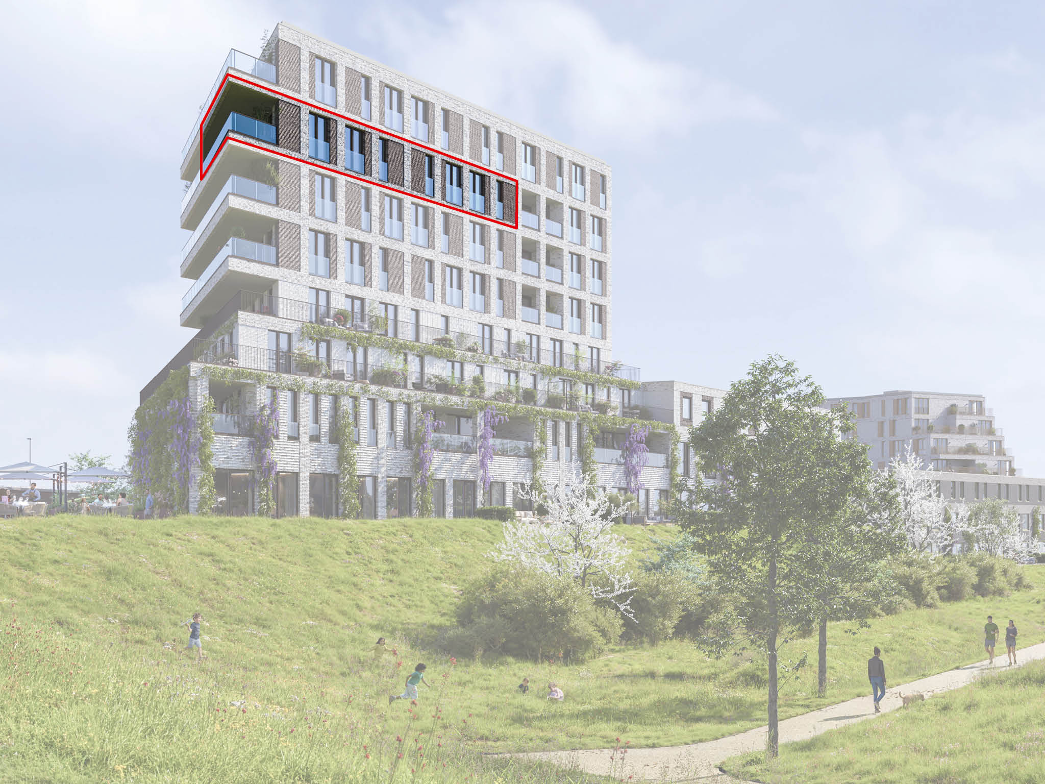 De hal mondt uit in de grote woon-/keukenruimte: het kloppende hart van deze woning. Hier komt alles samen. De open keuken met kookeiland richt je helemaal naar eigen smaak in. Zet er een lange eettafel neer om ’s ochtends gezellig te ontbijten of ‘s avonds uitgebreid te dineren met vrienden. Creëer ook een comfortabele zithoek om te ontspannen met een boek of een serie. En het meest bijzondere van deze woning? Het grote balkon, dat ideaal is gelegen op het zuidwesten. Dat betekent zon vanaf de vroege middag, tot zonsondergang. Sla de deuren aan de lange schuine zijde van de woning open, lunch buiten, of geniet van de avondzon in de privacy van je eigen buitenruimte. Wat een luxe. De gegarandeerde plek in de ondergrondse parkeergarage maakt het woongenot compleet.