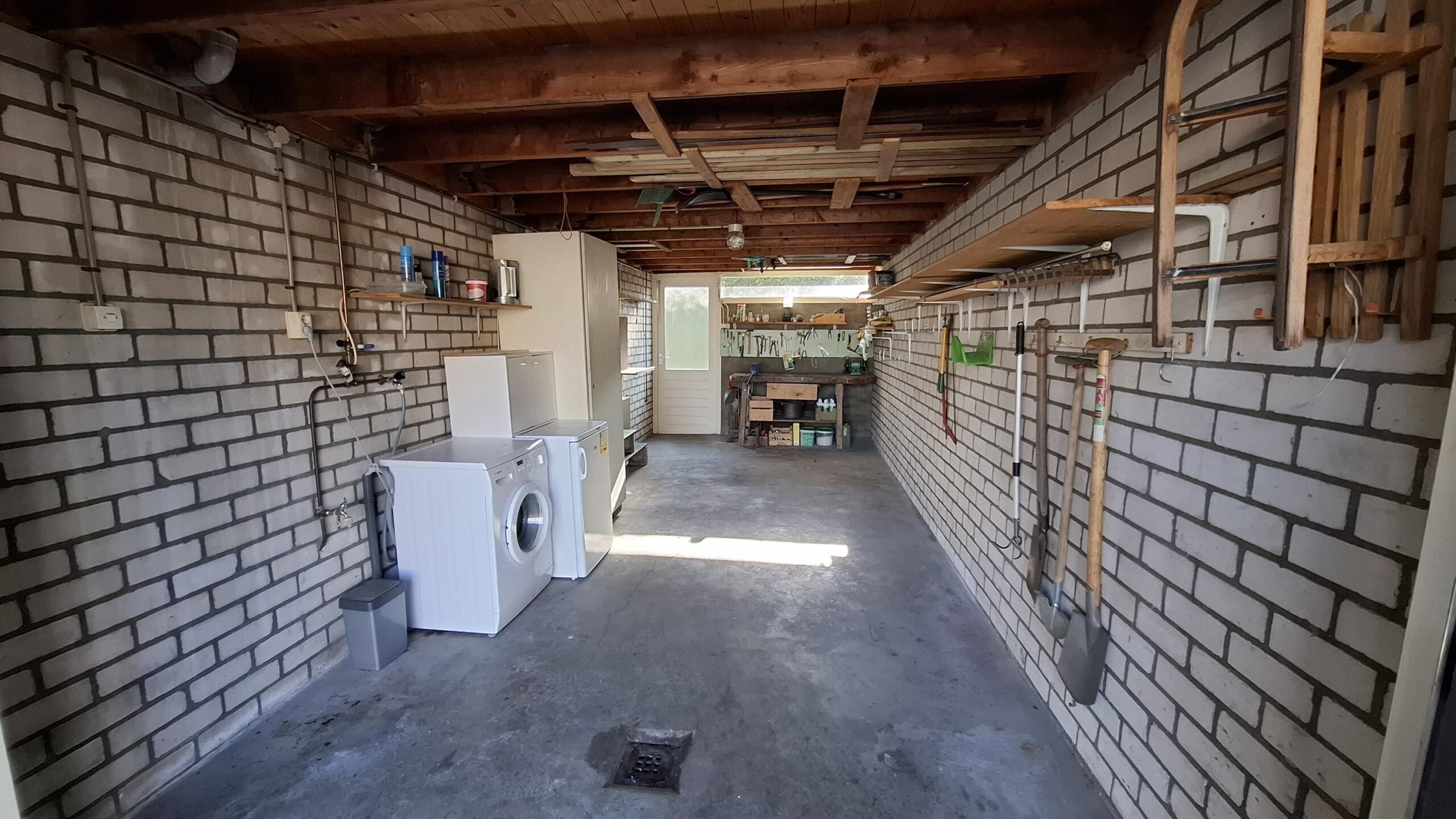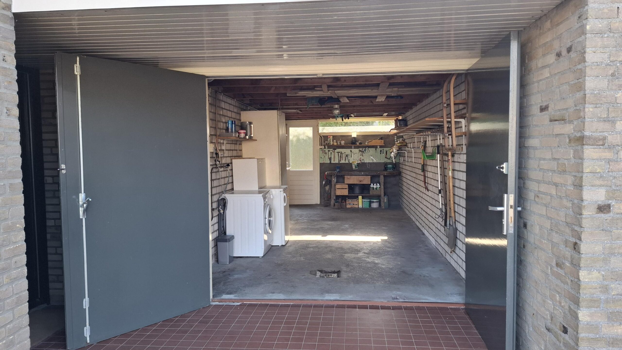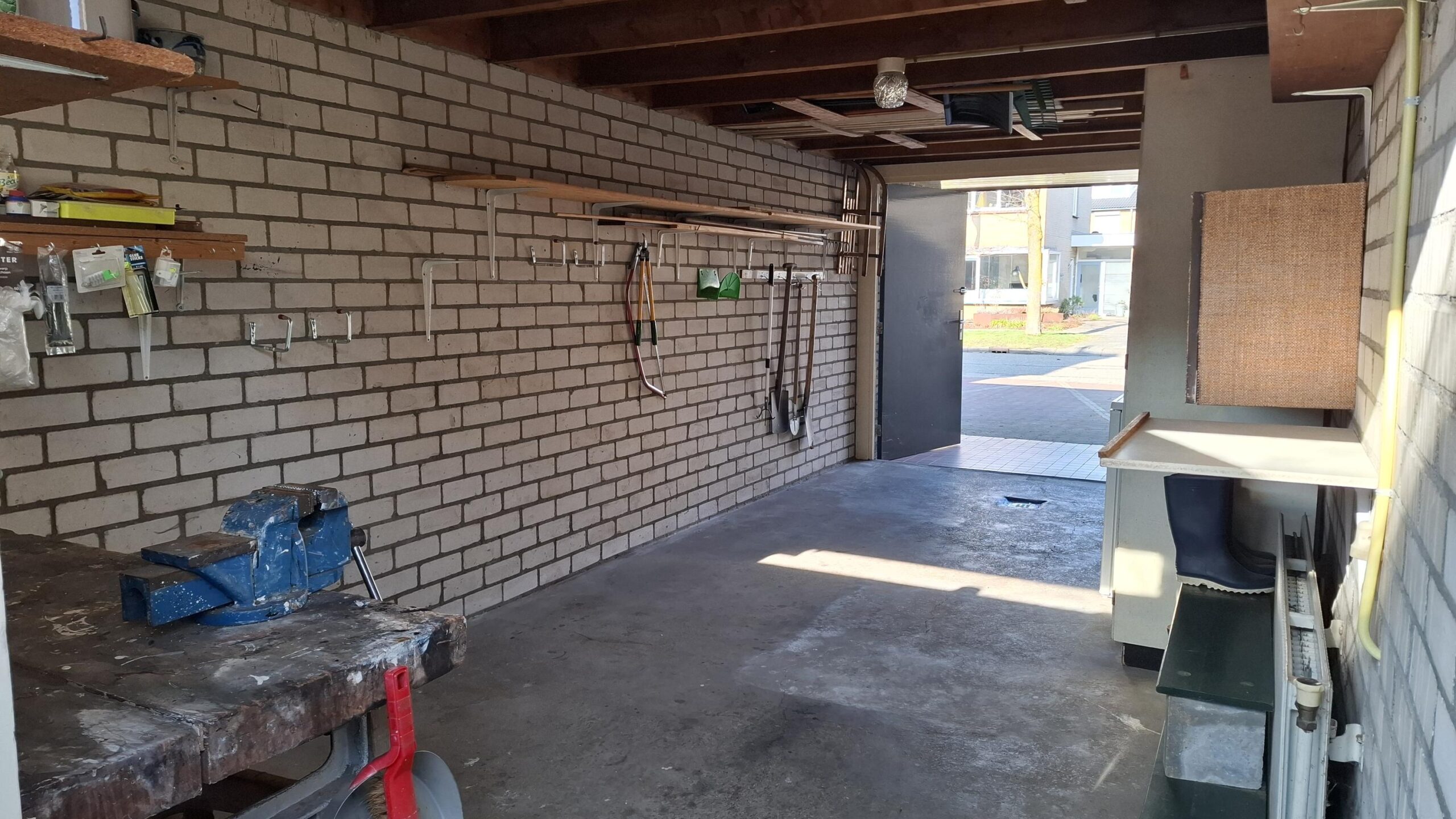 De garage heeft een oppervlakte van ca. 20 m2 en is voorzien van vernieuwde houten pui met openslaande deuren naar de oprit, verwarming, elektra, kraantje, afvoerputje en loopdeur naar de achtertuin.