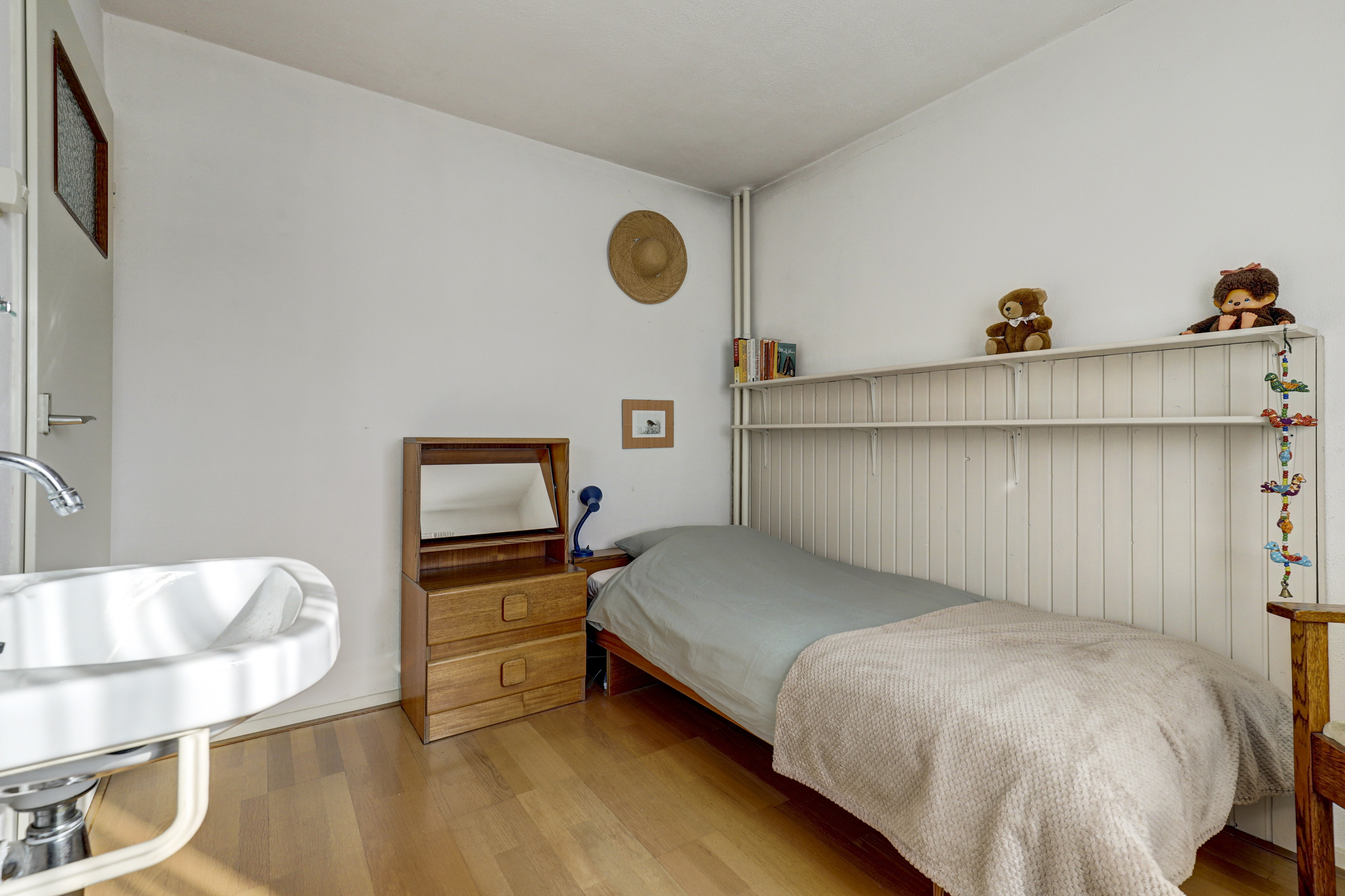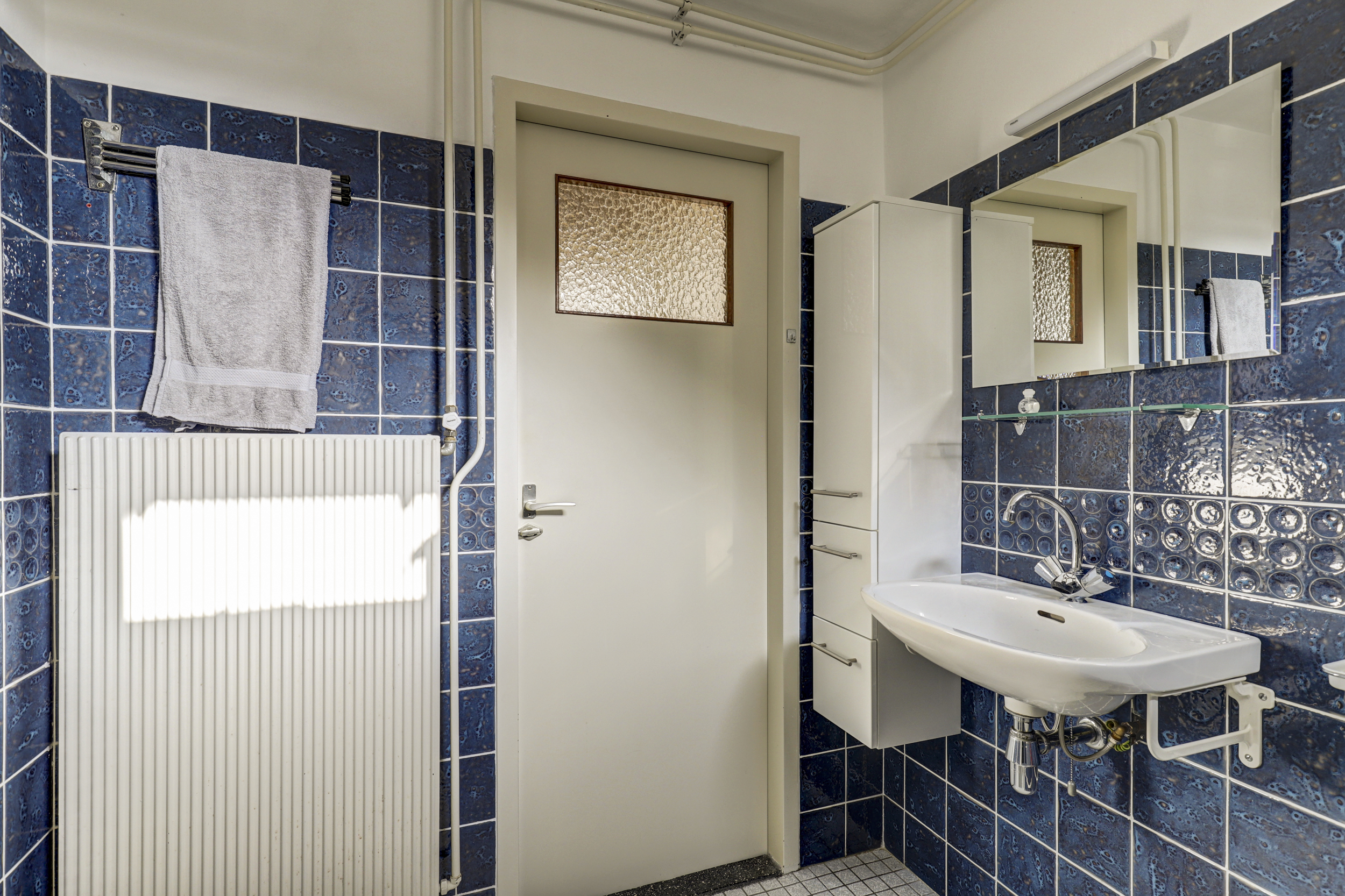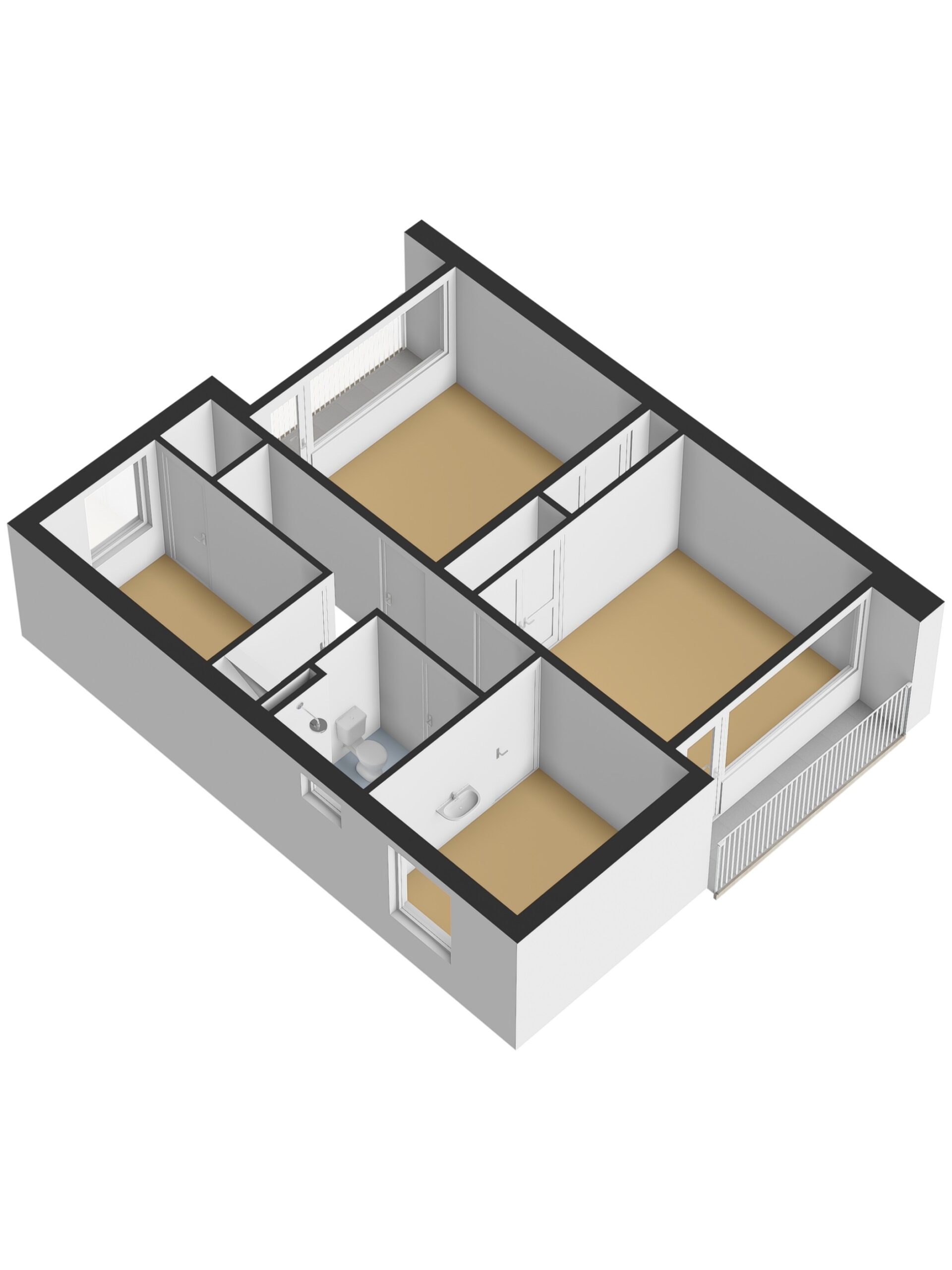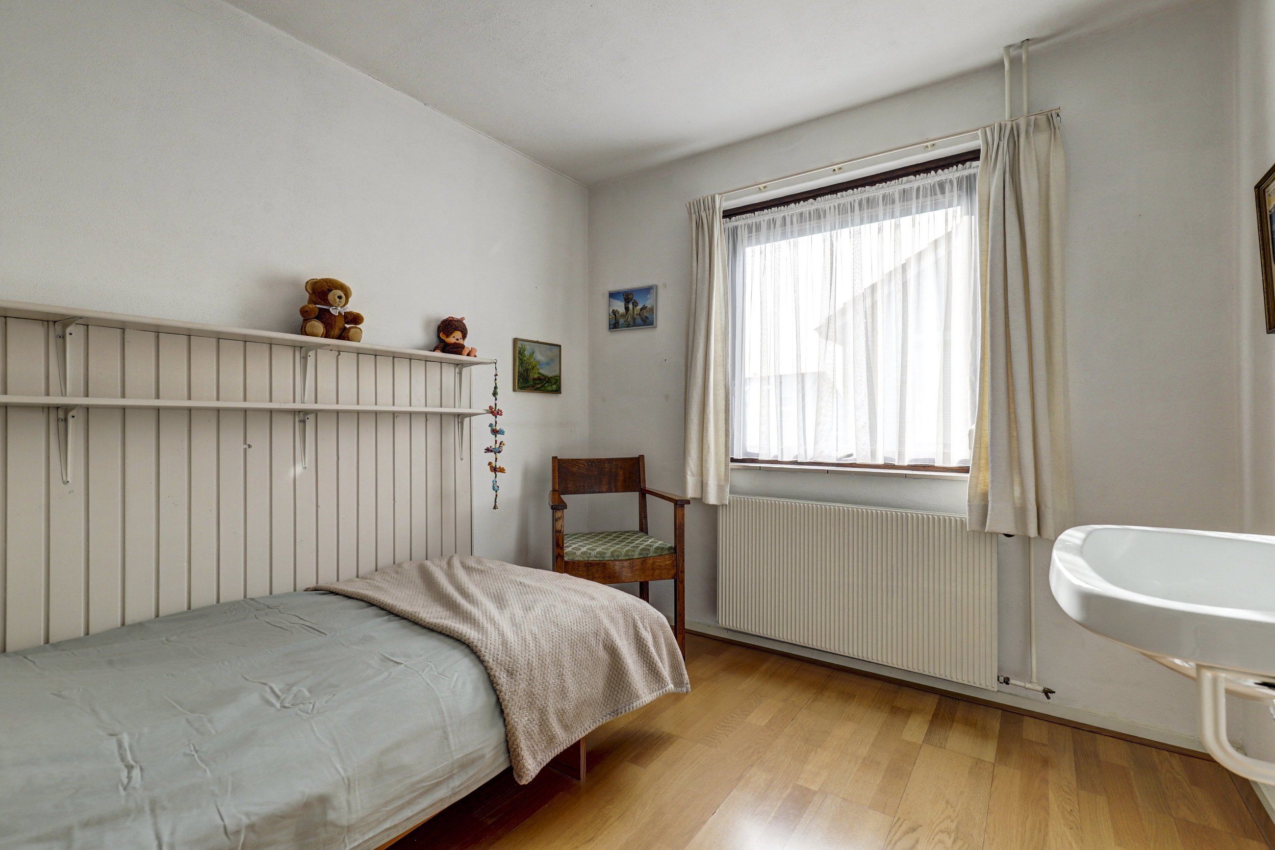 De overloop met laminaatvloer biedt toegang tot 4 slaapkamers, de badkamer en de trap naar de tweede verdieping. 3 slaapkamers zijn voorzien van laminaatvloer en 1 slaapkamer is voorzien van vloerbedekking. De 2 grootste slaapkamers hebben toegang tot het voor- of het achterbalkon. 3 slaapkamers hebben vaste kasten. 1 slaapkamer heeft een wastafel met koud en warmwater en een rolluik. De badkamer beschikt over een inloopdouche, toilet, wastafel, raam en verwarming.