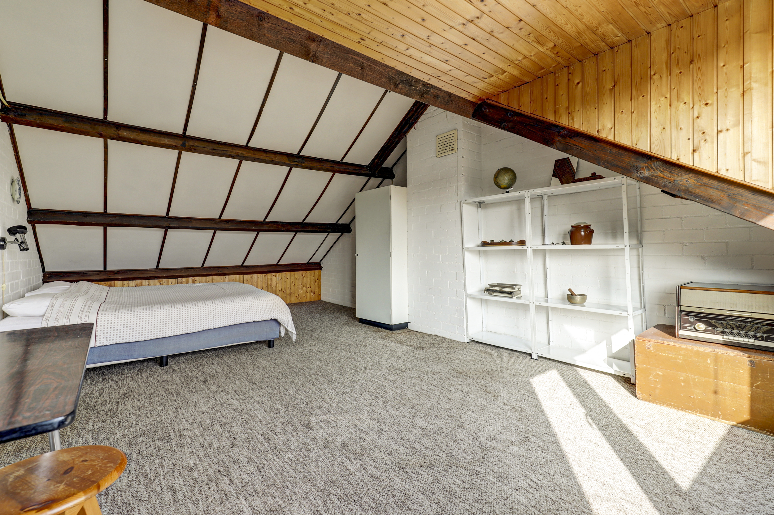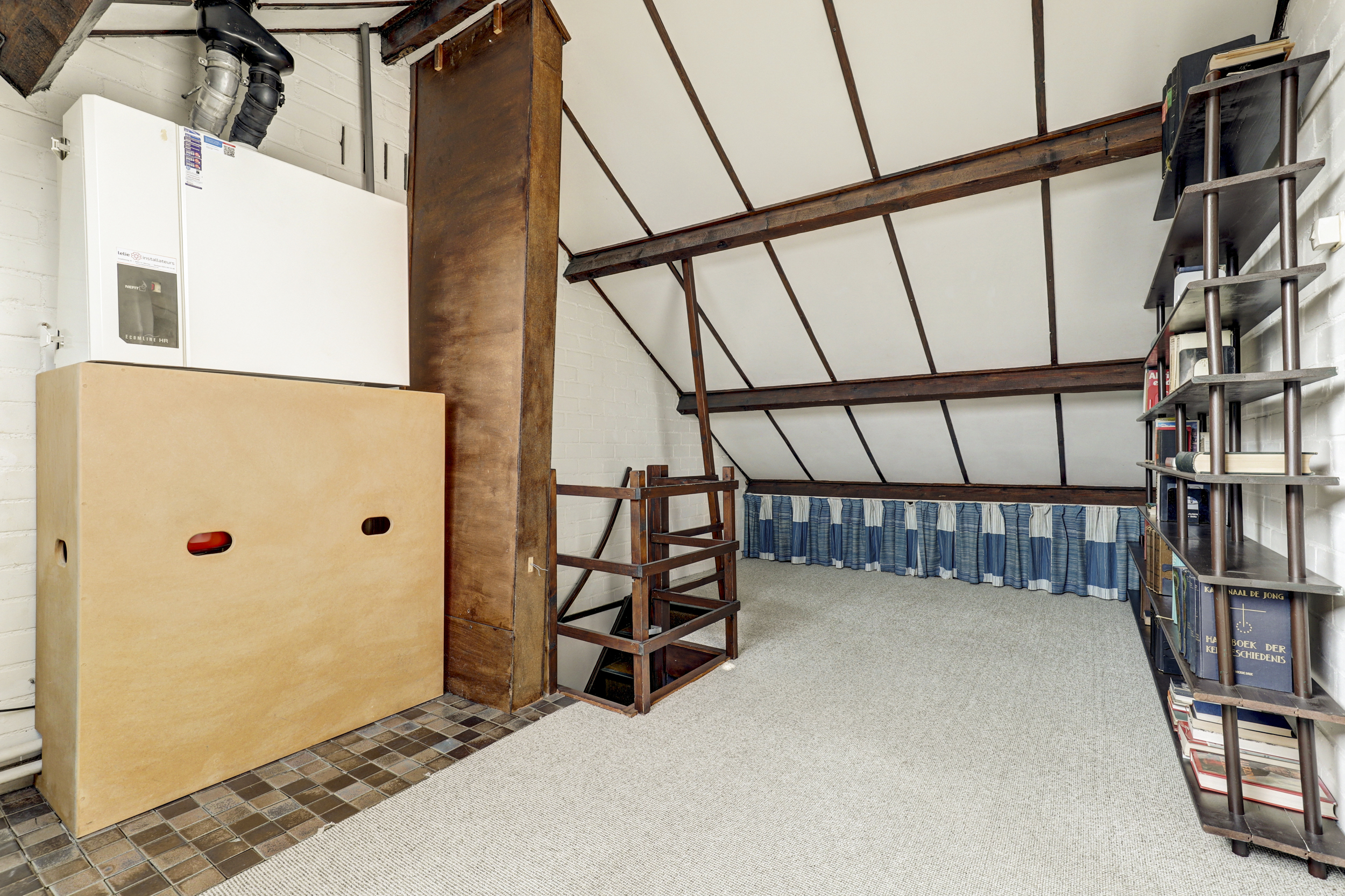Ruime voorzolder met groot dakvenster, bergruimte, opstelplaats voor de Cv-ketel (Nefit) en mogelijkheid voor de wasmachine/droger en geeft toegang tot de 5de slaapkamer. De royale 5de slaapkamer heeft aan de achterzijde een dakkapel met kunststof draaikiepramen, knieschotten voor extra bergruimte en vloerbedekking. Het dak is van binnenuit na geïsoleerd.