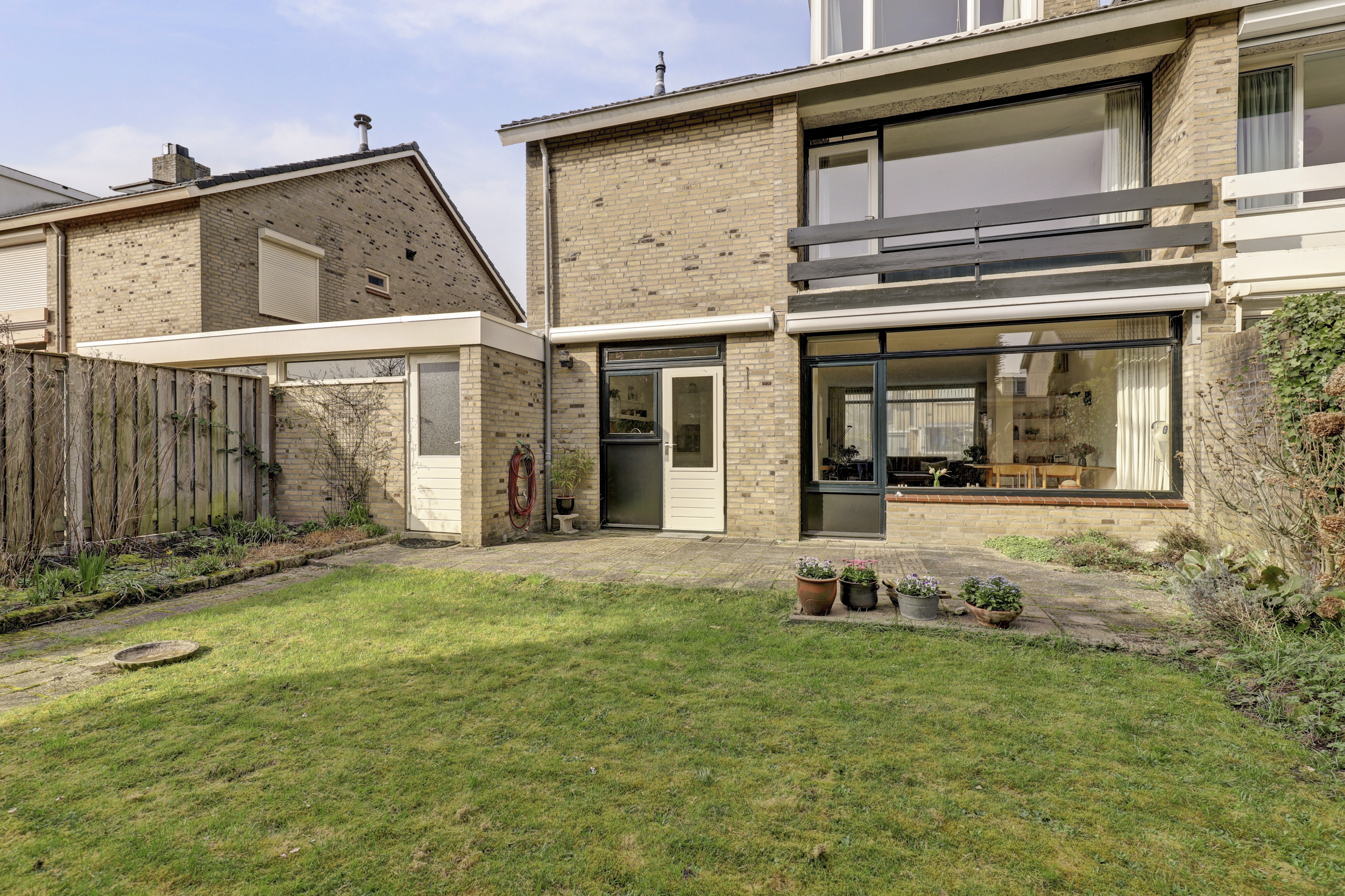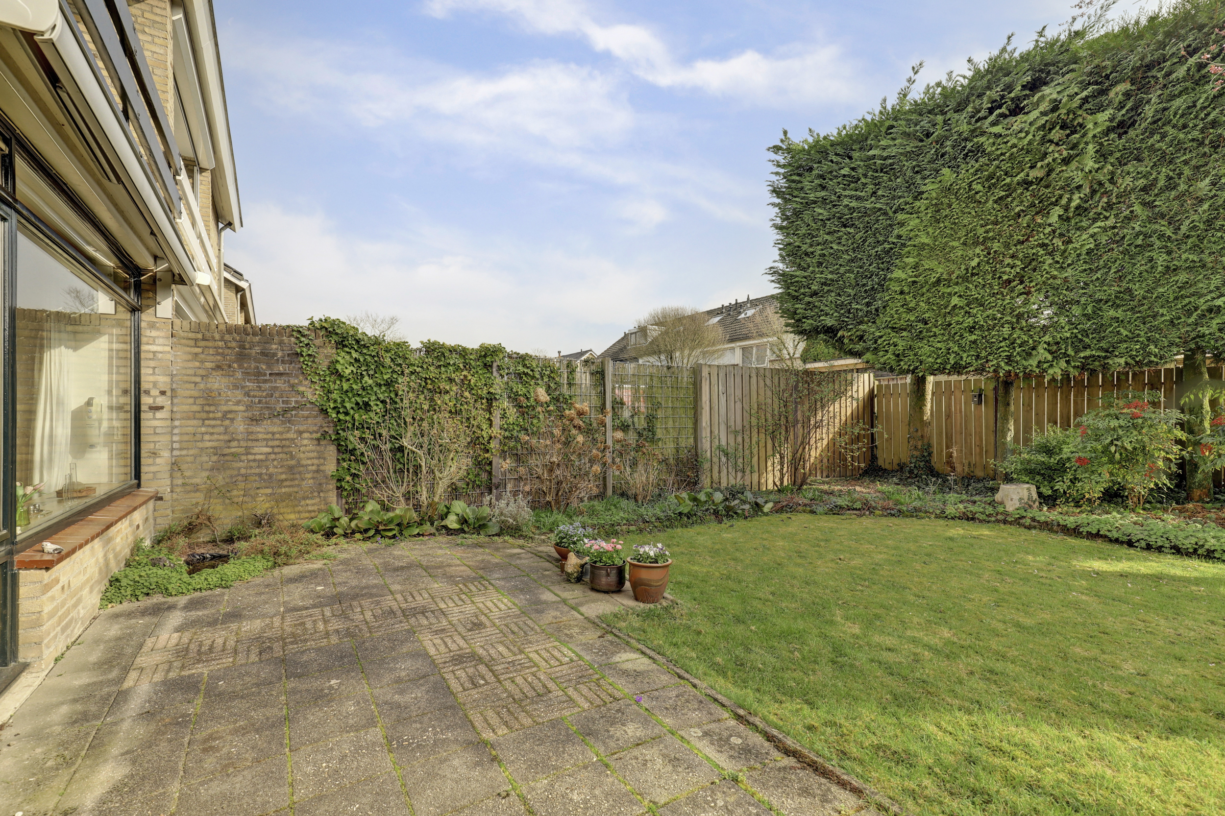 De zonnige achtertuin is gelegen op het zuidoosten en heeft een royaal terras met over de gehele breedte van de woning 2 elektrisch zonneschermen en een buitenkraan. De achtertuin is een heerlijke plek om rustig te kunnen genieten. Voor het huis ligt een oprit om op eigen terrein te parkeren.