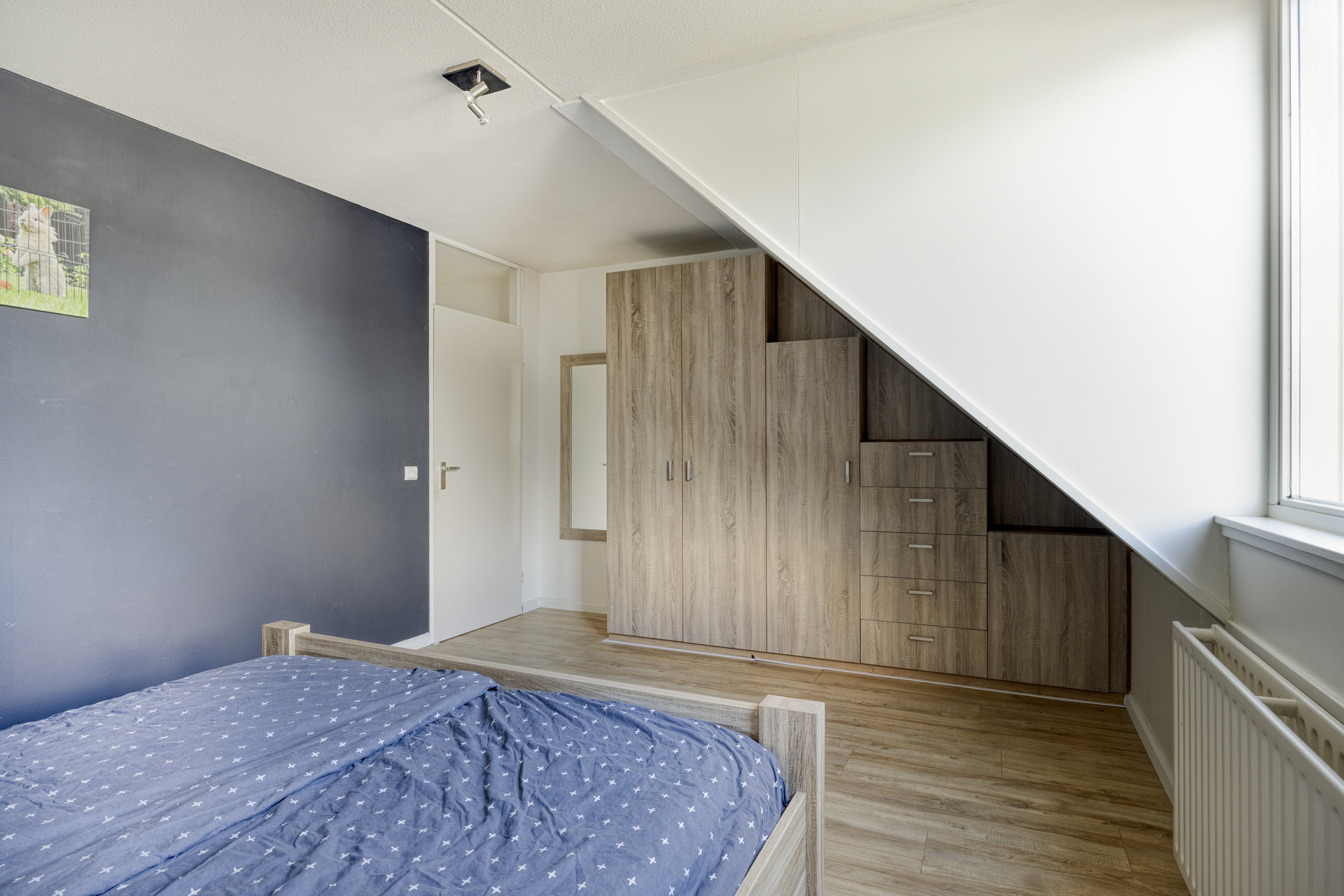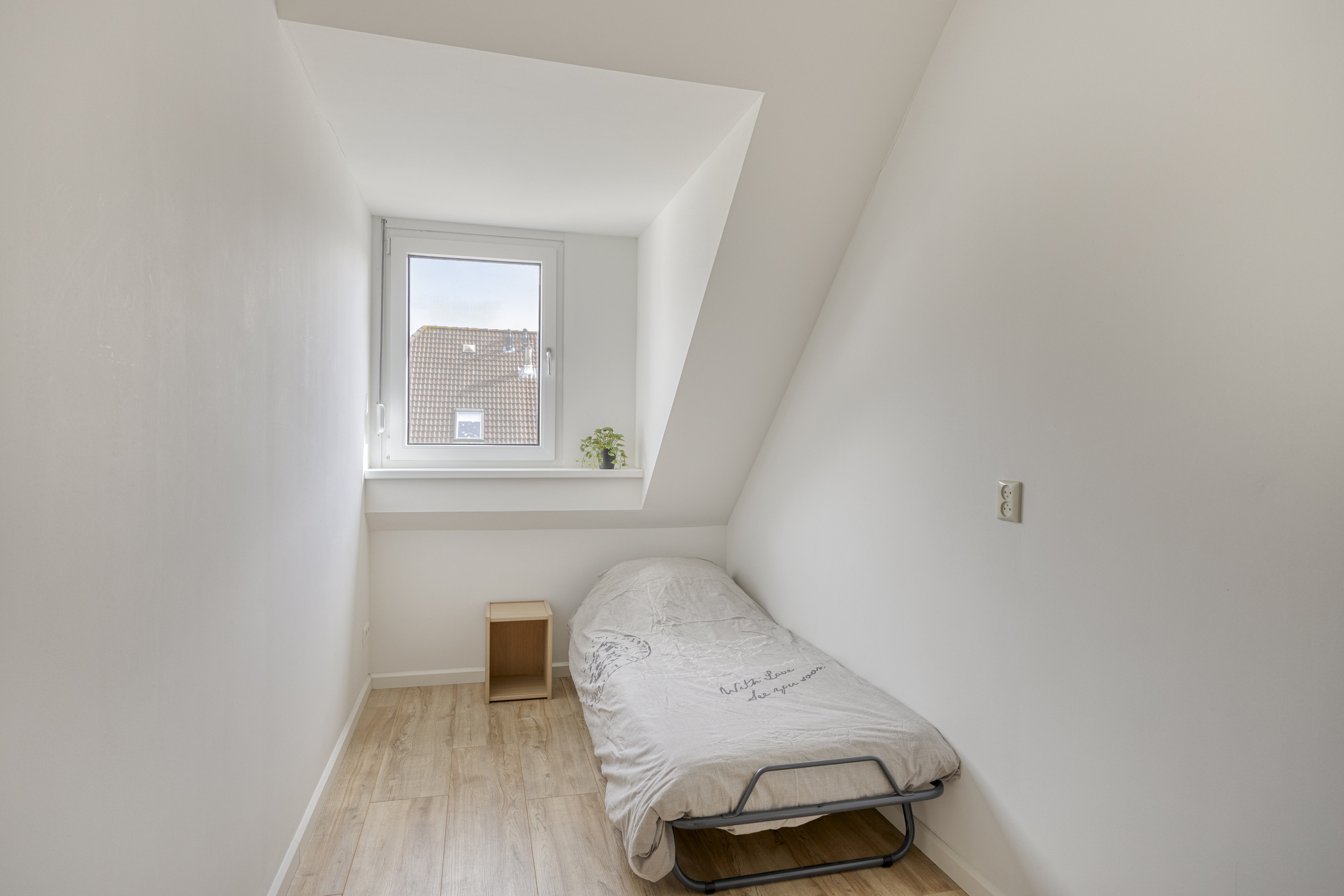 Overloop met vlizotrap naar de zolderverdieping en toegang tot de 3 slaapkamers en de badkamer. De 2 slaapkamers aan de achterzijde zijn voorzien van dakkapel, welke in 2021 is geplaatst en is voorzien van kunststof kozijnen met draai-kiepramen, HR++ glas, horren en rolluiken. Aan de voorzijde bindt zich de 3de slaapkamer. Deze kamer is royaal en tevens voorzien van grote dakkapel met screen. De verzorgde en lichte badkamer heeft een dubbele wastafel, 2de toilet, nette inloopdouche met glazen douchewand, witgoedaansluiting en is geheel betegeld in een lichte kleurstelling. De verdieping is voorzien van laminaatvloer en nette wand- en plafondafwerking.