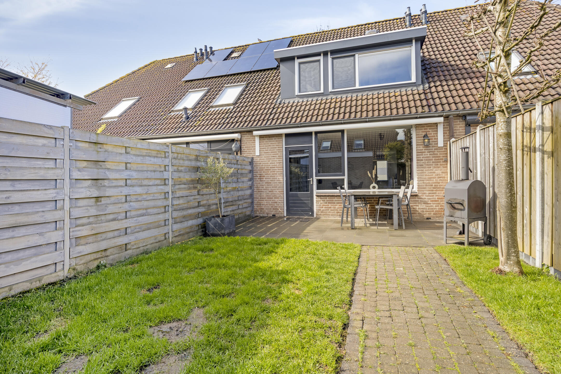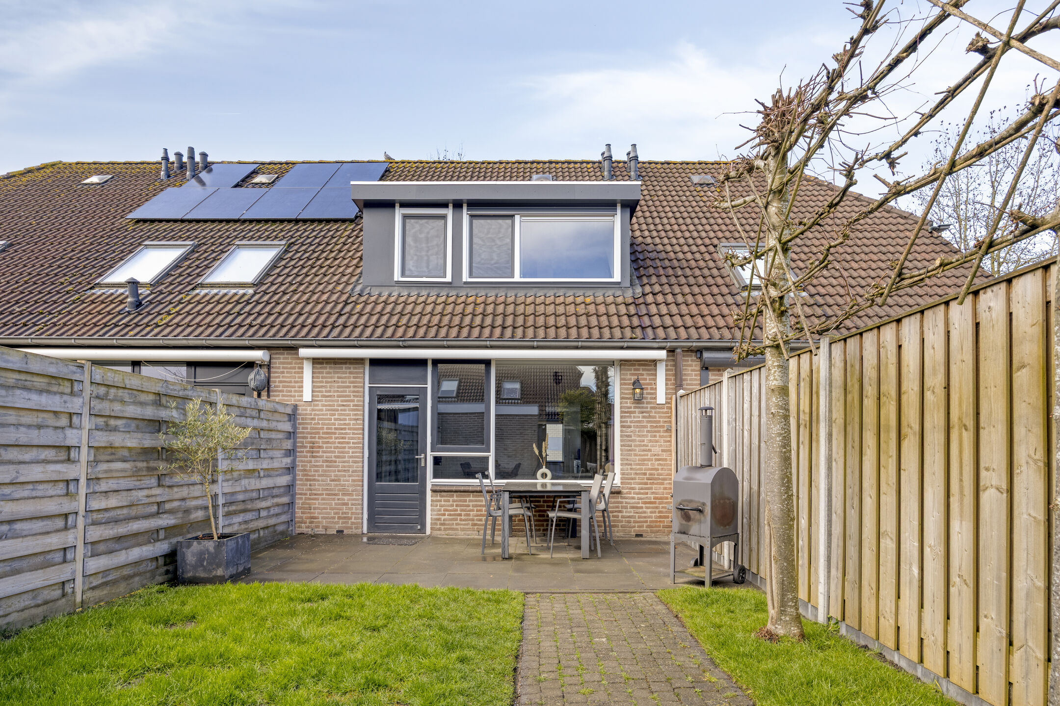 Nette tussenwoning met dakkapel aan de voor- en achterzijde en verzorgde tuin met stenen berging. De woning beschikt over een lichte woonkamer met deur naar de achtertuin, halfopen woon-/eetkeuken, handige vaste bergkasten en nette toiletruimte. Op de 1ste verdieping bevinden zich 3 slaapkamers met dakkapellen en een verzorgde badkamer. Via een vlizotrap is de ruime bergzolder te bereiken.