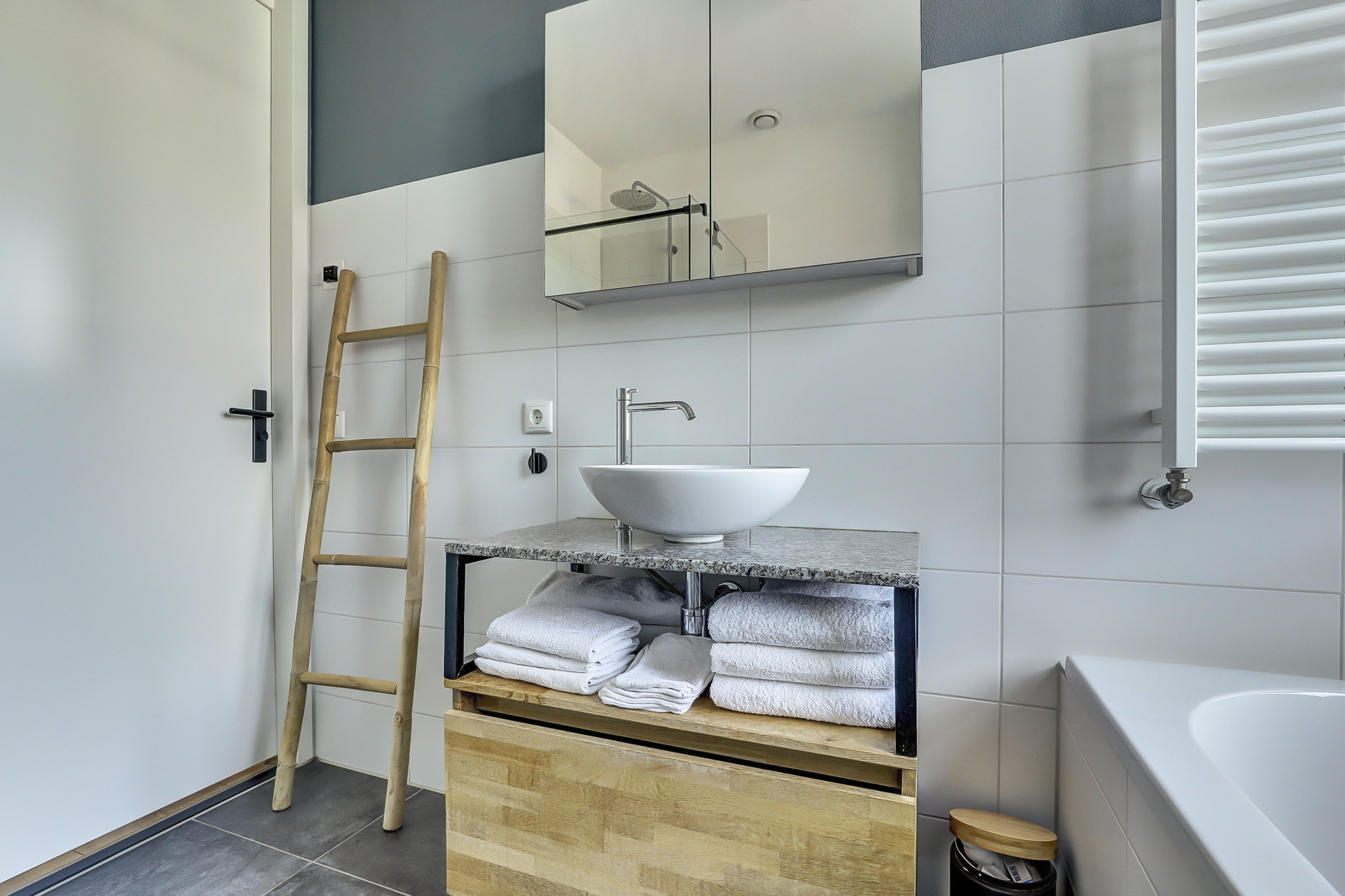 + Begane grond voorzien van plavuizen met vloerverwarming voor extra comfort;