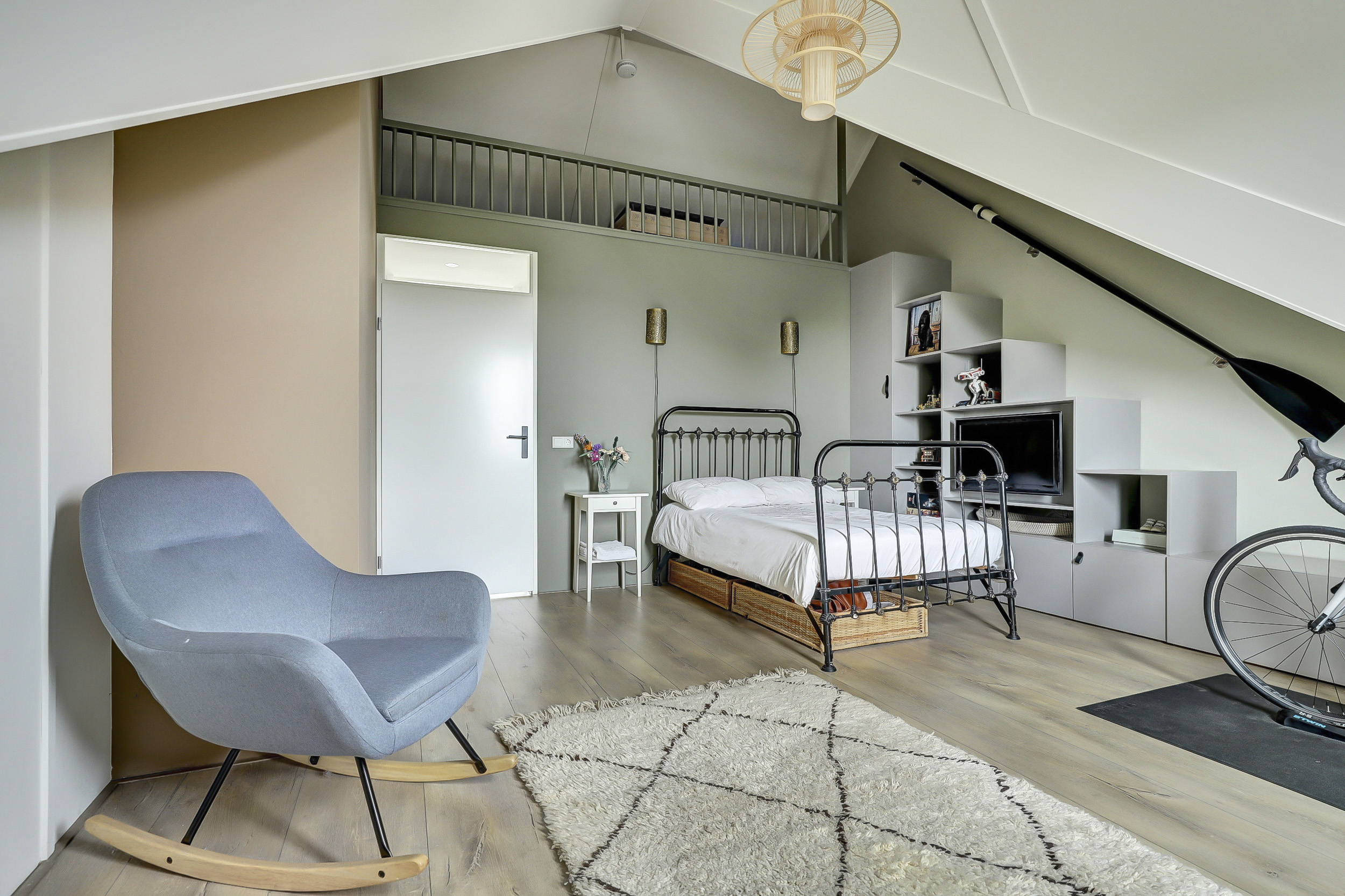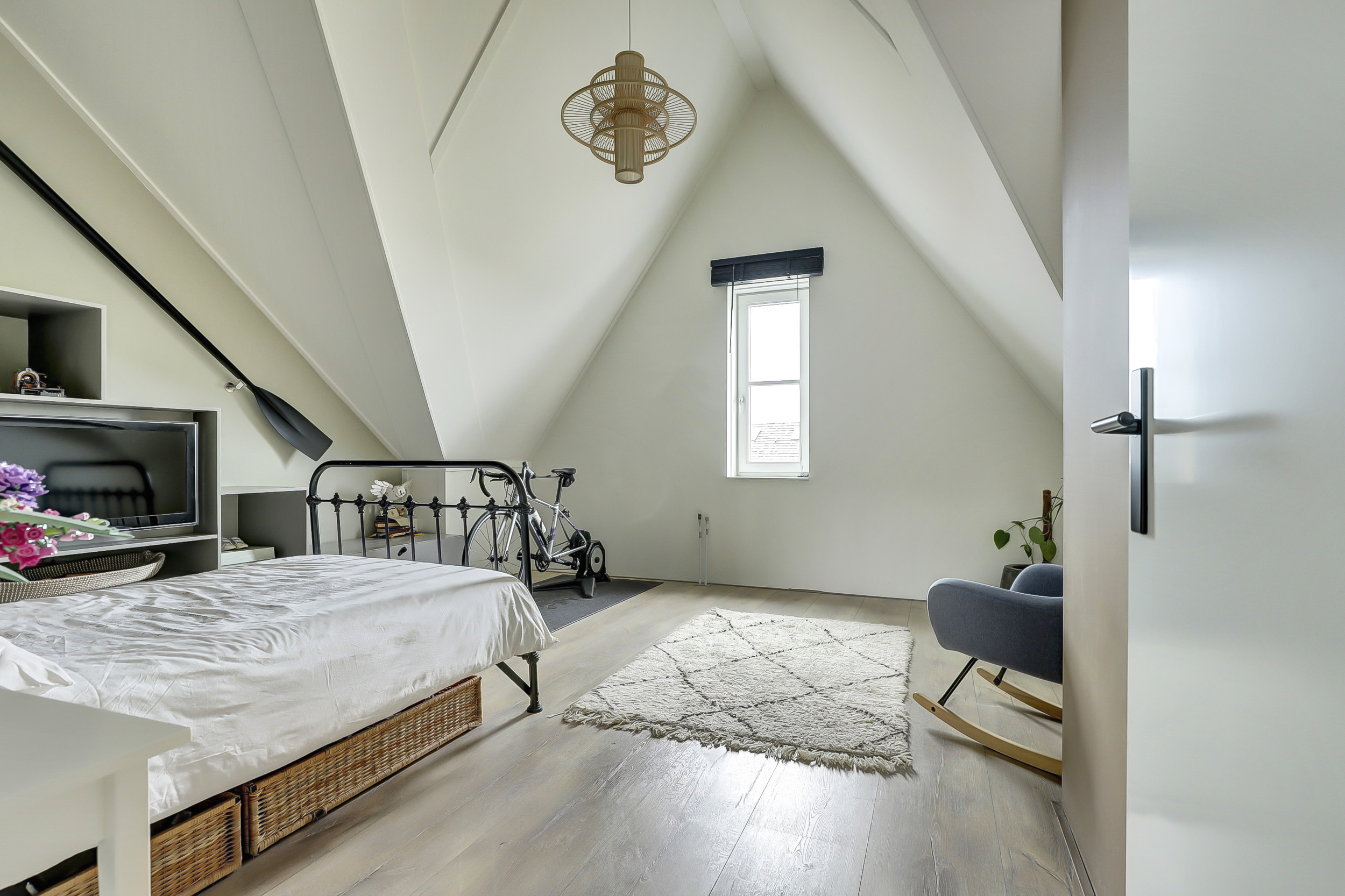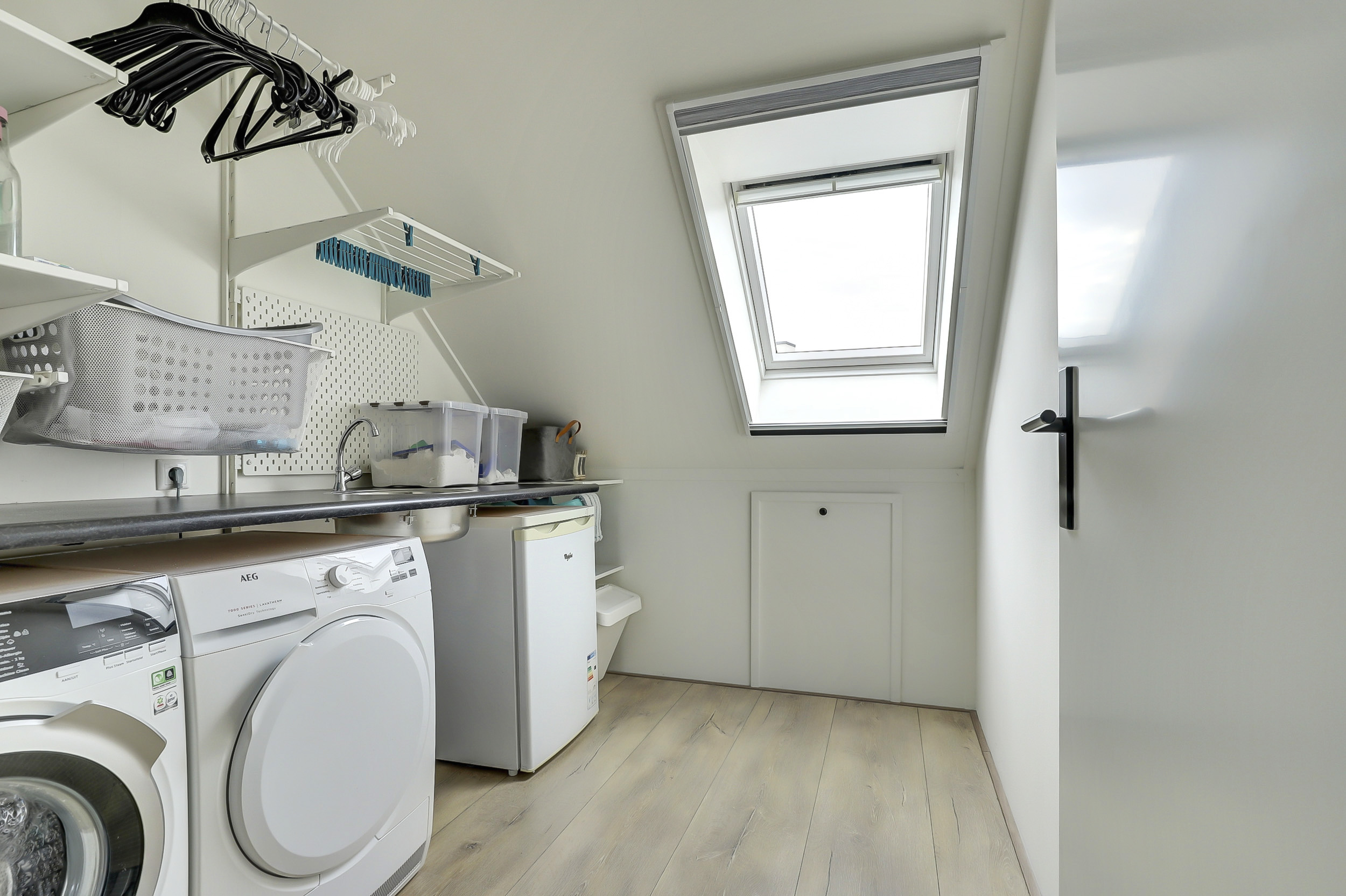 De tweede verdieping heeft twee slaapkamers en een hele praktische wasruimte met extra opbergruimte. De slaapkamer (ca. 24 m²) aan de voorzijde is de kers op de taart van deze woning. Hier is gekozen voor een unieke entresol, bereikbaar via een speelse trap. Deze creatieve extra verdieping biedt veelzijdige mogelijkheden: gebruik het als gezellige speelhoek, praktische opbergruimte of zelfs voor het plaatsen van een bed, waardoor deze kamer nog functioneler en bijzonderder wordt. Daarnaast is er op zolder een extra berging aanwezig, wat zorgt voor nog meer handige opbergruimte voor spullen die je niet dagelijks nodig hebt.