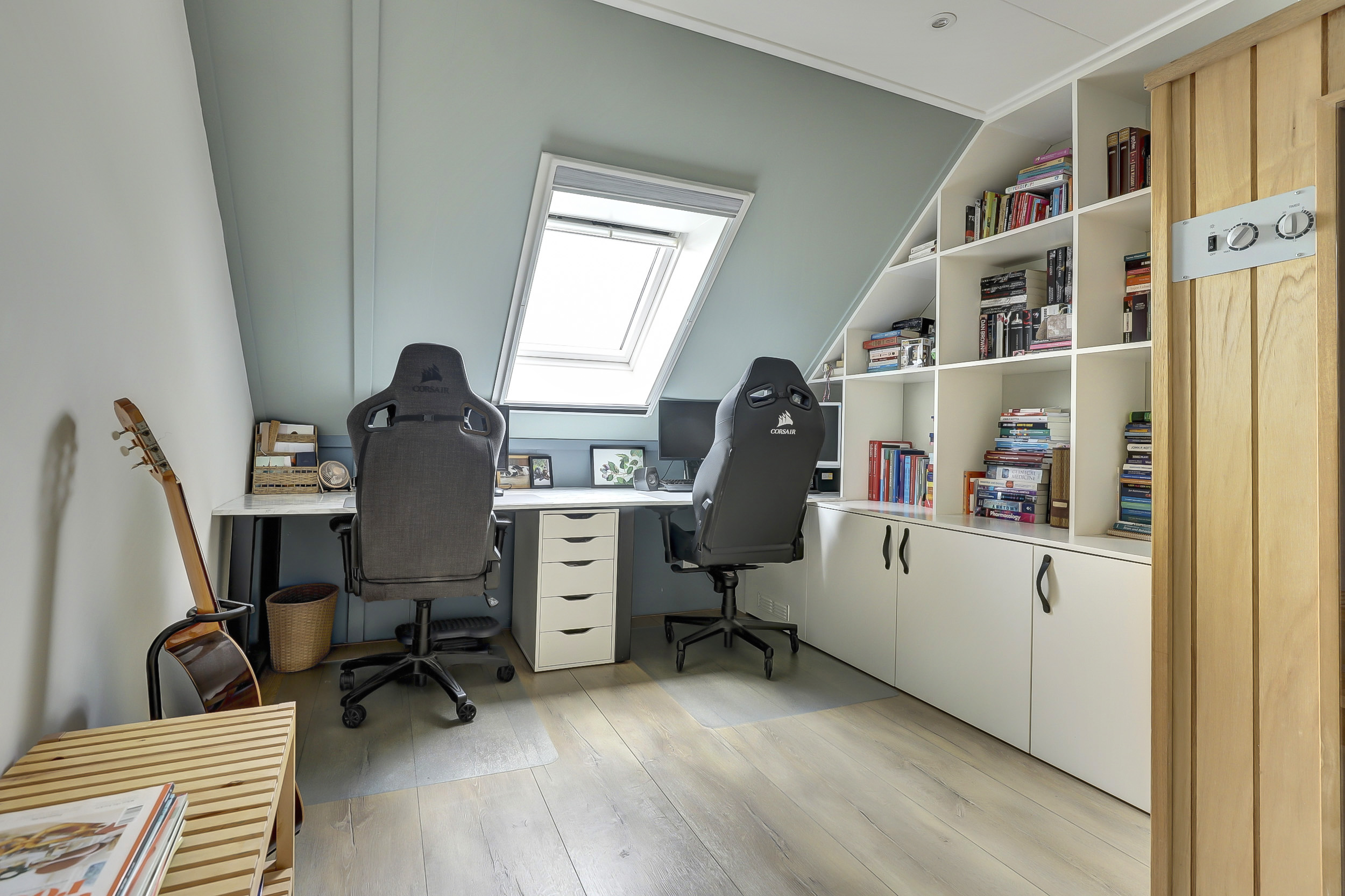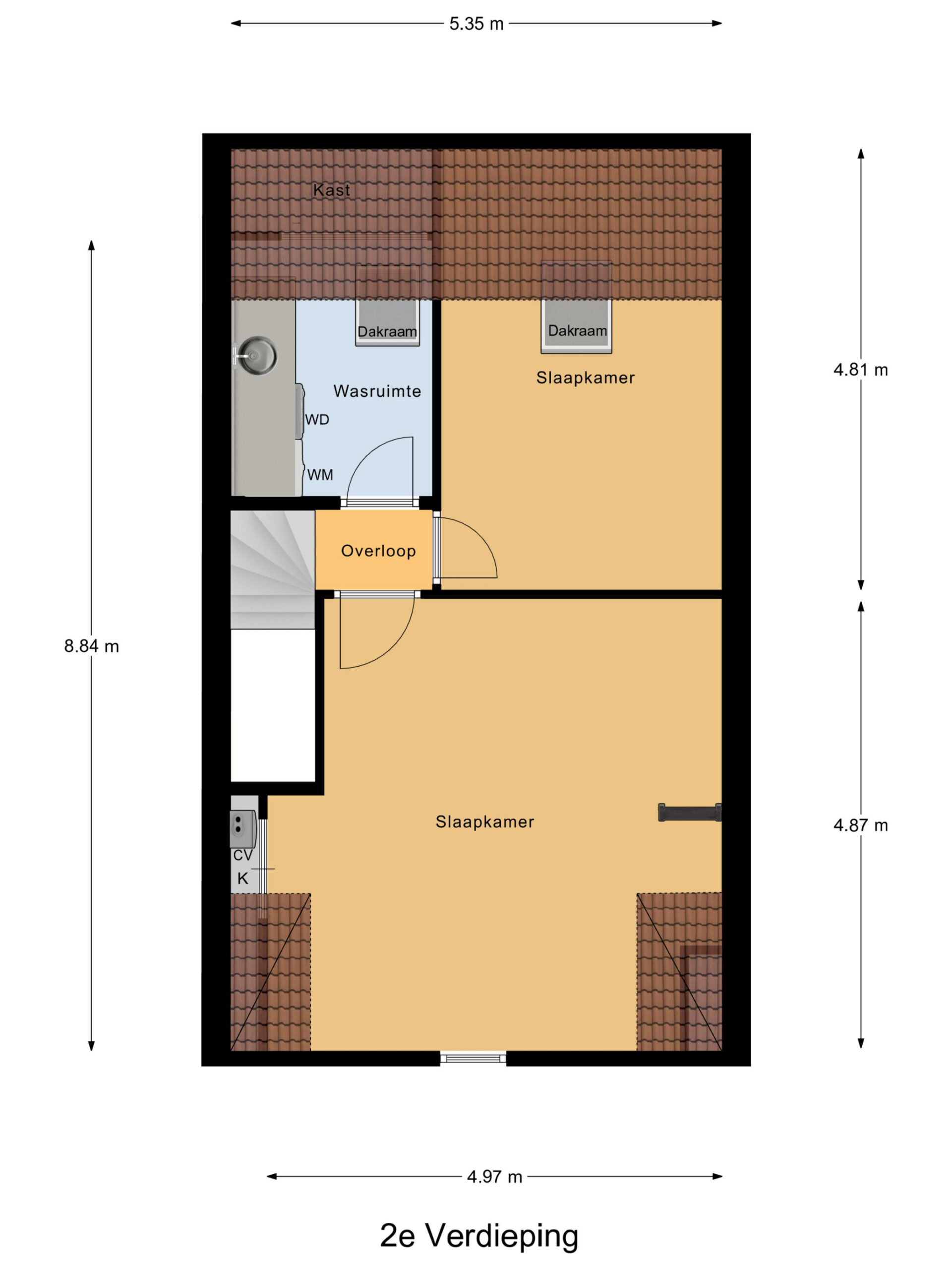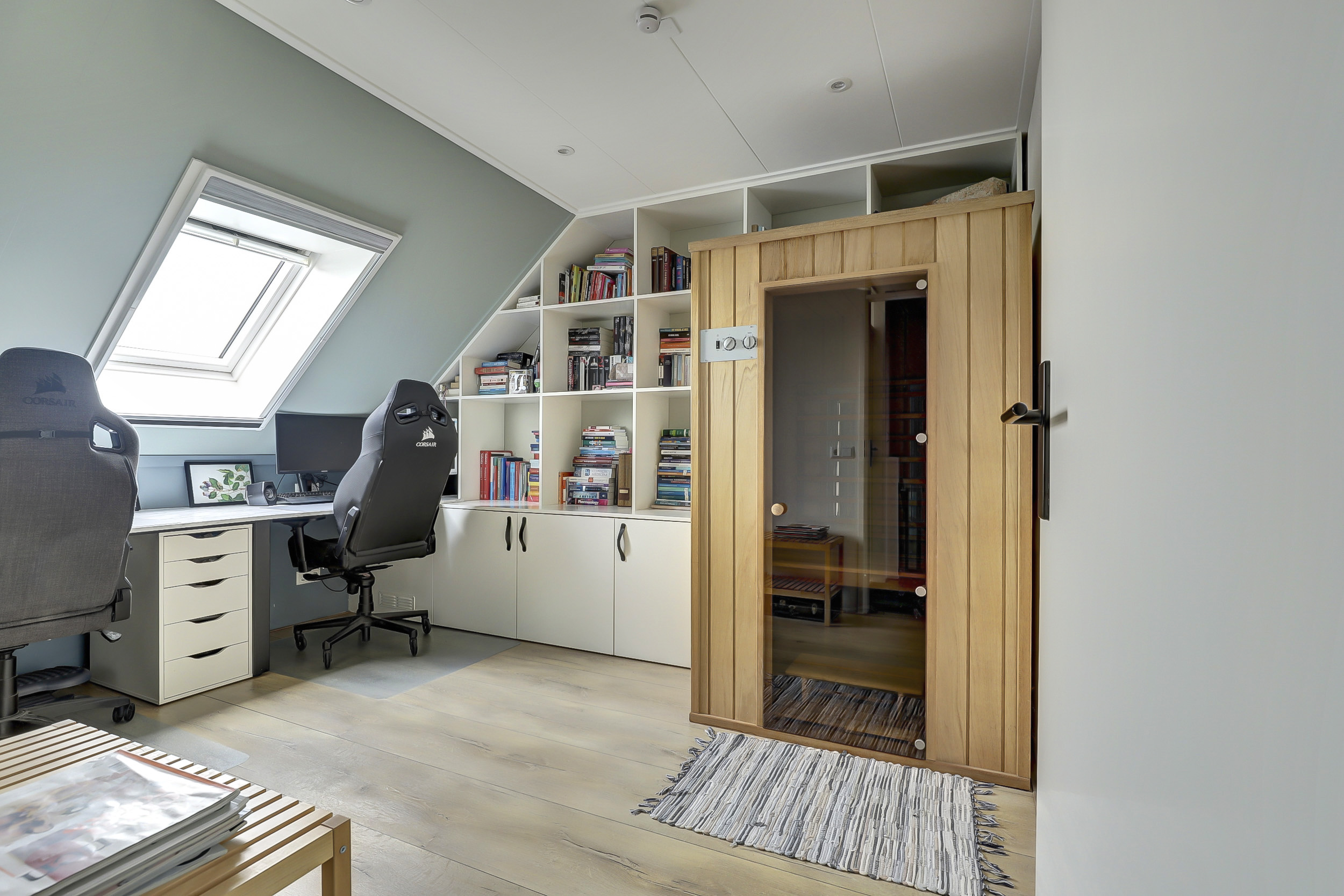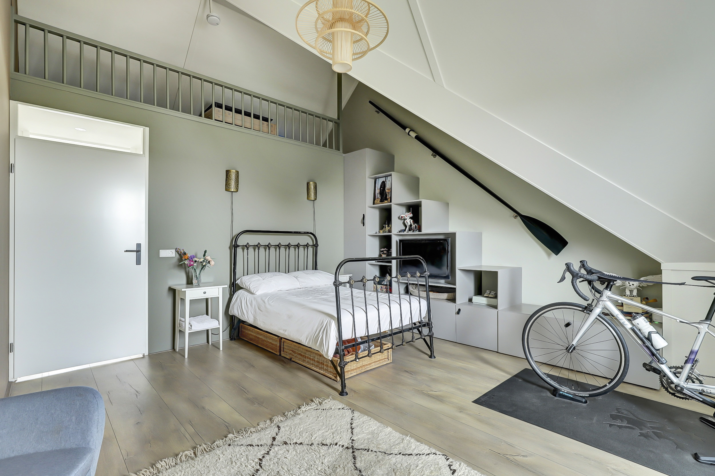 De tweede verdieping heeft twee slaapkamers en een hele praktische wasruimte met extra opbergruimte. De slaapkamer (ca. 24 m²) aan de voorzijde is de kers op de taart van deze woning. Hier is gekozen voor een unieke entresol, bereikbaar via een speelse trap. Deze creatieve extra verdieping biedt veelzijdige mogelijkheden: gebruik het als gezellige speelhoek, praktische opbergruimte of zelfs voor het plaatsen van een bed, waardoor deze kamer nog functioneler en bijzonderder wordt. Daarnaast is er op zolder een extra berging aanwezig, wat zorgt voor nog meer handige opbergruimte voor spullen die je niet dagelijks nodig hebt.