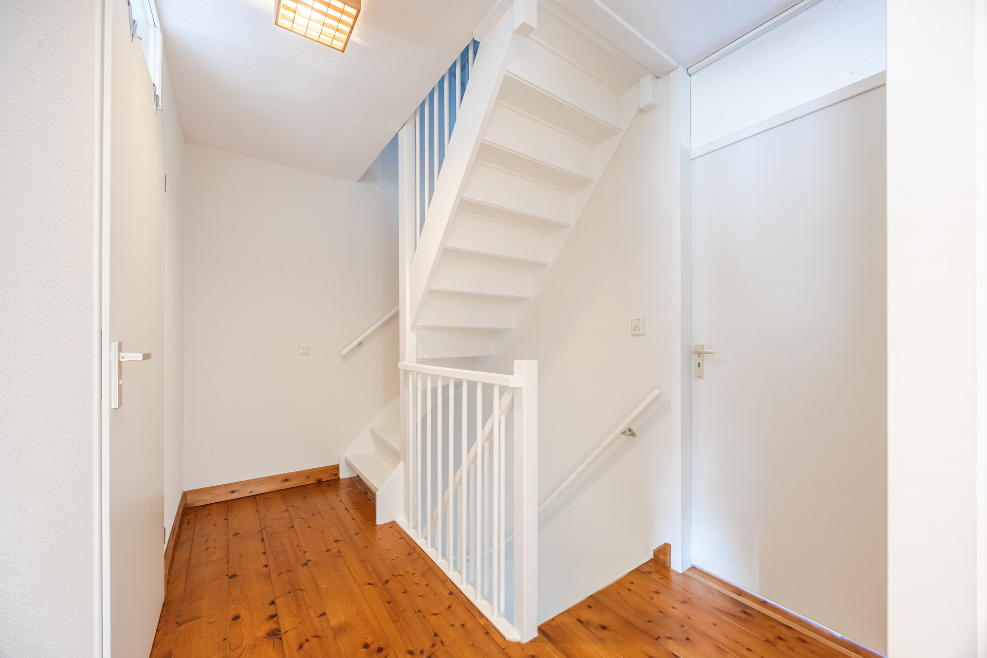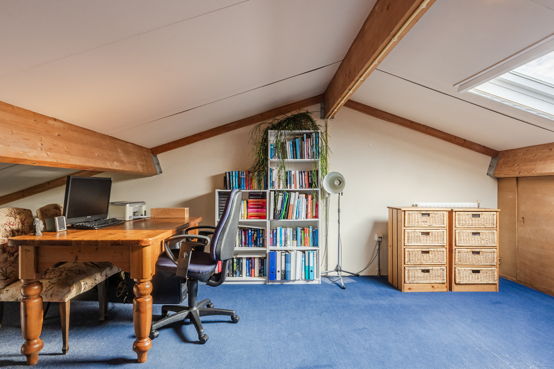 Via de vaste trap bereik je de zolderverdieping met dakraam en veel bergruimte. Deze ruimte is ideaal te gebruiken als 3e slaapkamer, hobby- of werkkamer.