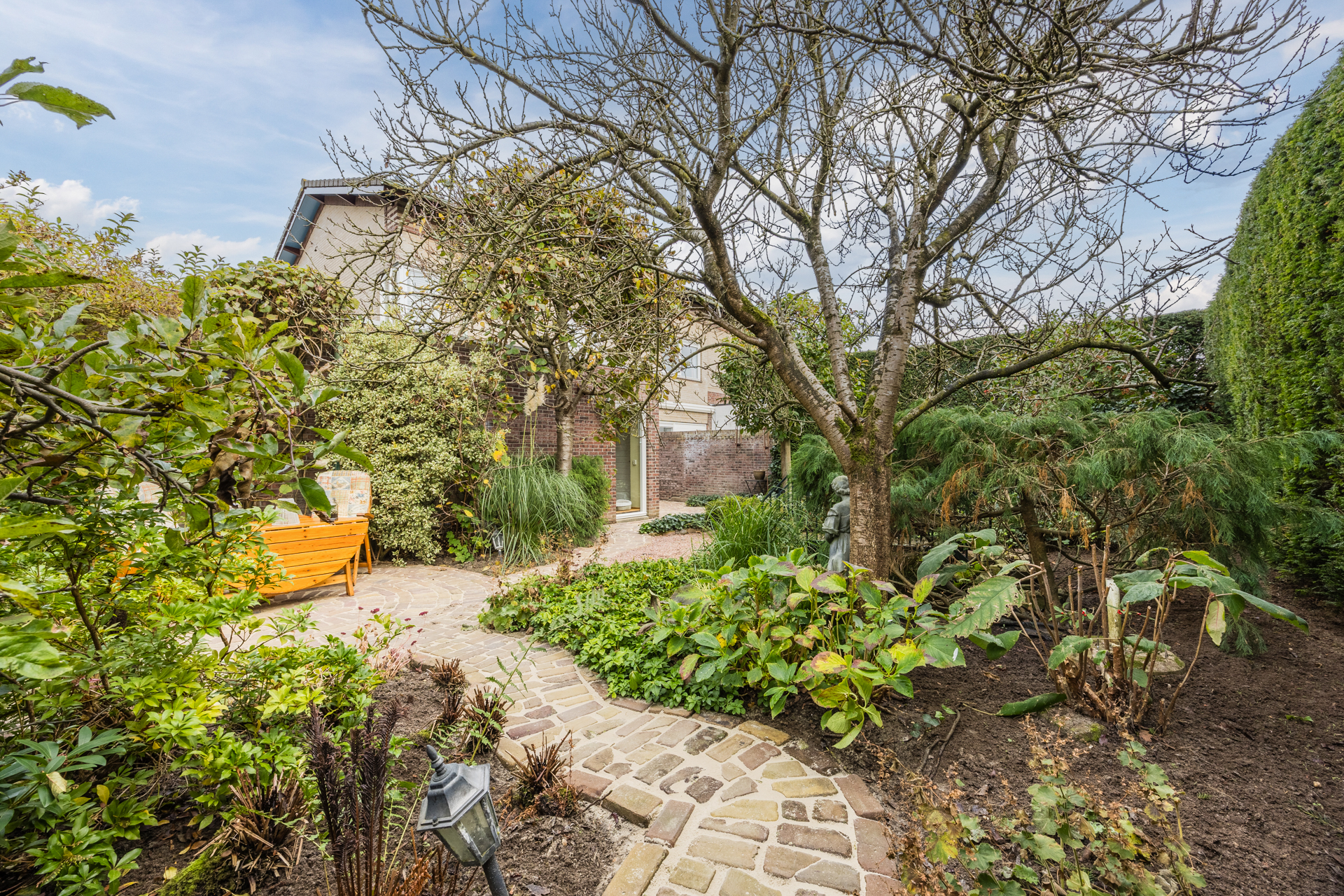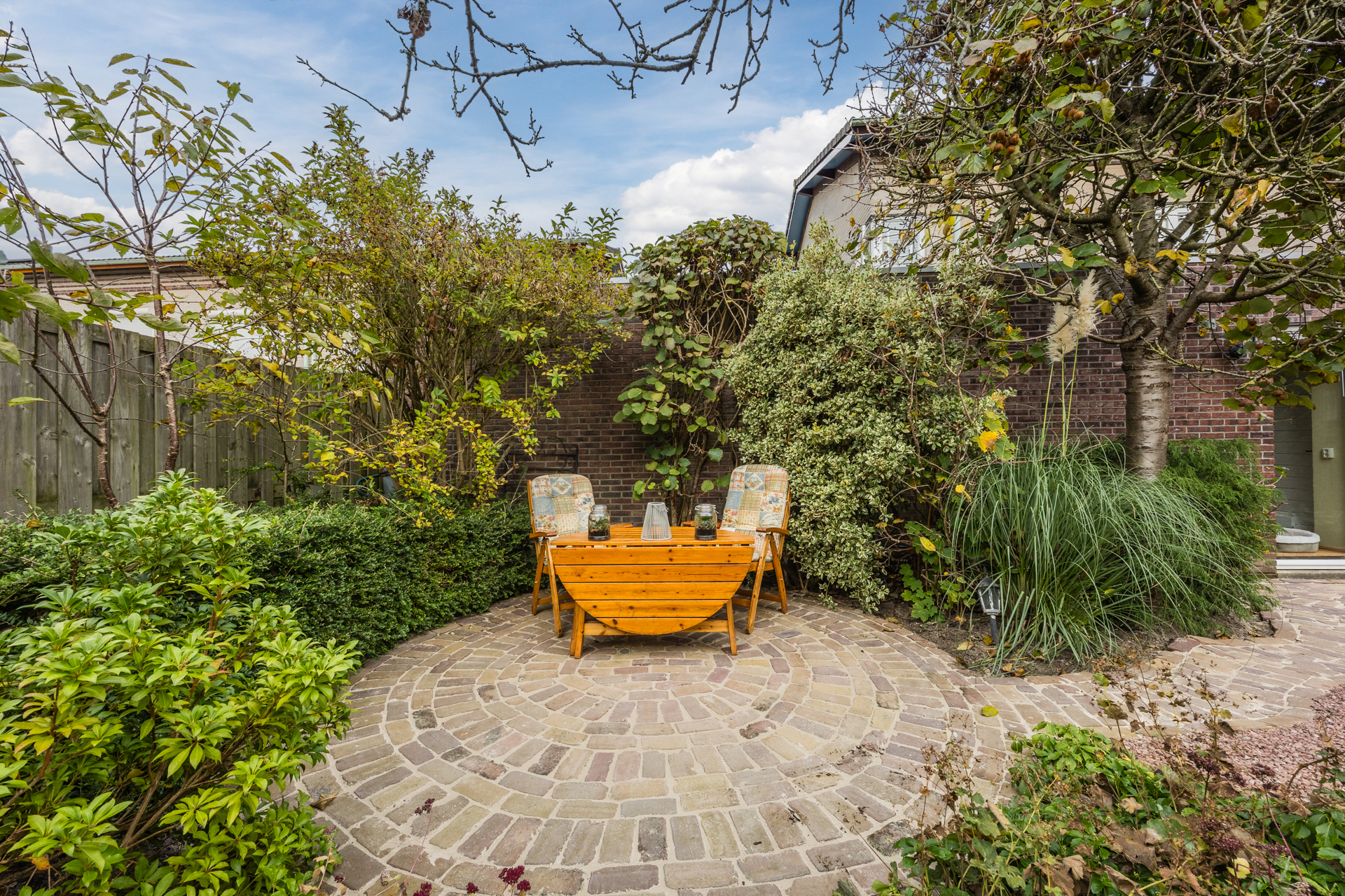 De woning beschikt over zowel een voortuin als een achtertuin. De voortuin biedt een eigen oprit met plek voor twee auto’s. De achtertuin is meer dan een buitenruimte: dit is je eigen oase. Zon- en schaduwplekken wisselen elkaar af, volwassen groen zorgt voor privacy en dankzij de ligging op het zuiden geniet je hier van lange zomerdagen. En hoe leuk, pluk je eigen fruit van de kiwiplant en de appel-, kersen- en pruimenboom. De garage is geschakeld en biedt volop ruimte voor hobby en opslag.