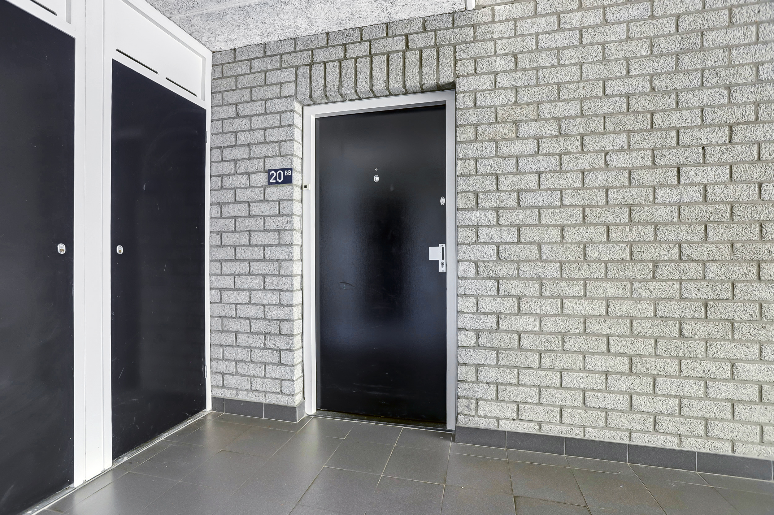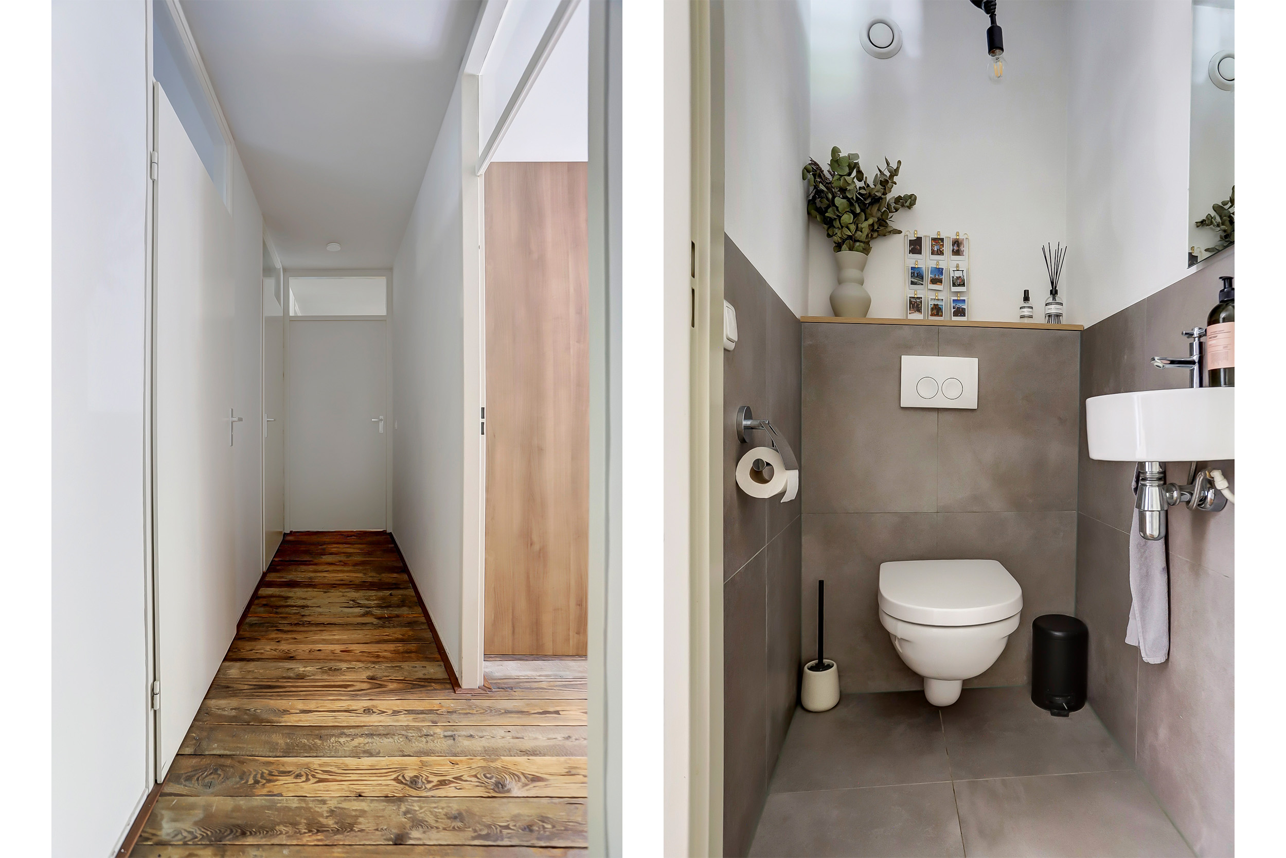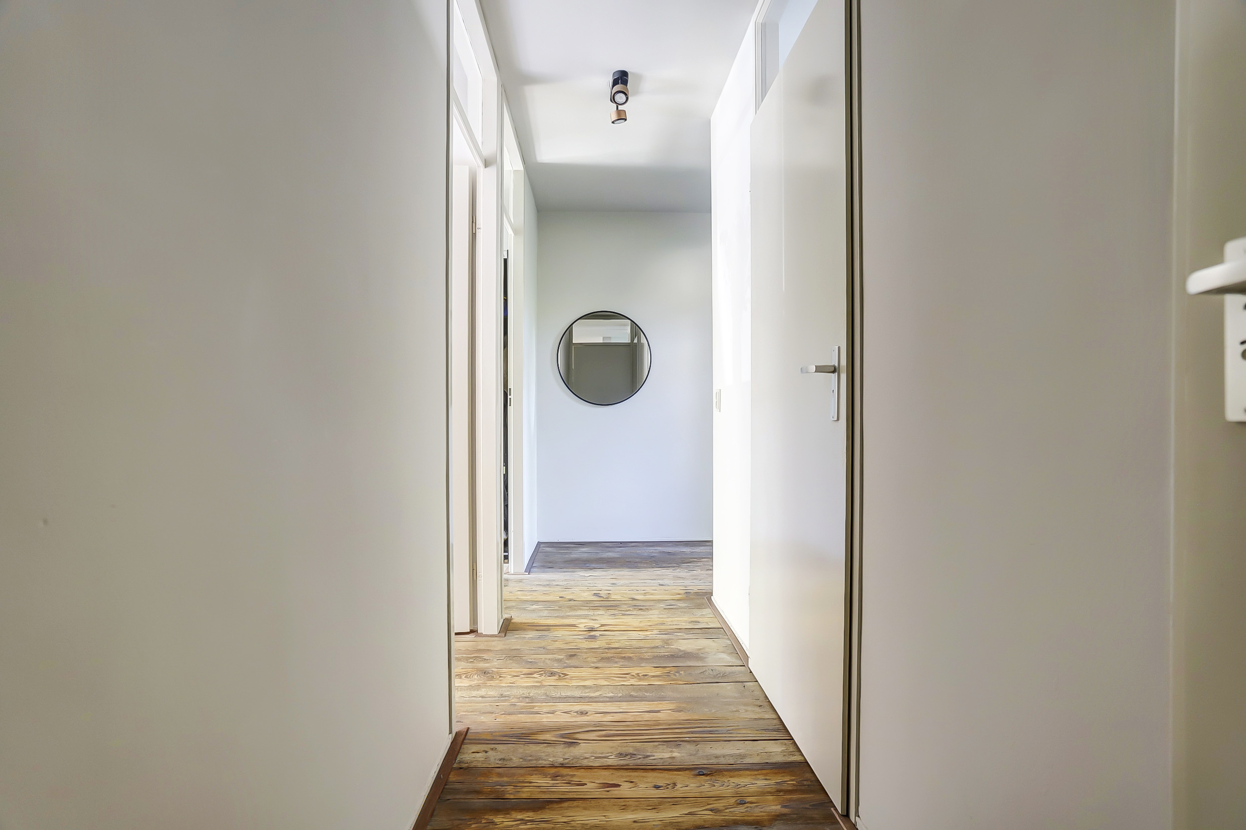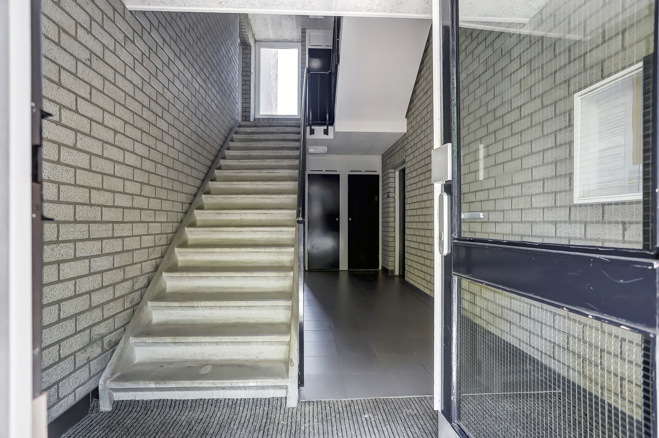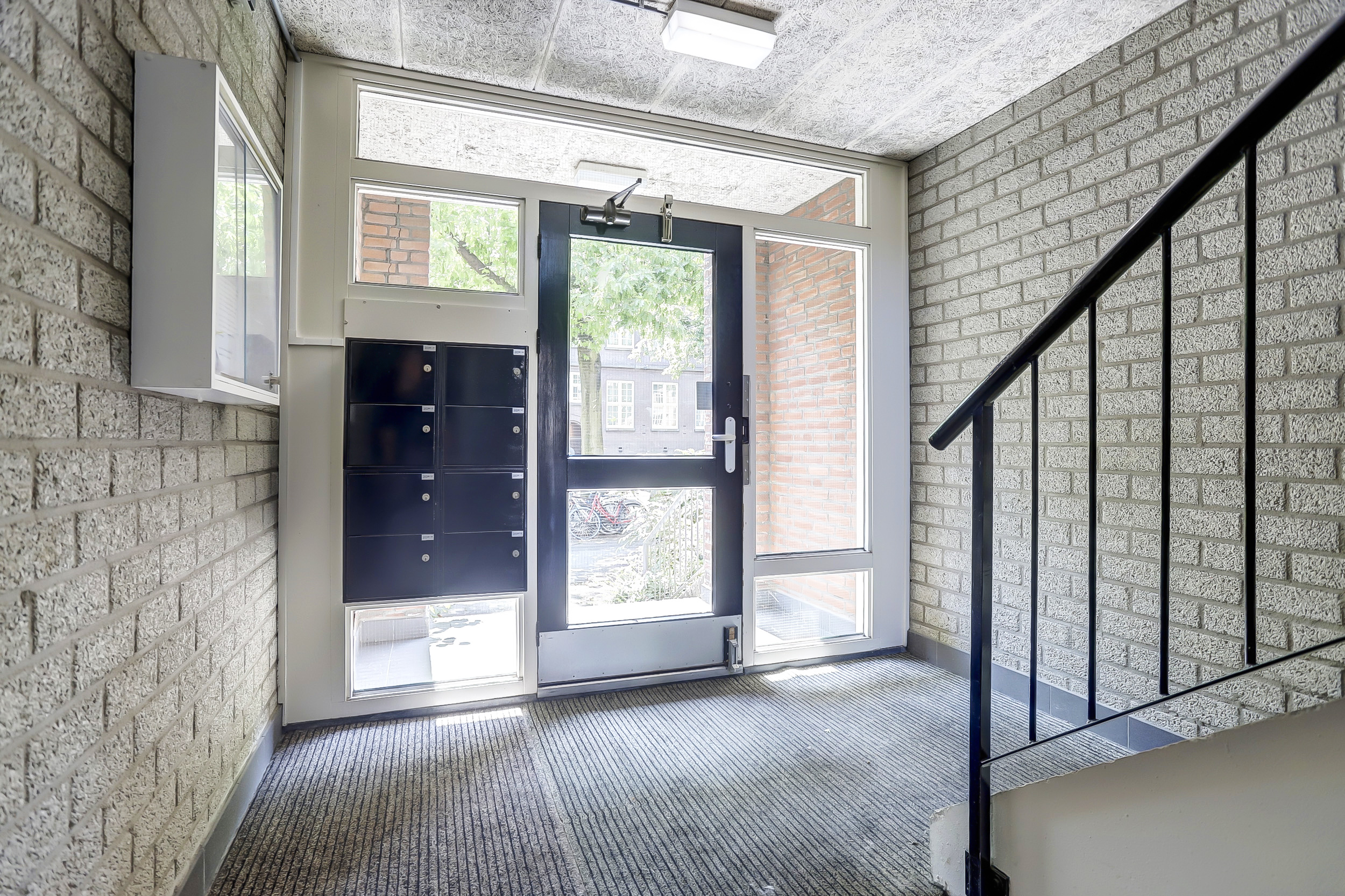 Het appartement is gelegen op de begane grond van een goed onderhouden portiekflat. Via de gemeenschappelijke entree bereik je de woning, die je binnenstapt via een nette hal met garderoberuimte en toegang tot het separate toilet met fontein.