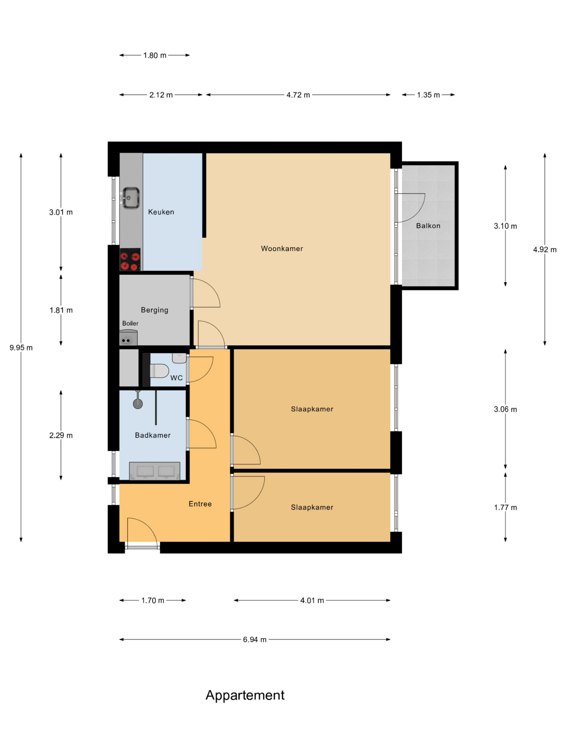 + Zonnig balkon op het zuidoosten (ca. 4 m²);