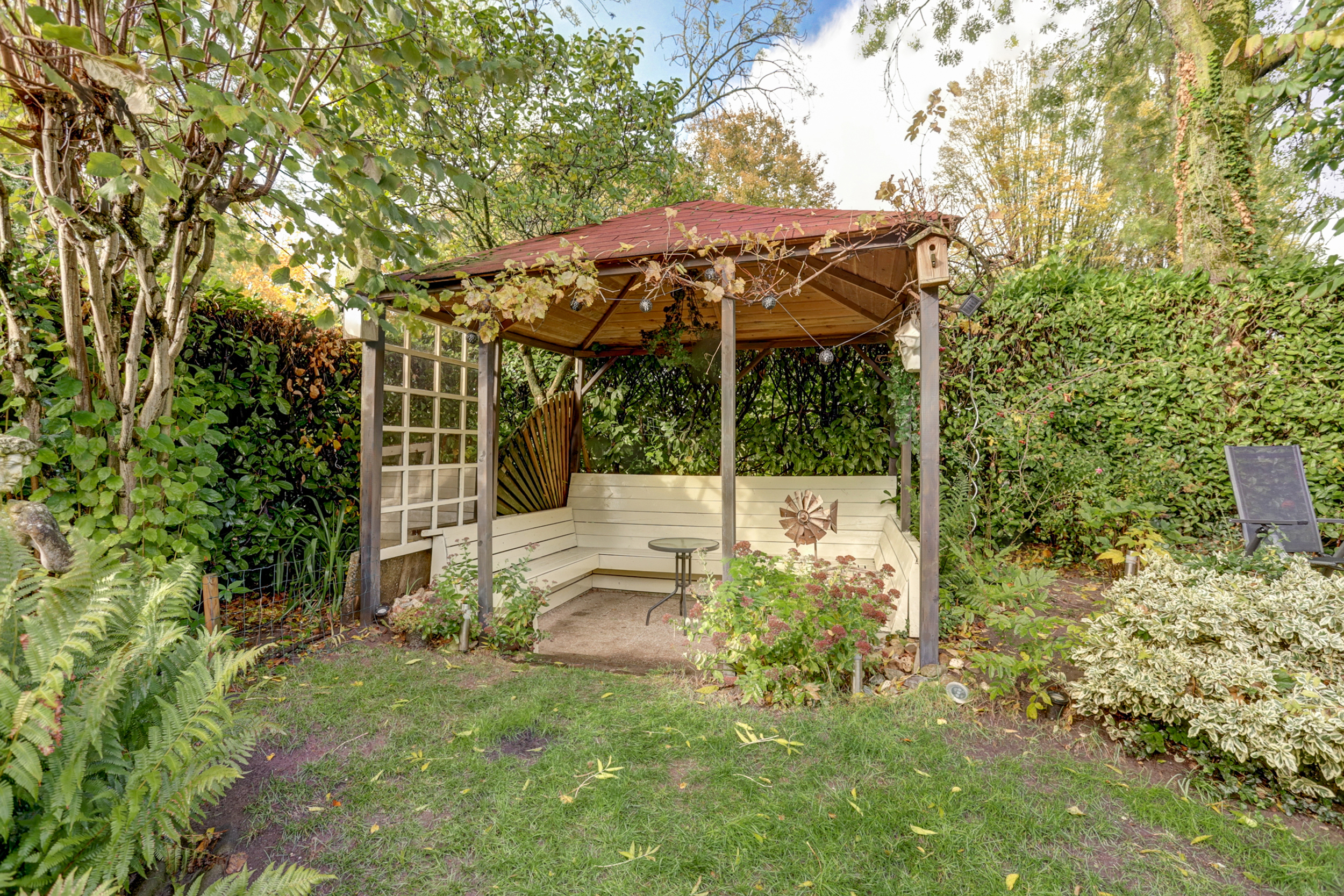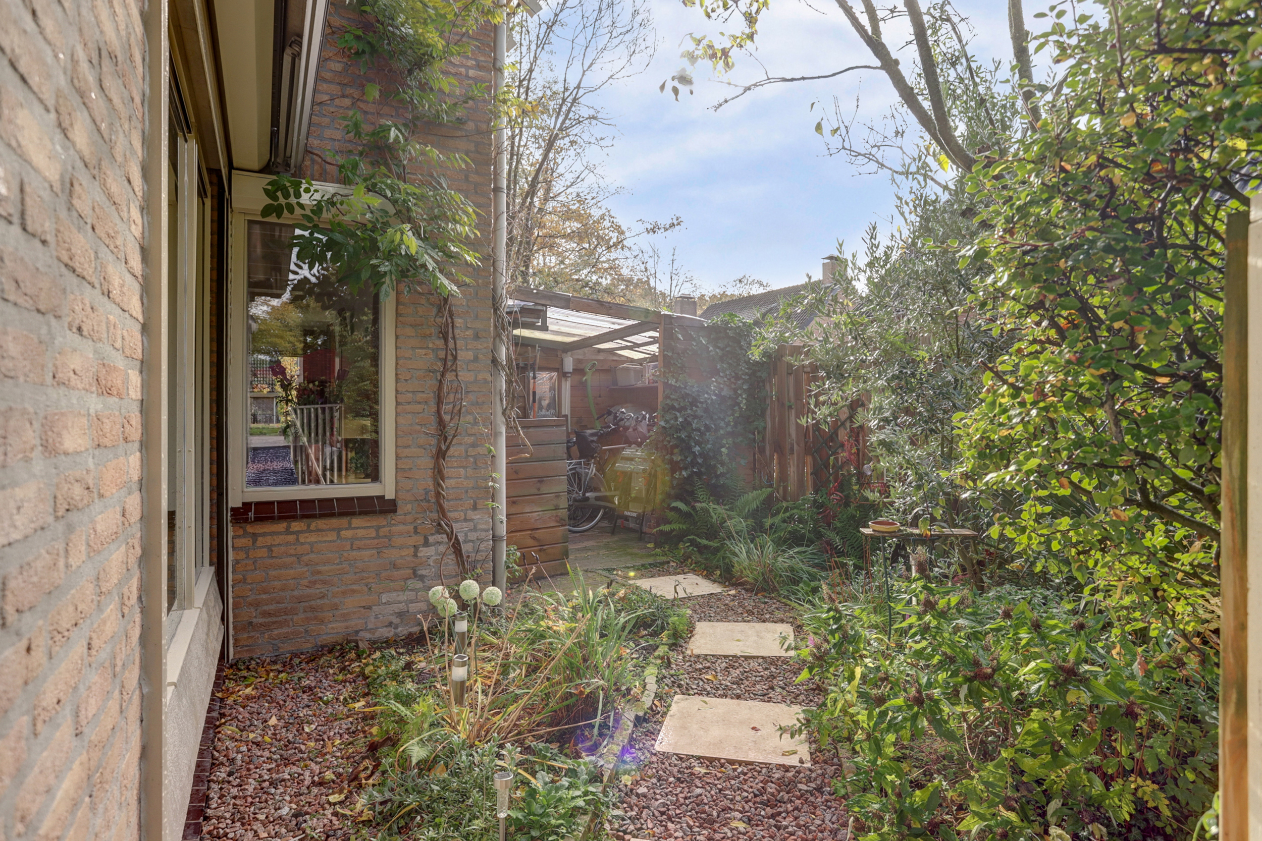 De nette en groene achtertuin is gelegen op het noordwesten en is voorzien van achterom, meerdere terrassen, mooie en sfeervolle houten overkapping/prieel van ca. 10 m2 achterin de tuin, verlichting, buitenkraan, vijver, zonnescherm aan de zijkant van het huis en een berging/overkapping van ca. 8 m2 voor bijv. het plaatsen van de fietsen en tuinspullen. De achtertuin is een heerlijke plek om rustig te kunnen genieten en heeft veel privacy! Aan de voorzijde van de woning bevindt zich de oprit met carport om op eigen terrein te kunnen parkeren. De carport is voorzien van lichtstraat en spotjes.