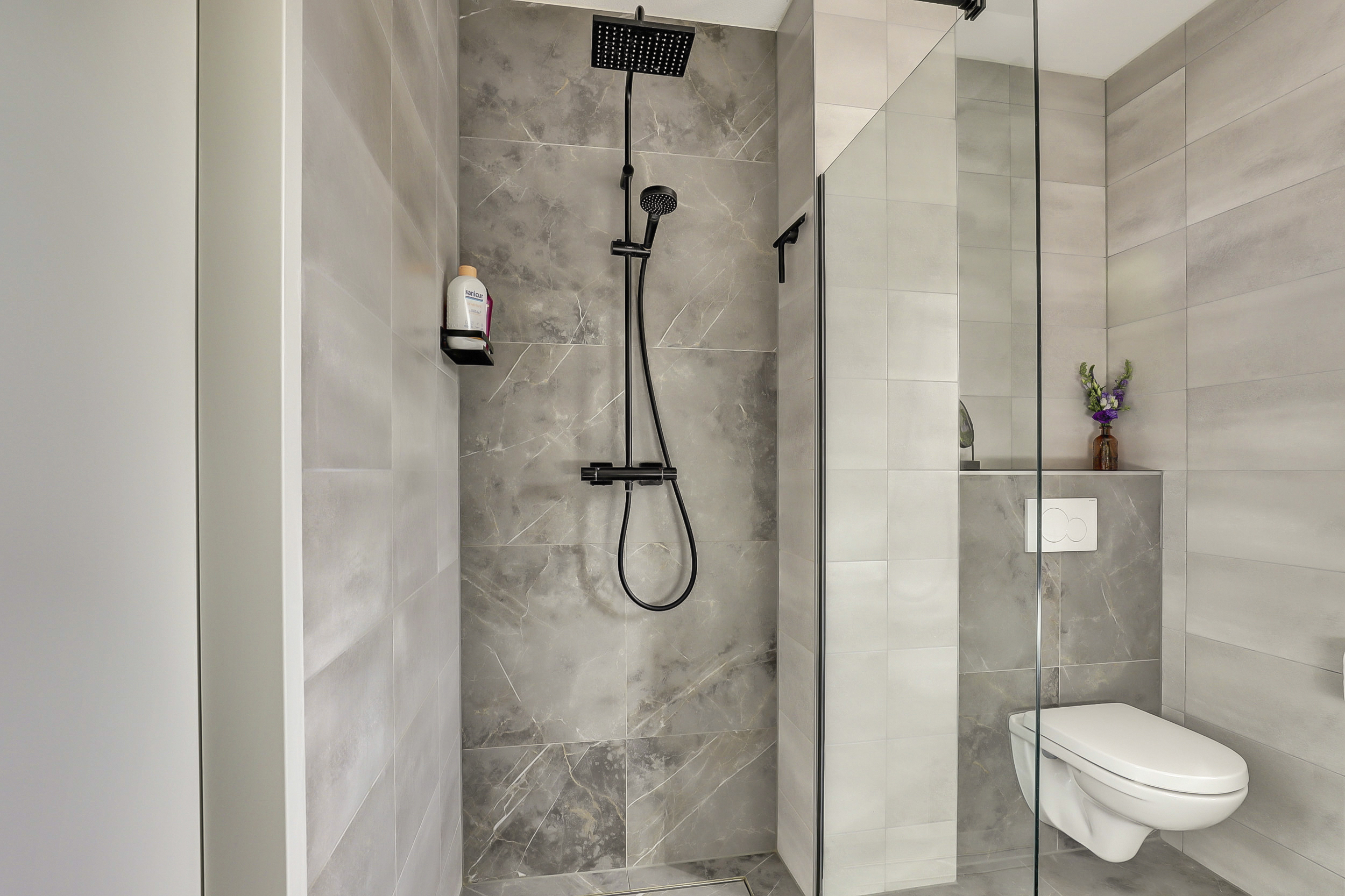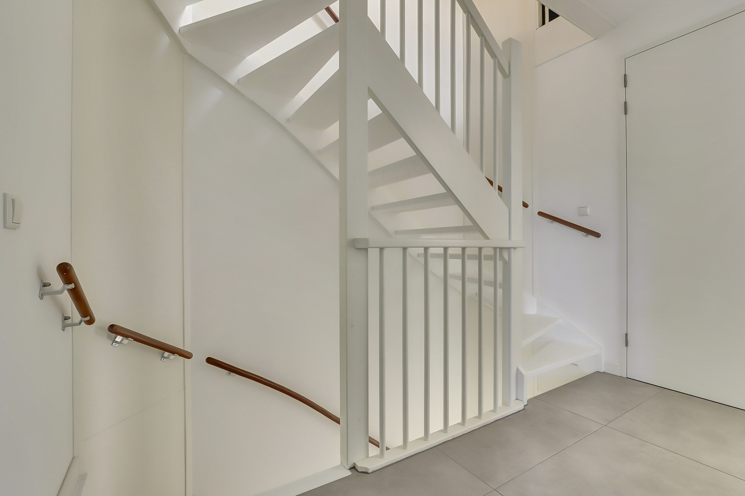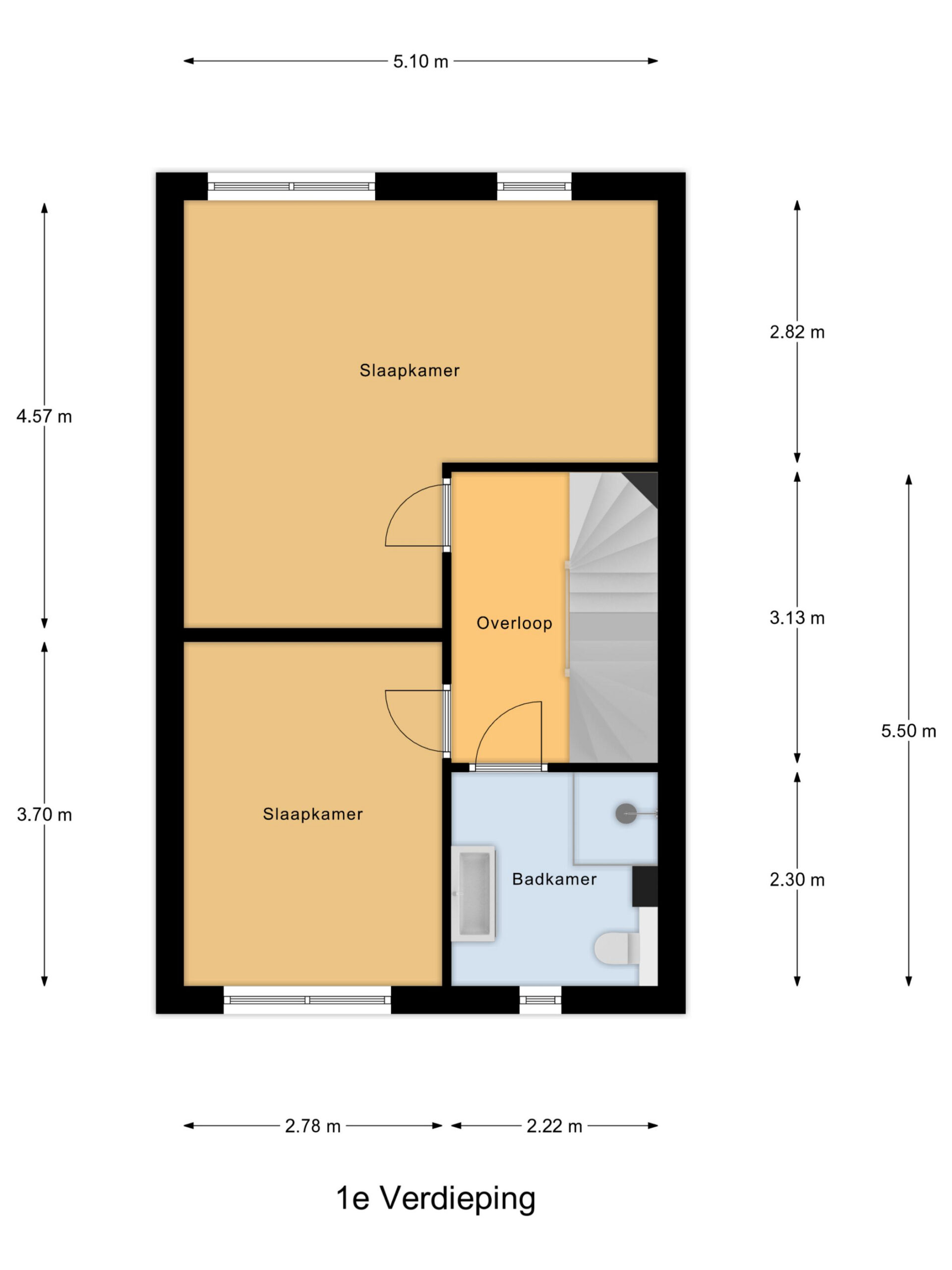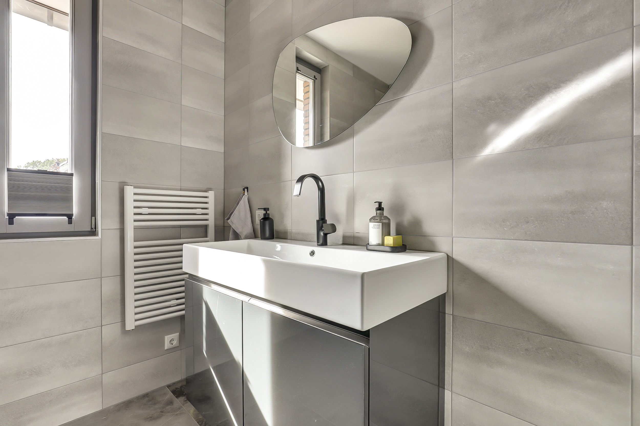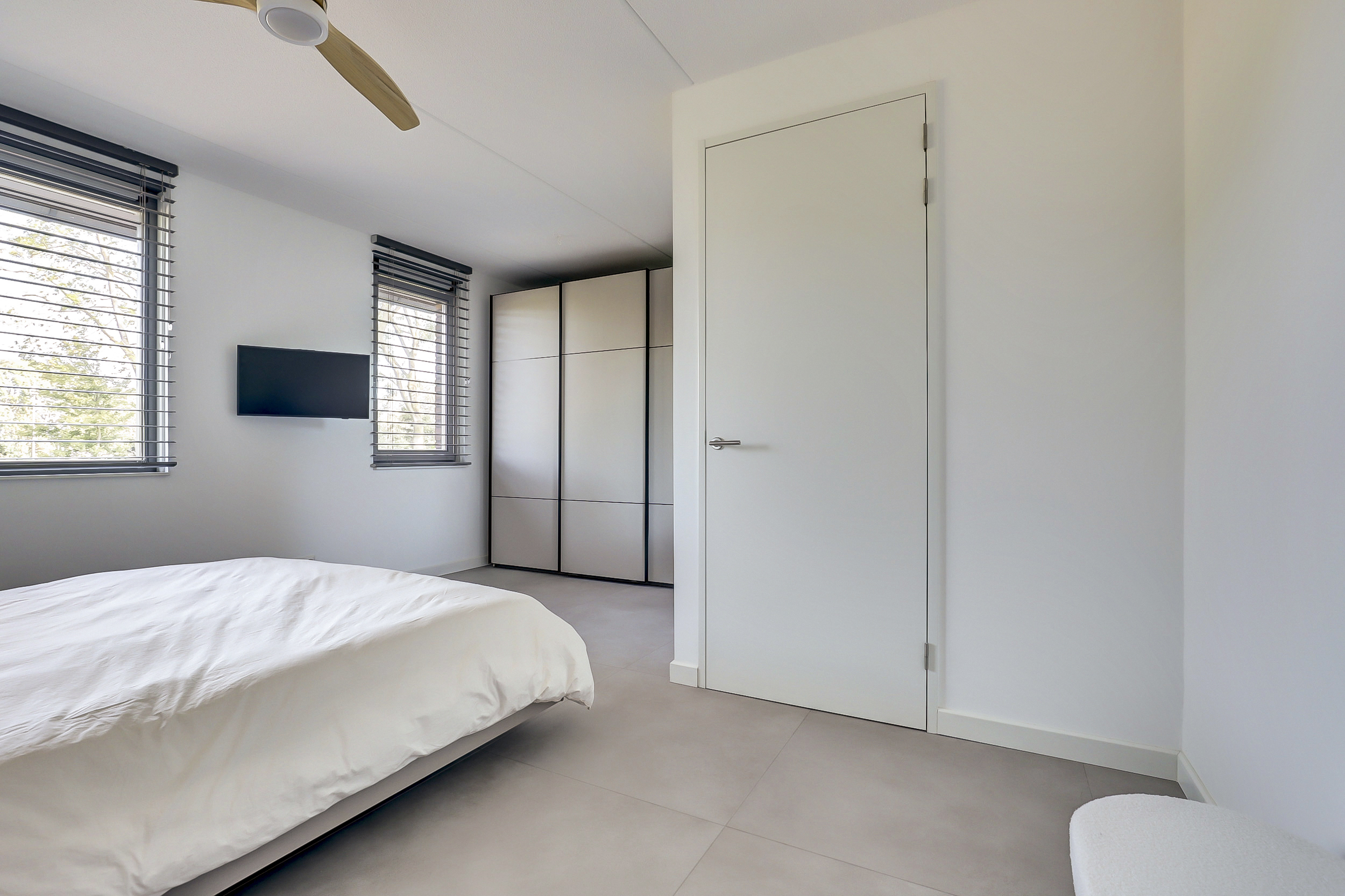 Op de eerste verdieping vind je twee ruime slaapkamers en een strakke badkamer met inloopdouche, wastafelmeubel en toilet. Wil je meer ruimte? Het realiseren van een derde slaapkamer is eenvoudig mogelijk.
