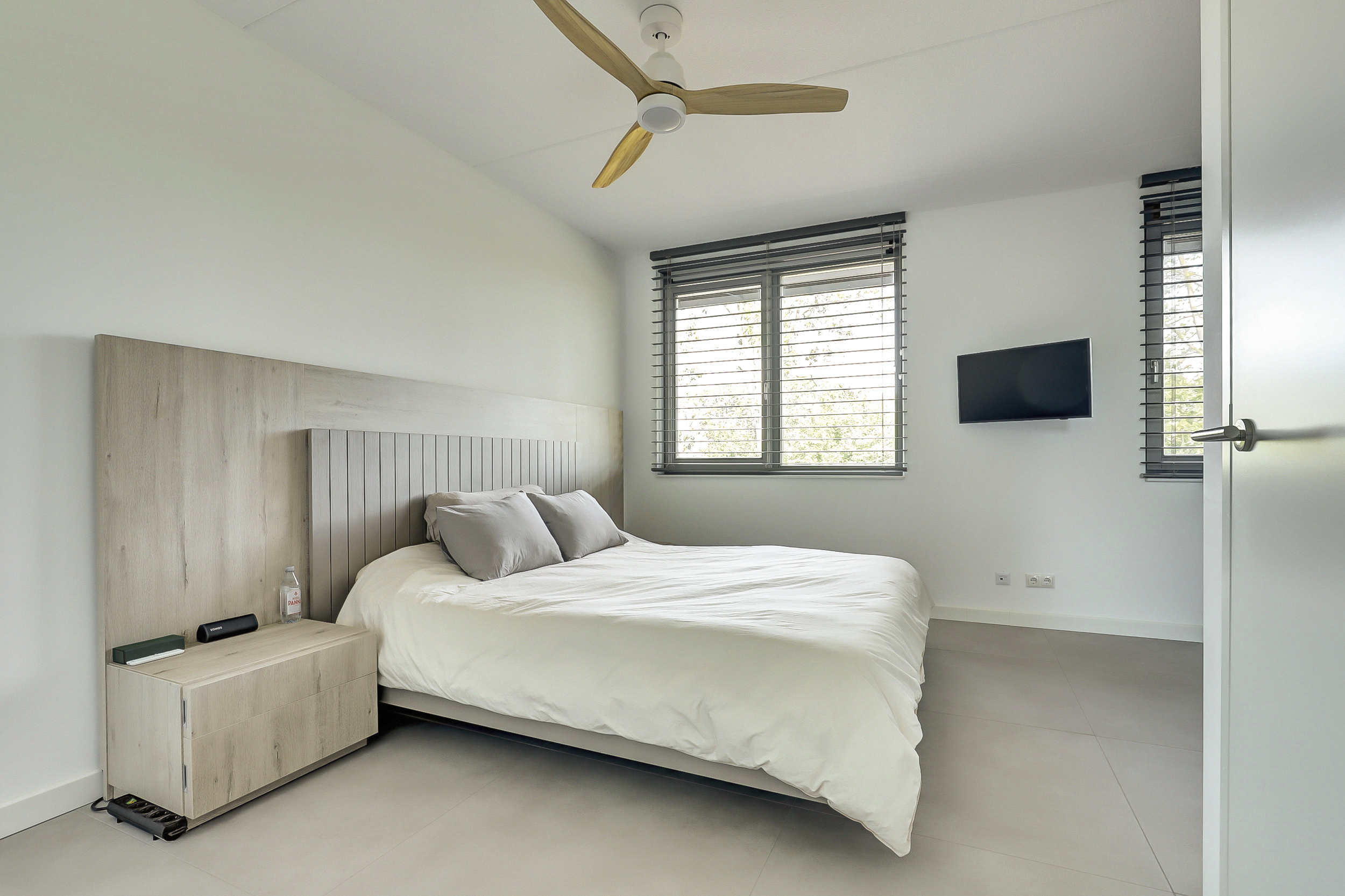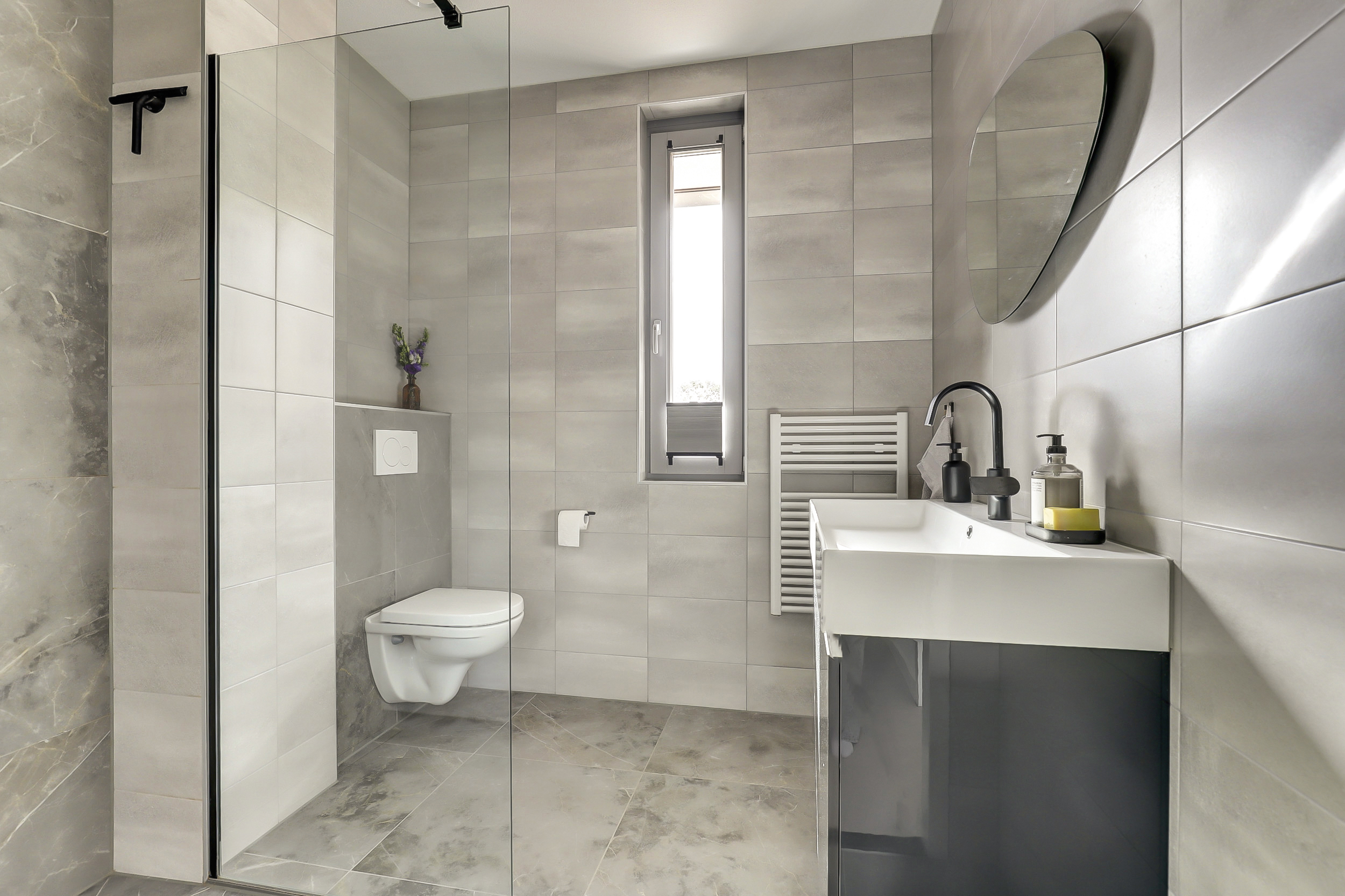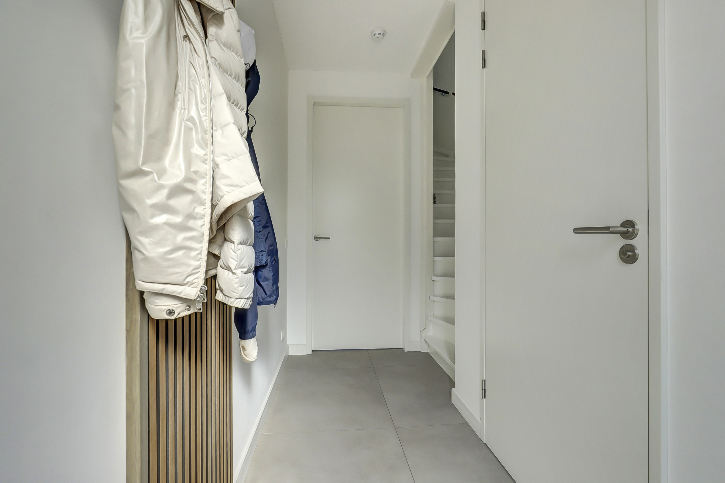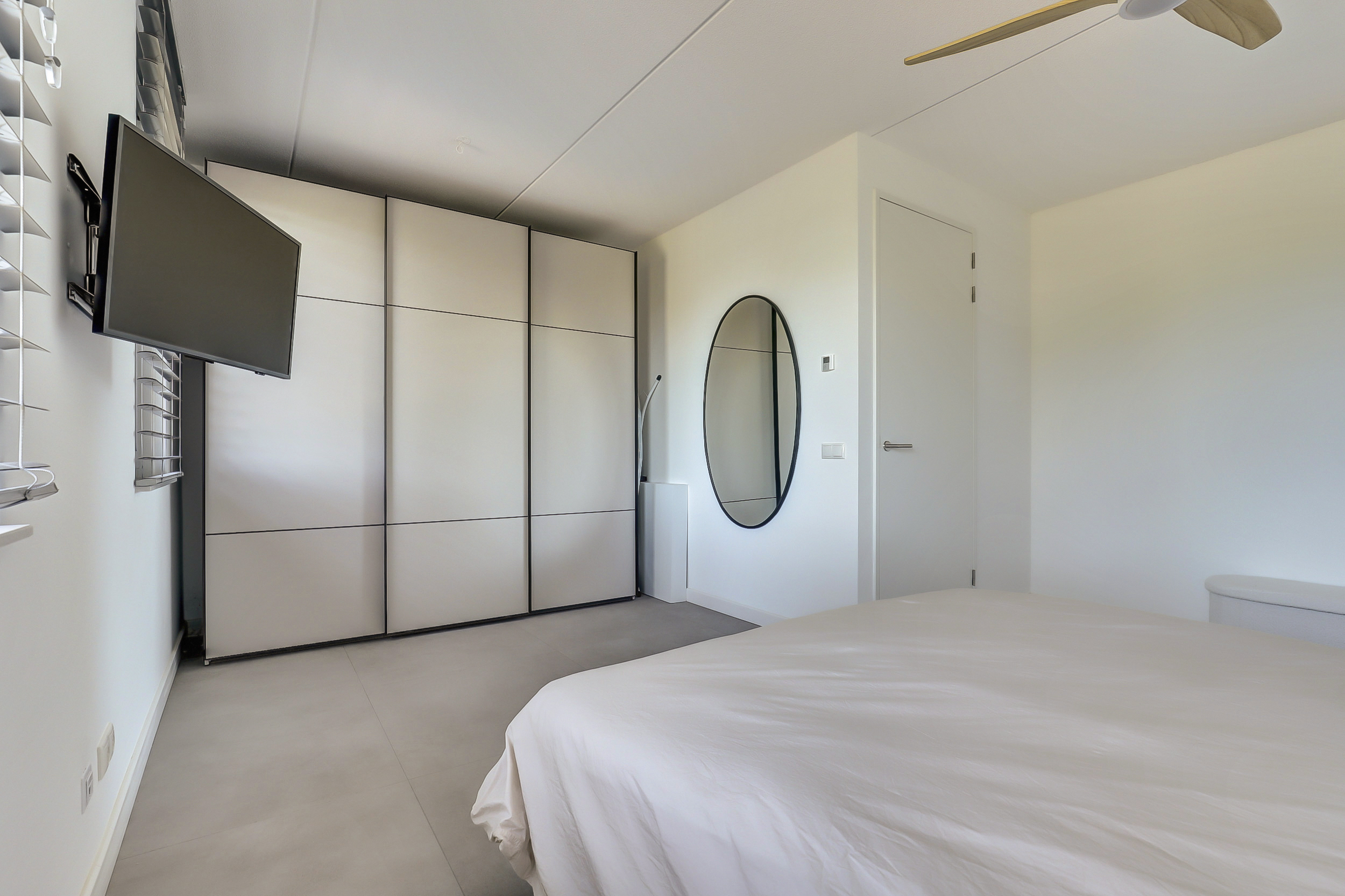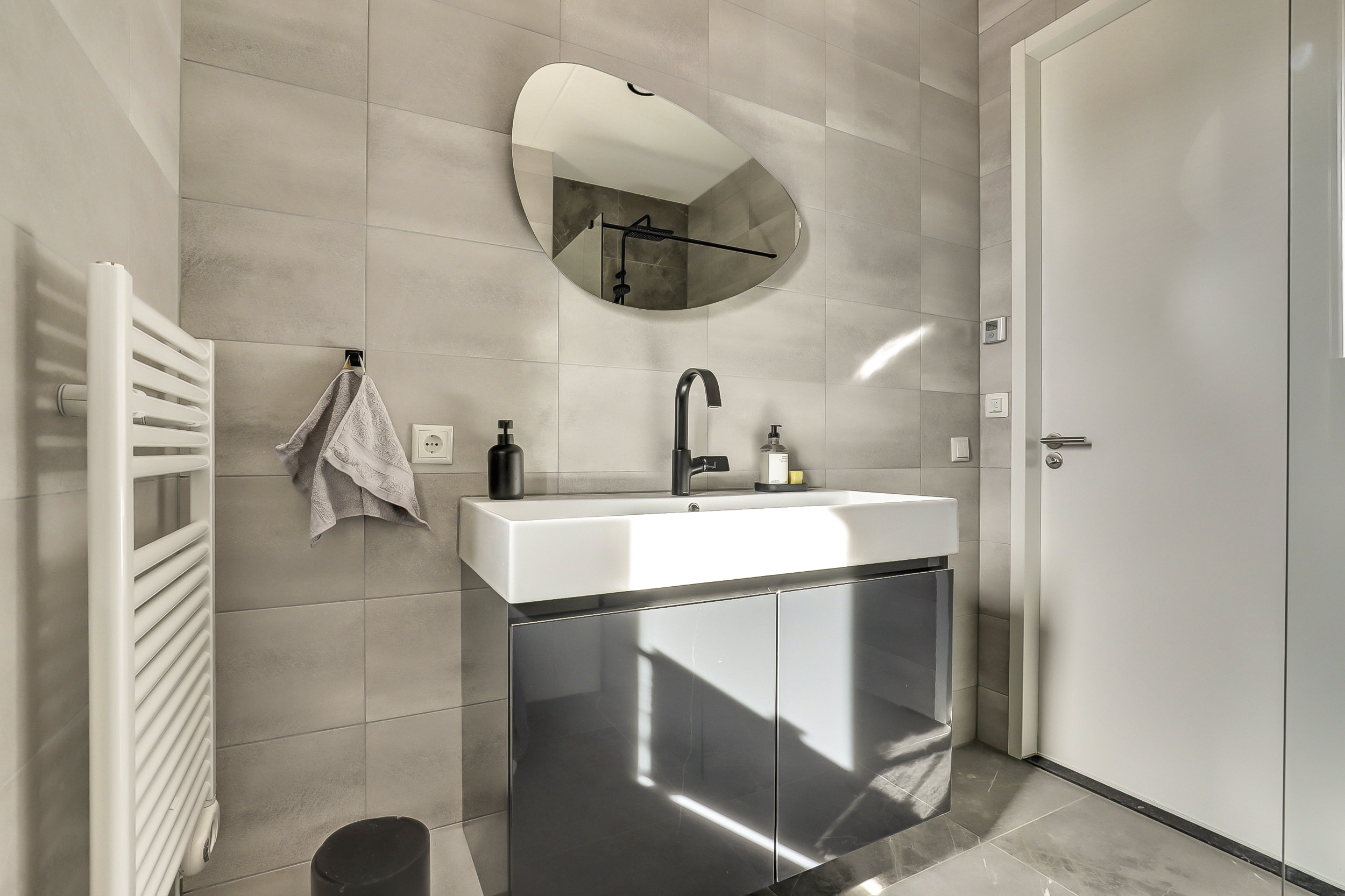 Op de eerste verdieping vind je twee ruime slaapkamers en een strakke badkamer met inloopdouche, wastafelmeubel en toilet. Wil je meer ruimte? Het realiseren van een derde slaapkamer is eenvoudig mogelijk.