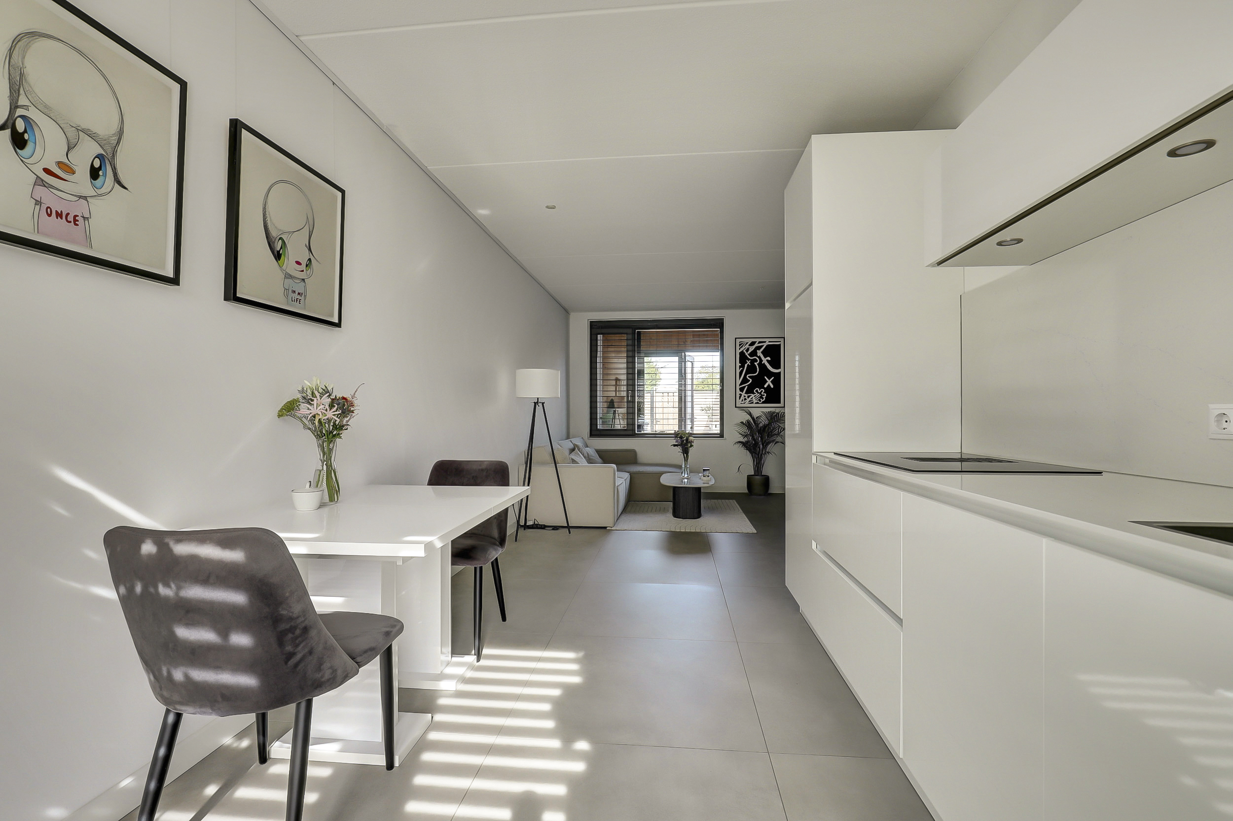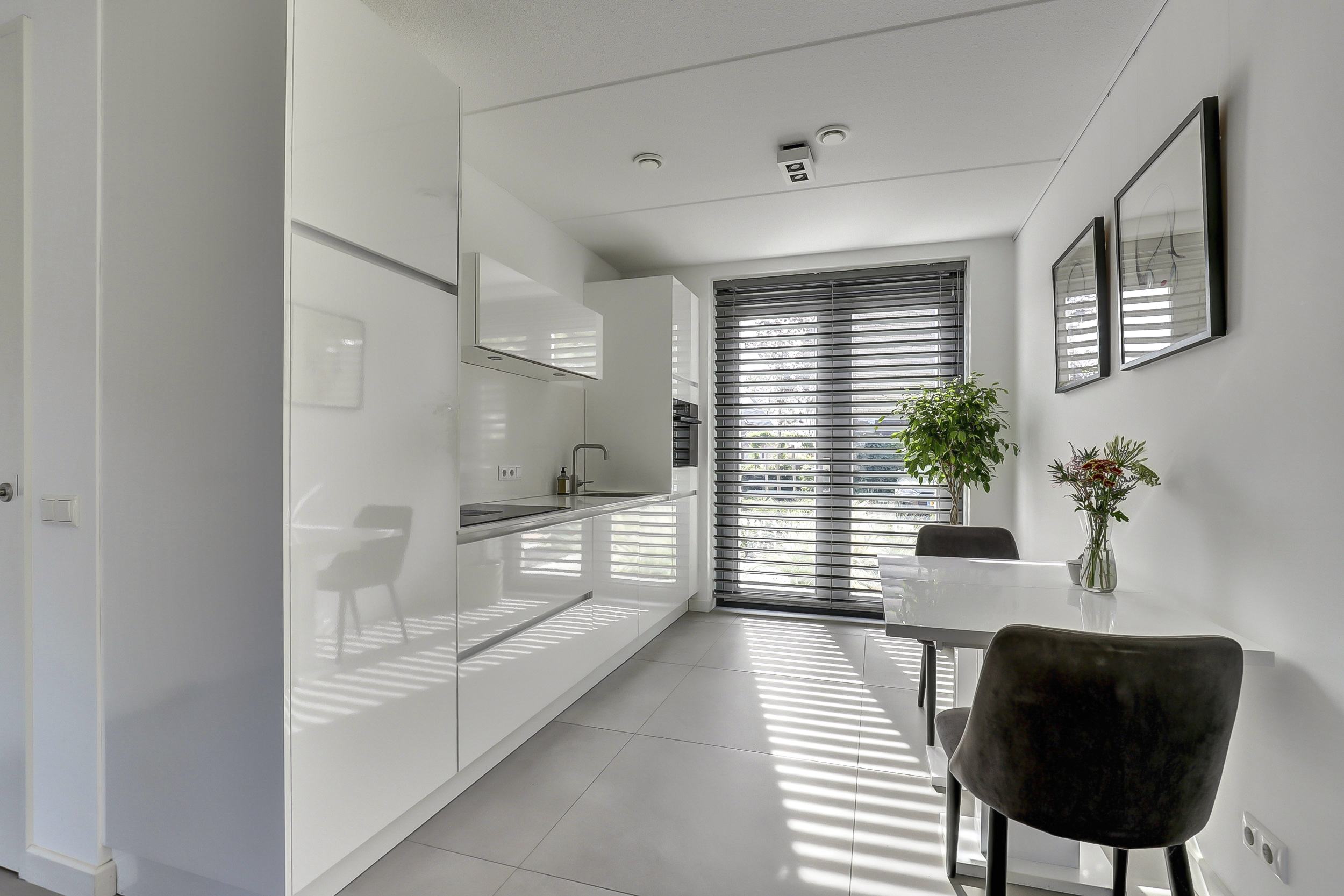 Wanneer je binnenstapt, ervaar je meteen de moderne afwerking en het lichte karakter van de woning. De woonkamer is ruim en flexibel in te delen. Dankzij de uitbouw heb je een heerlijke tuinkamer waar binnen en buiten naadloos in elkaar overlopen. De keuken is eigentijds en compleet uitgerust, met leuk zicht op het rustige woonerf. Op de gehele begane grond ligt een fraaie tegelvloer met comfortabele vloerverwarming.