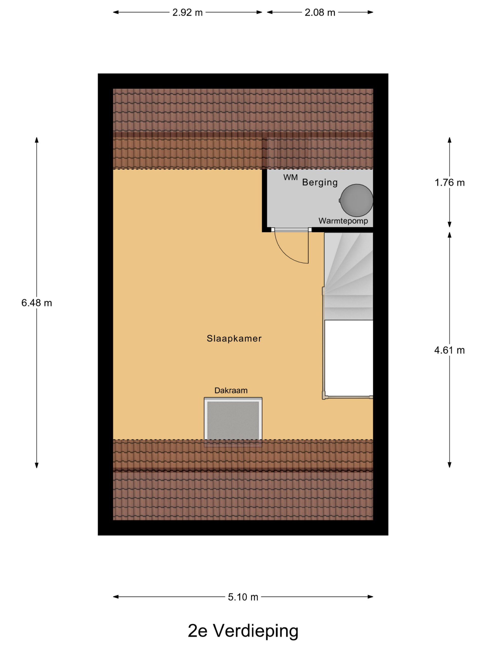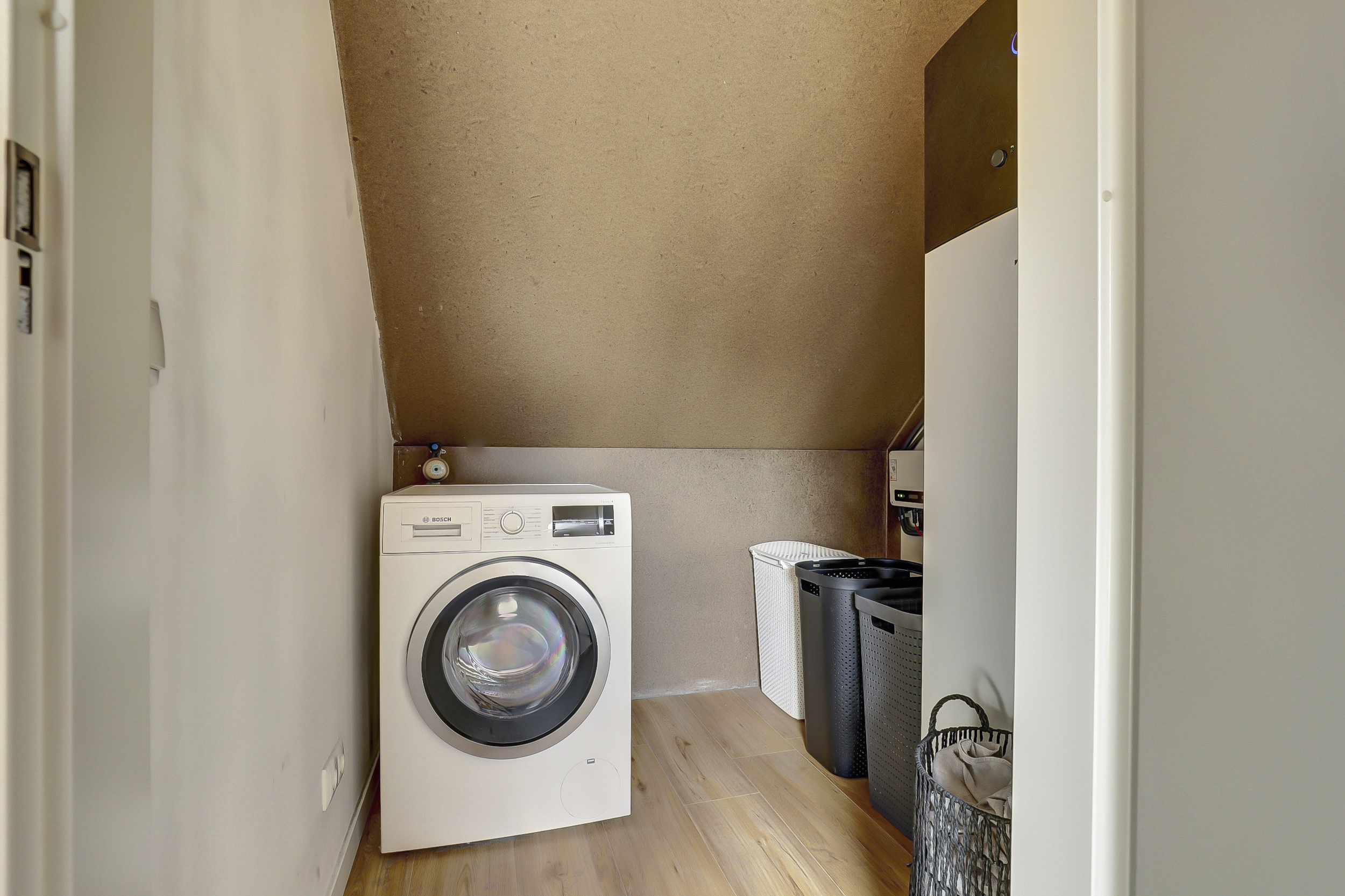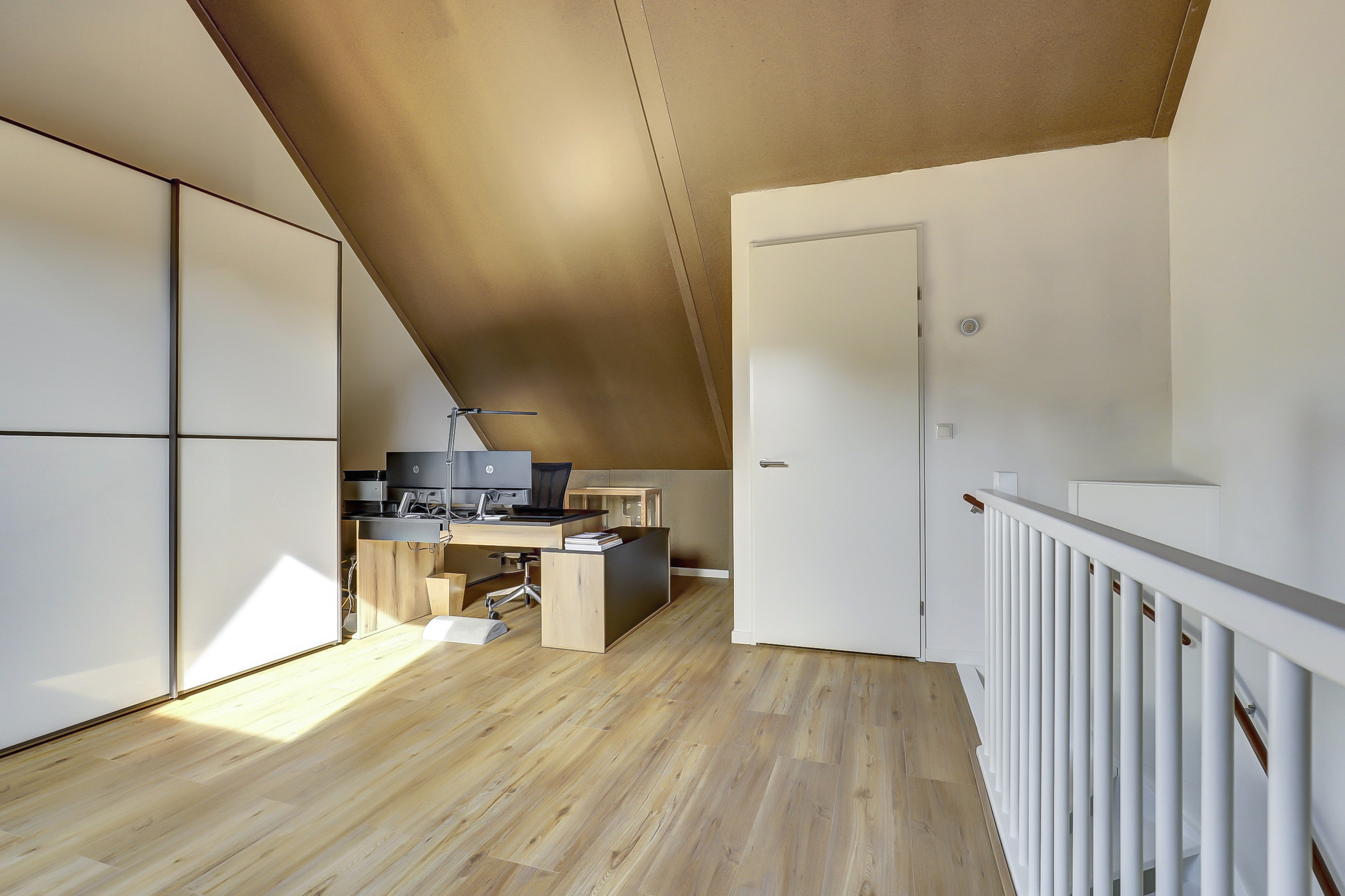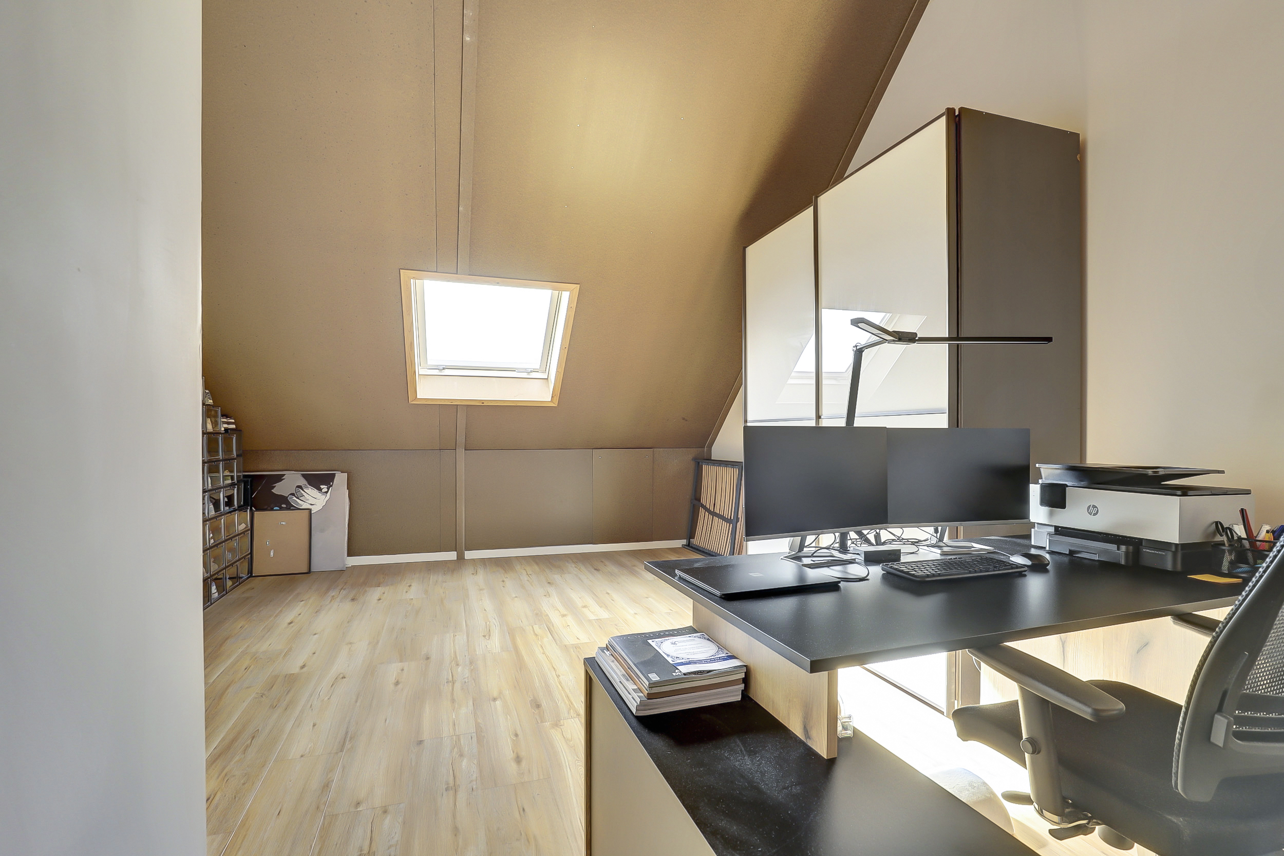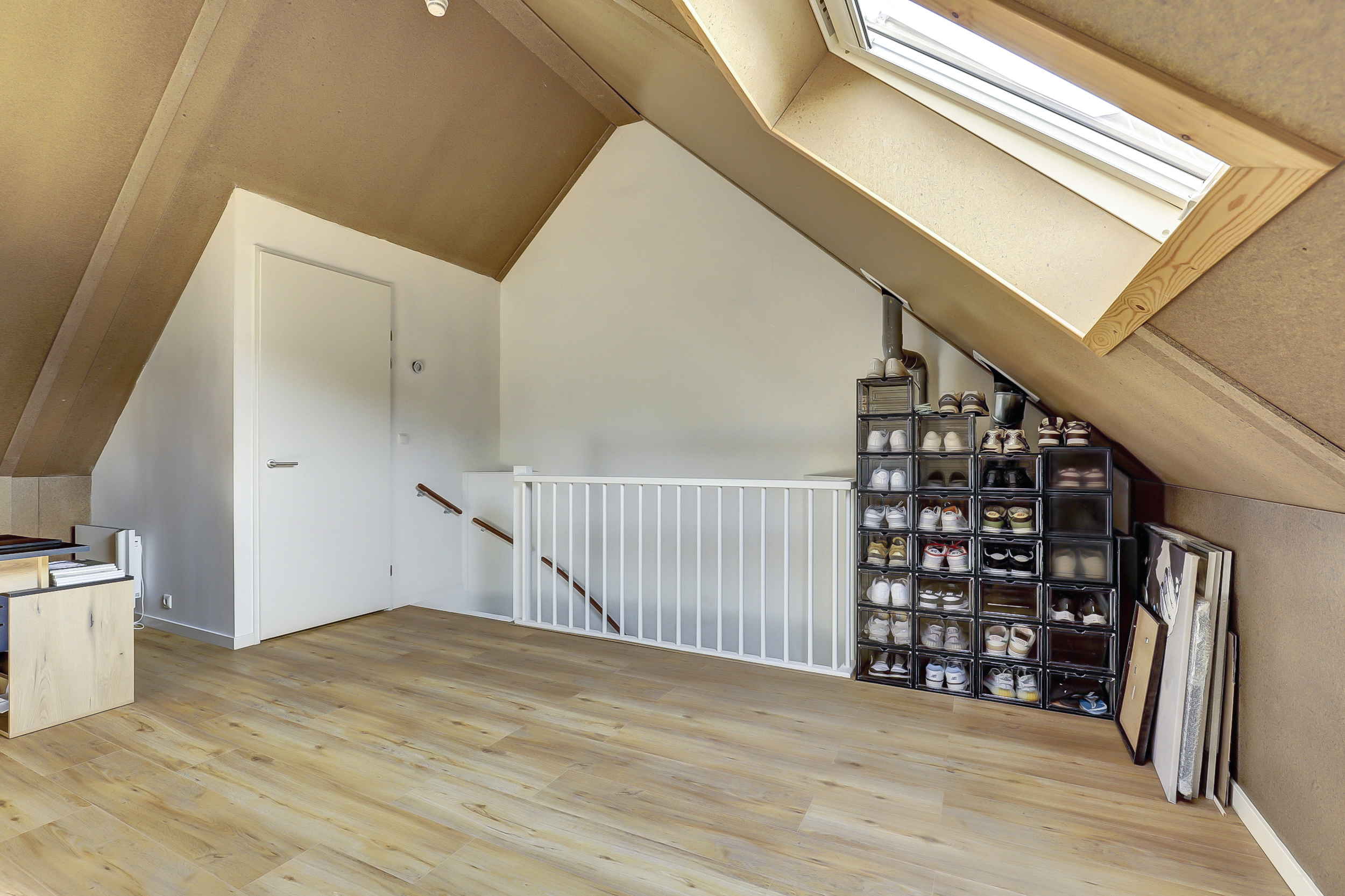 De tweede verdieping is een fijne verrassing: een grote open ruimte met dakraam die volop mogelijkheden biedt voor een extra slaapkamer, hobbyruimte of thuiskantoor. Hier vind je tevens de technische ruimte met warmtepomp en witgoedaansluitingen.