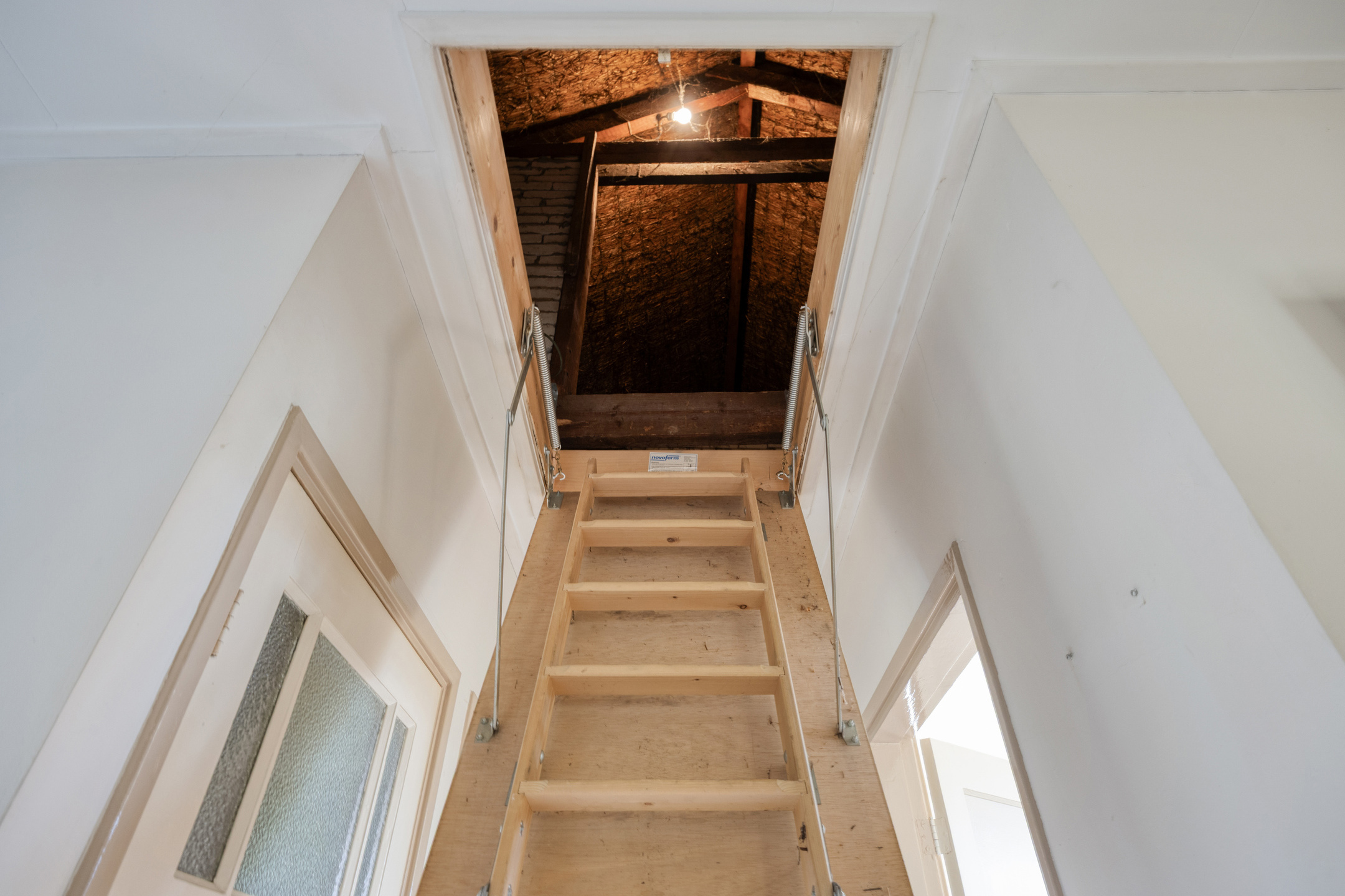 Een grote open onafgewerkte ruimte en met veel mogelijkheden. Nu nog te bereiken met de vlizotrap. De zolderverdieping die door een nieuwe eigenaar een eigen functie kan krijgen met een mogelijkheid voor nog 2 ruime kamers!