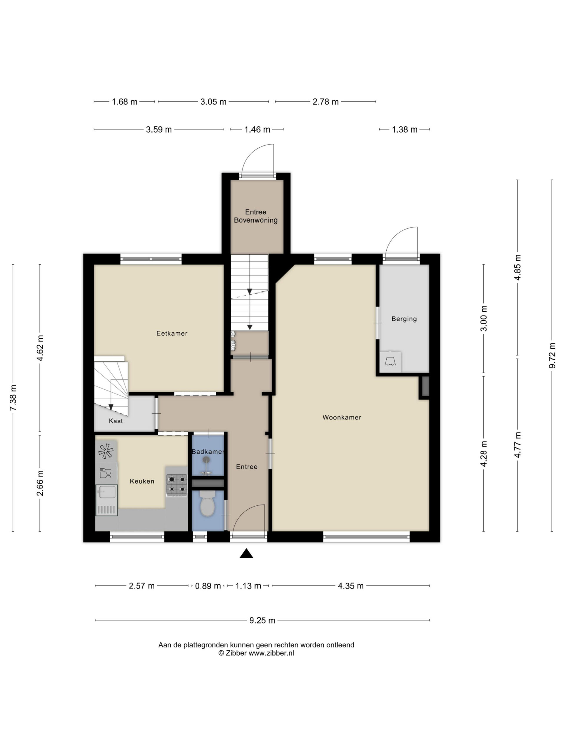 Entree, hal, toiletruimte, royale doorzonwoonkamer, bijkeuken/berging en deur naar achterplaats. Keuken in U-opstelling en diverse inbouwapparatuur en zicht op de tuin aan de voorzijde, ruime eetkamer met trapopang naar de verdieping.