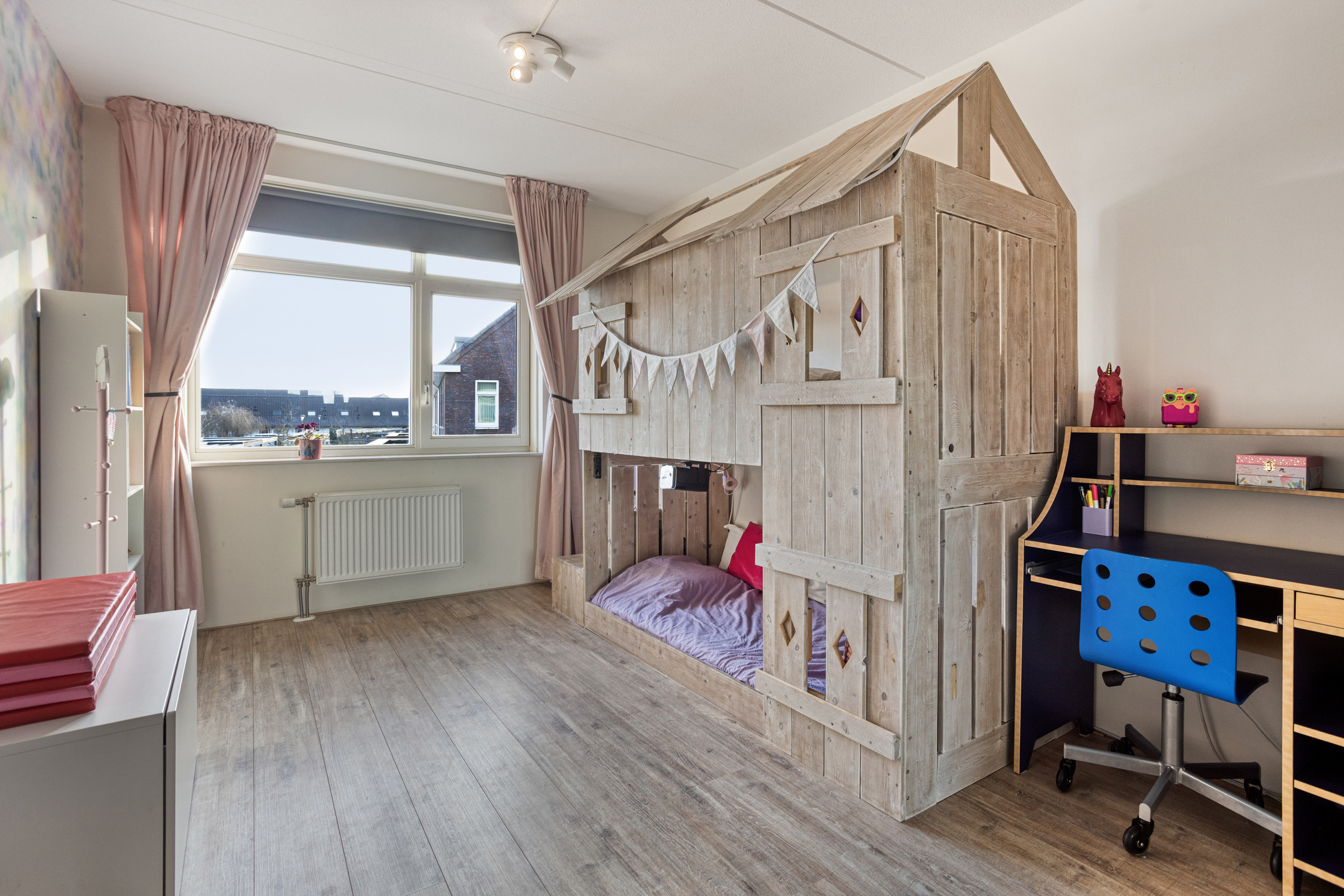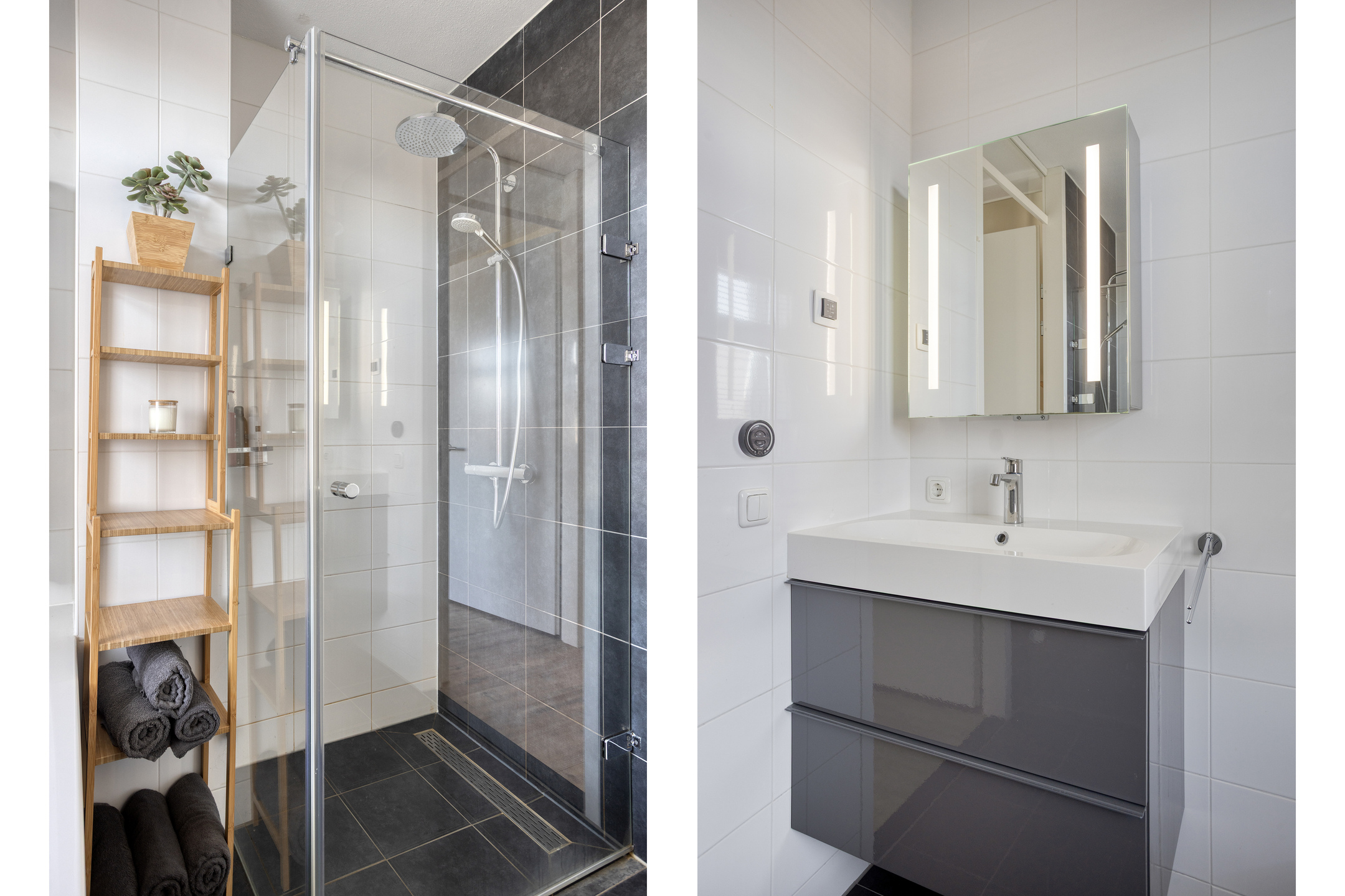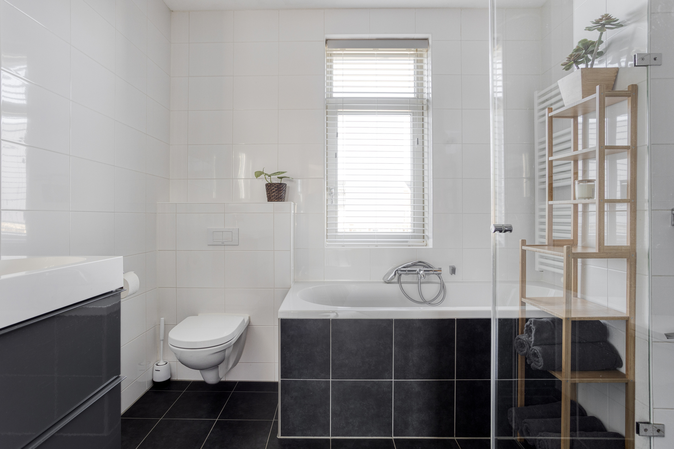 Op de eerste verdieping vind je drie slaapkamers van een goed formaat, licht en keurig afgewerkt. De badkamer heeft een moderne uitstraling en biedt alles om even tot rust te komen: een ligbad, een ruime inloopdouche, een wastafelmeubel en een tweede toilet. Ook hier geniet je van het comfort van vloerverwarming.