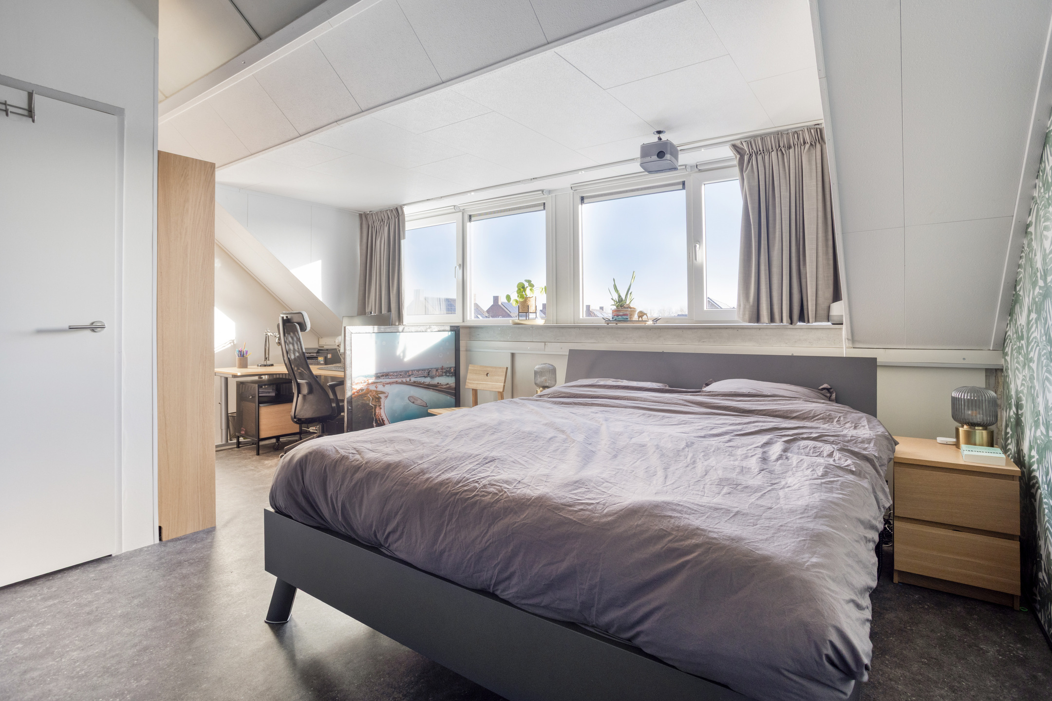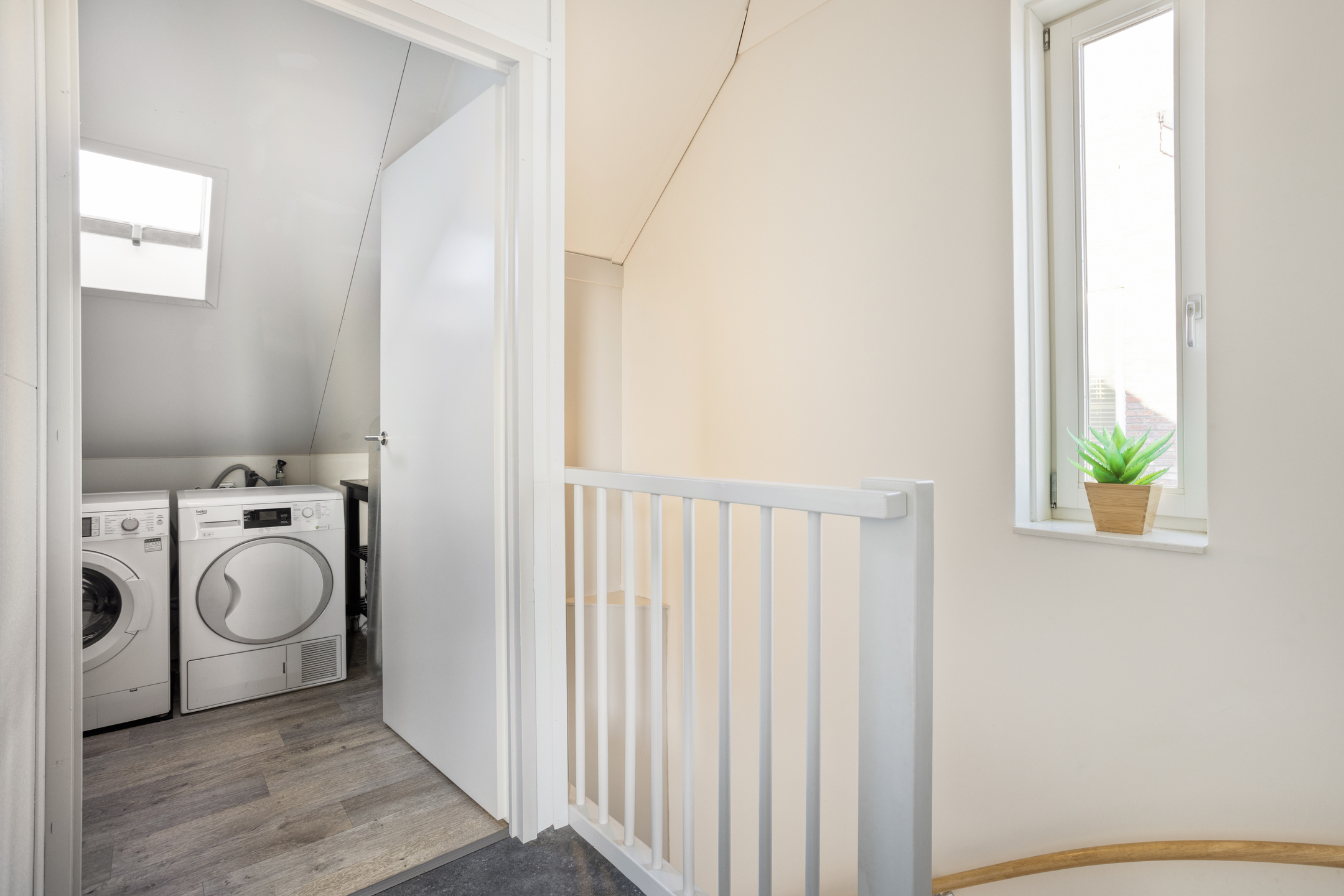 De tweede verdieping is dankzij de dakkapel van ruim 4 meter breed een volwaardige en lichte woonetage geworden. Deze lichte ruimte leent zich perfect als ‘master bedroom’ of rustige thuiswerkplek en is voorzien van airconditioning. Verder vind je in een aparte ruimte op deze verdieping. Er is een aparte ruimte voor de witgoedaansluitingen en de mechanische ventilatie. Deze ruimte is nu in gebruik als berging maar biedt ook de mogelijkheid tot het creëren van een vijfde slaapkamer.