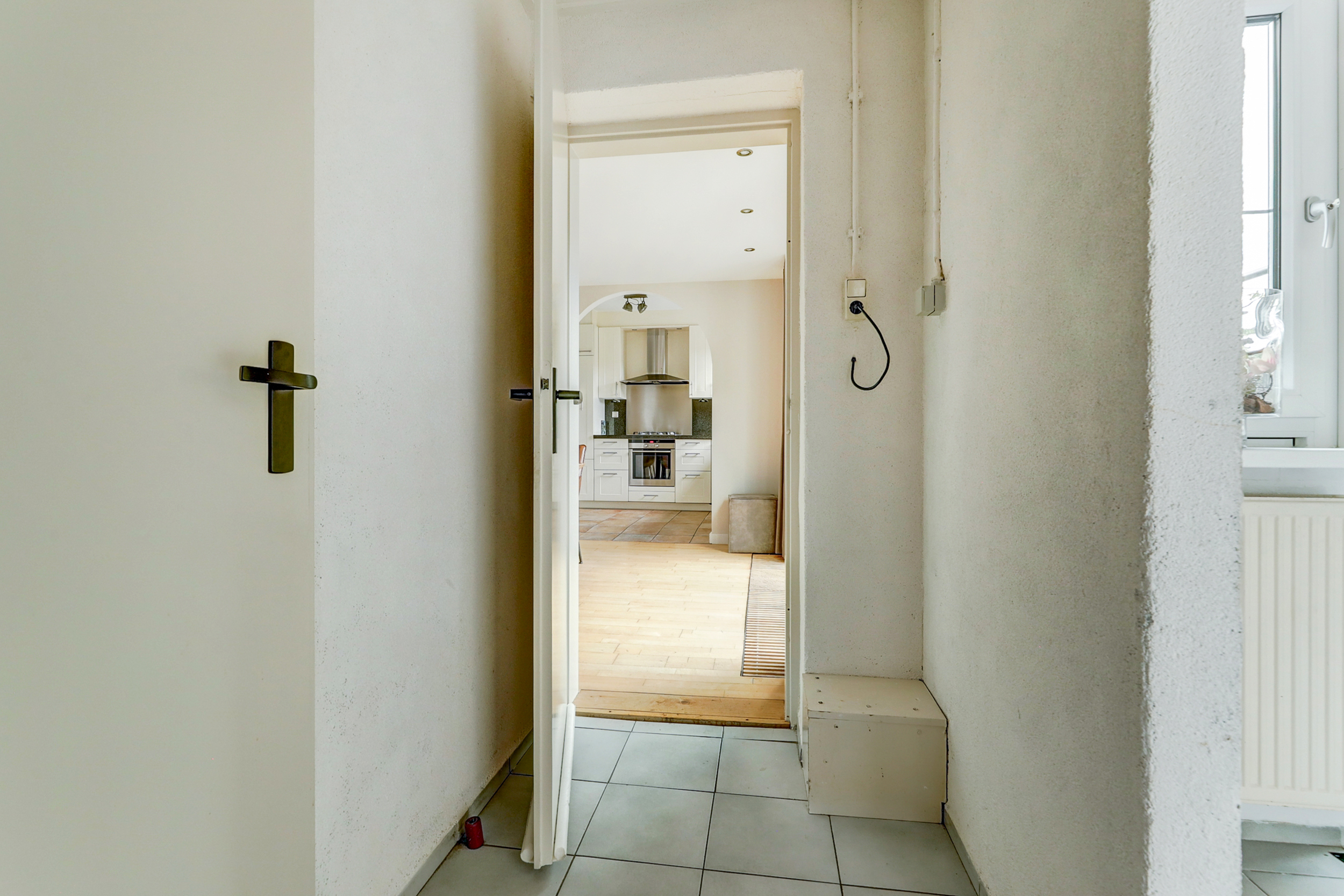 Een groot pluspunt is de bijkeuken: super praktisch voor witgoed, voorraad en alles wat je liever uit het zicht houdt. Vanuit hier bereik je binnendoor ook de garage, die is voorzien van verwarming en elektra. Dat maakt ’m niet alleen geschikt voor opslag of fietsen, maar ook voor hobby’s of klussen.