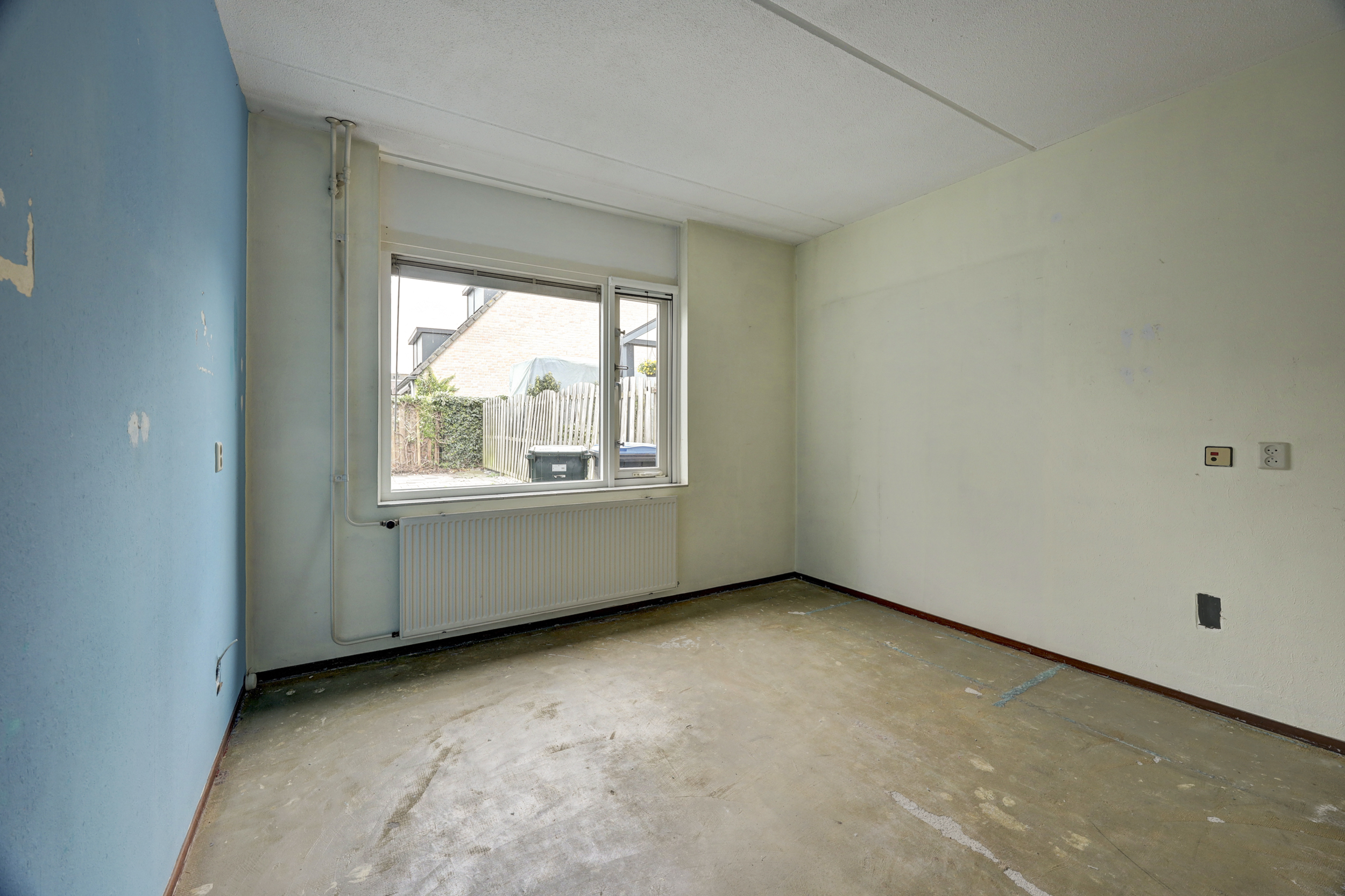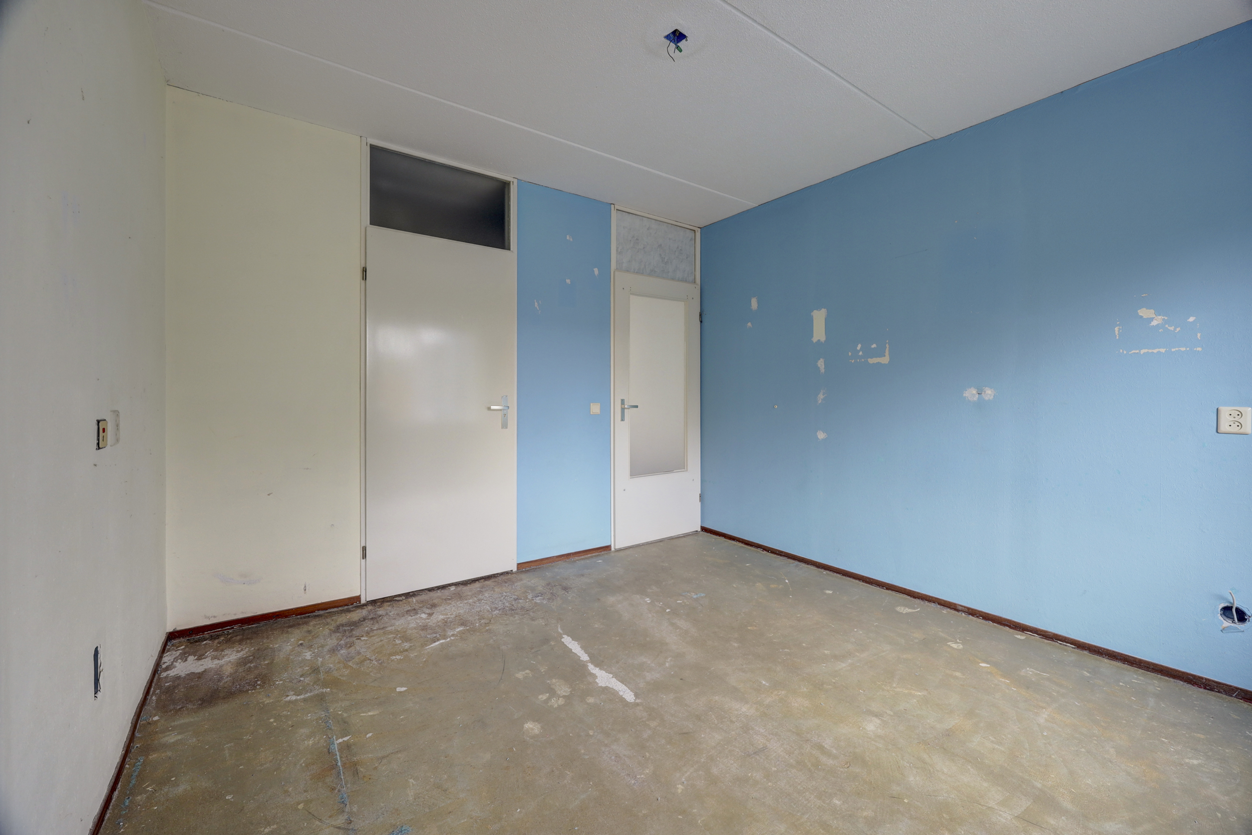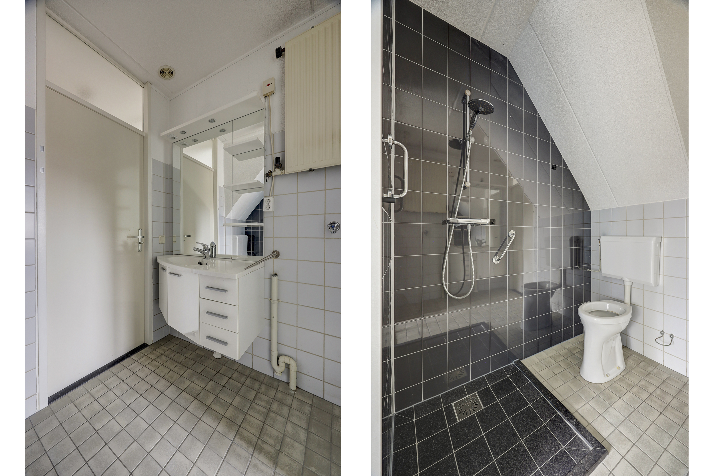 Verder beschikt de begane grond over een slaapkamer met veel natuurlijke lichtinval. Vanuit de slaapkamer bereik je de badkamer, die is voorzien van een staand toilet, douche, wastafel met meubel en de witgoedaansluitingen. Deze badkamer is ook te bereiken via een tweede hal, waar zich tevens de trap naar de eerste verdieping bevindt.