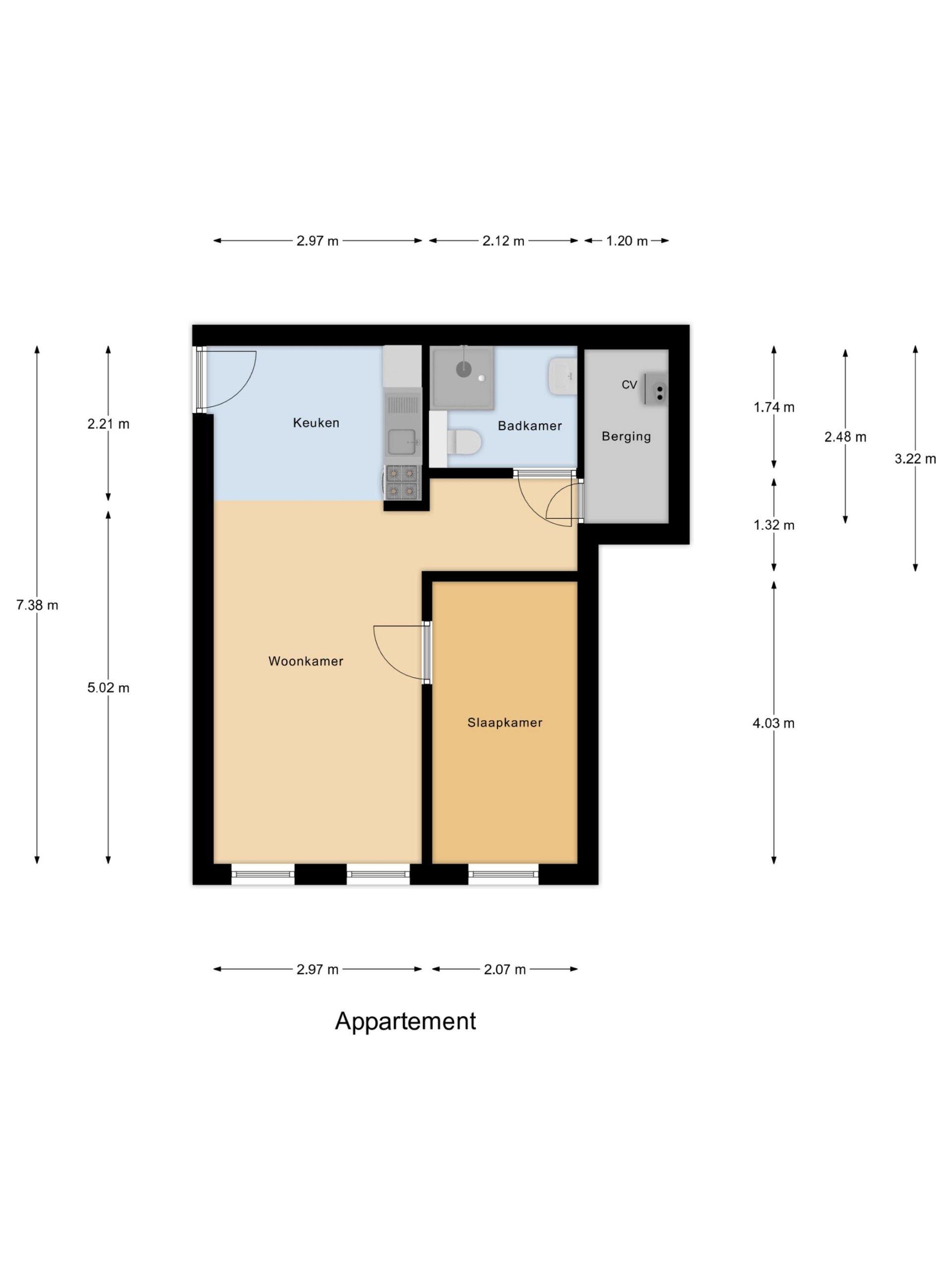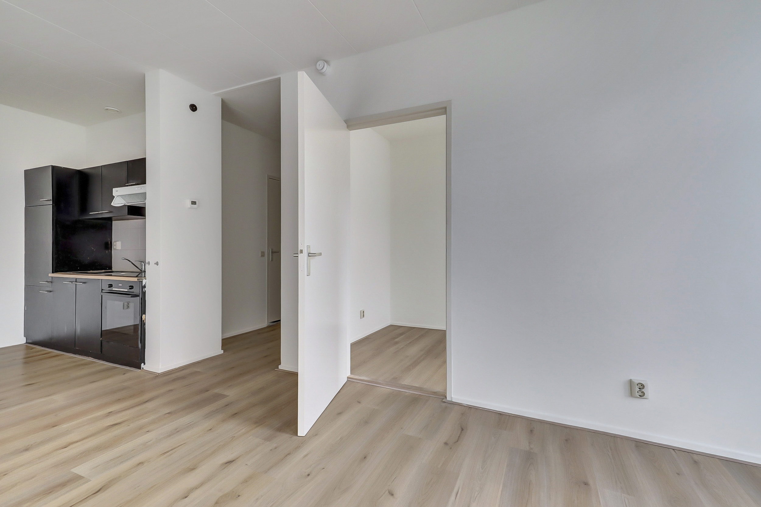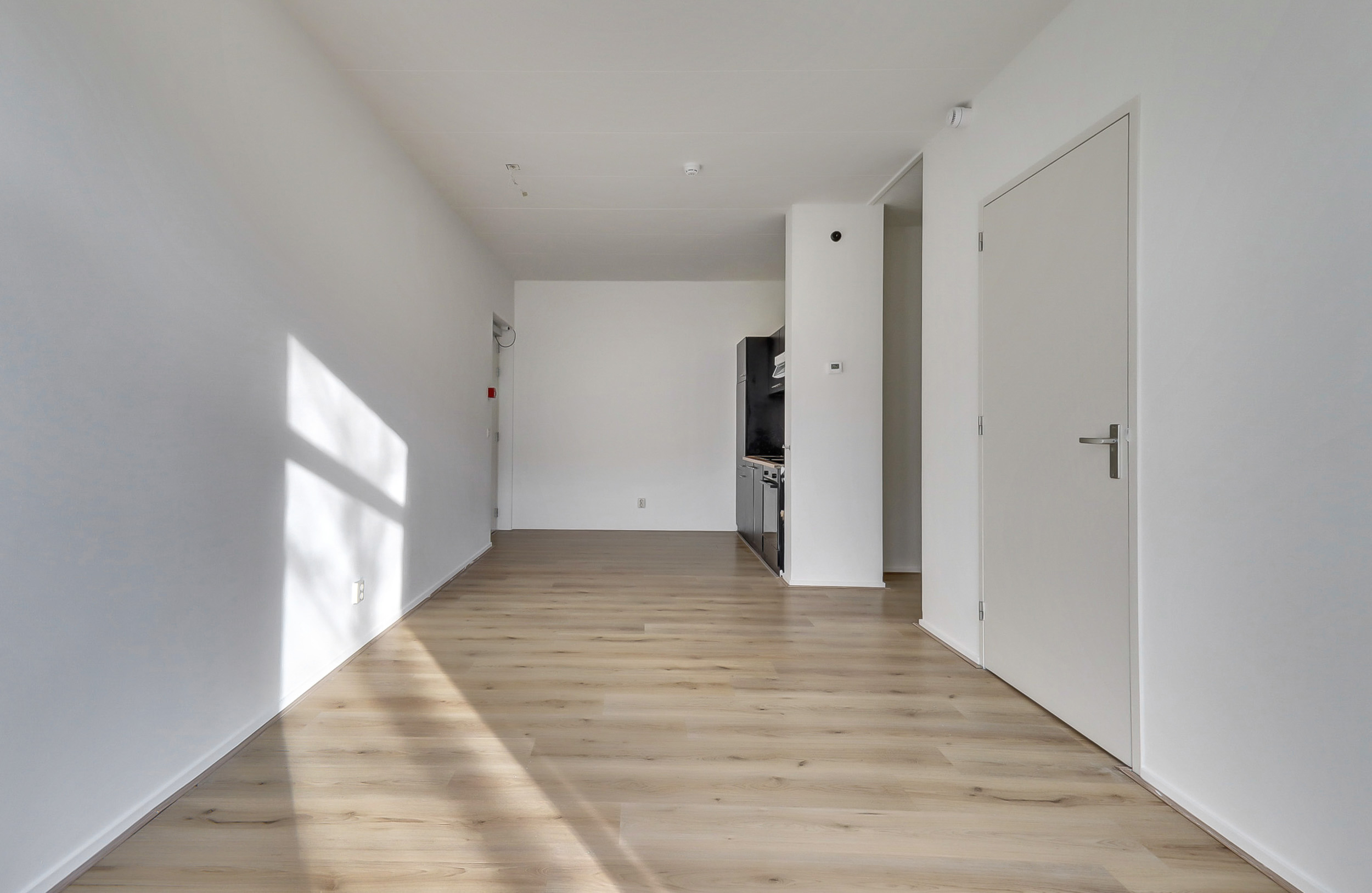 Jouw appartement met lichte woonkamer biedt met volop ruimte voor een gezellige zithoek en een fijne eettafel. De open keuken is voorzien van een koelkast met een klein vriesvak, inductiekookplaat, oven en afzuigkap. Aansluitend is de slaapkamer te bereiken.