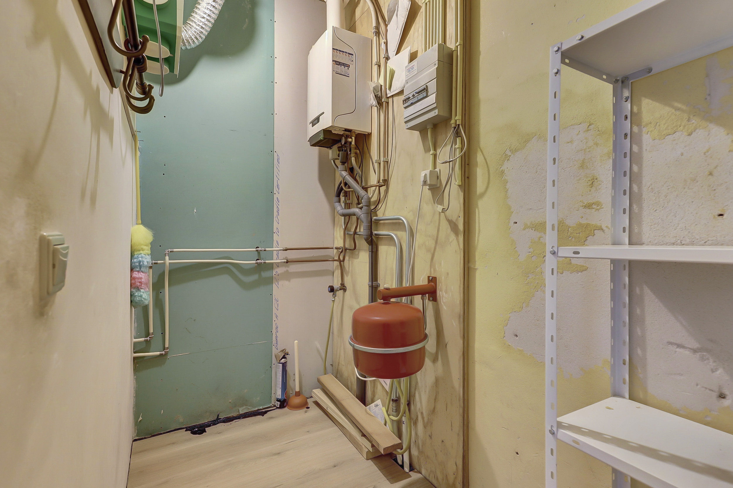 De badkamer beschikt over een douche, wandcloset, een wastafel, handdoekradiator en mechanische ventilatie. De praktische inpandige berging voor opslag, voorraad en hier hangt tevens de cv ketel, je eigen groepenkast en mv- unit.