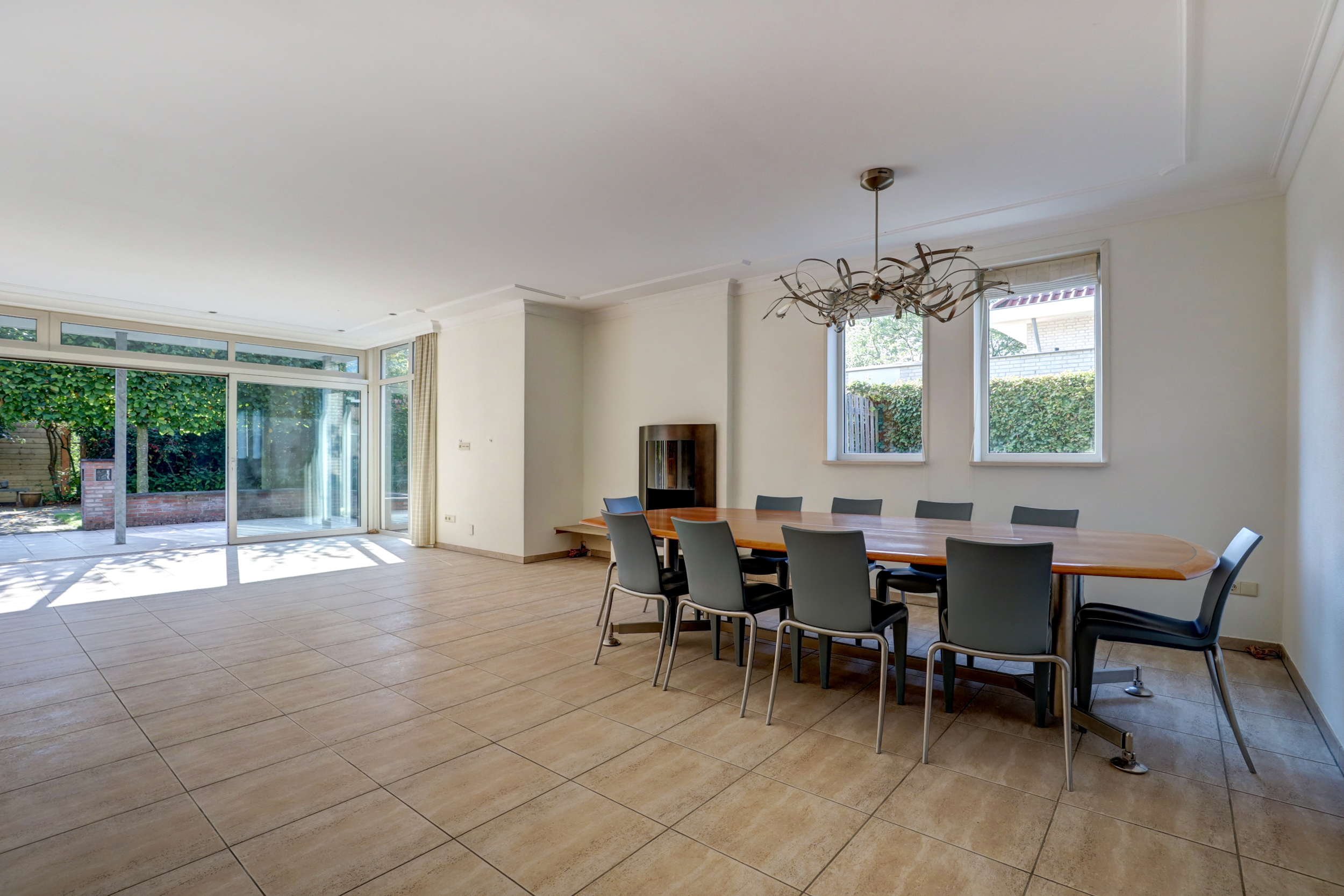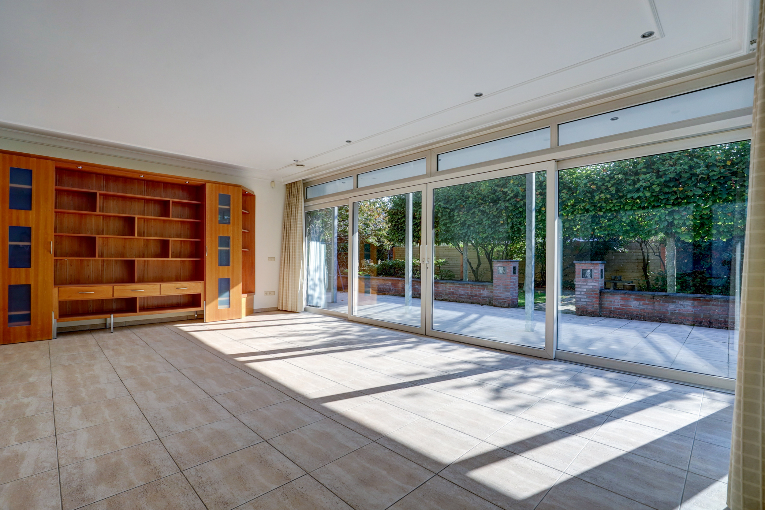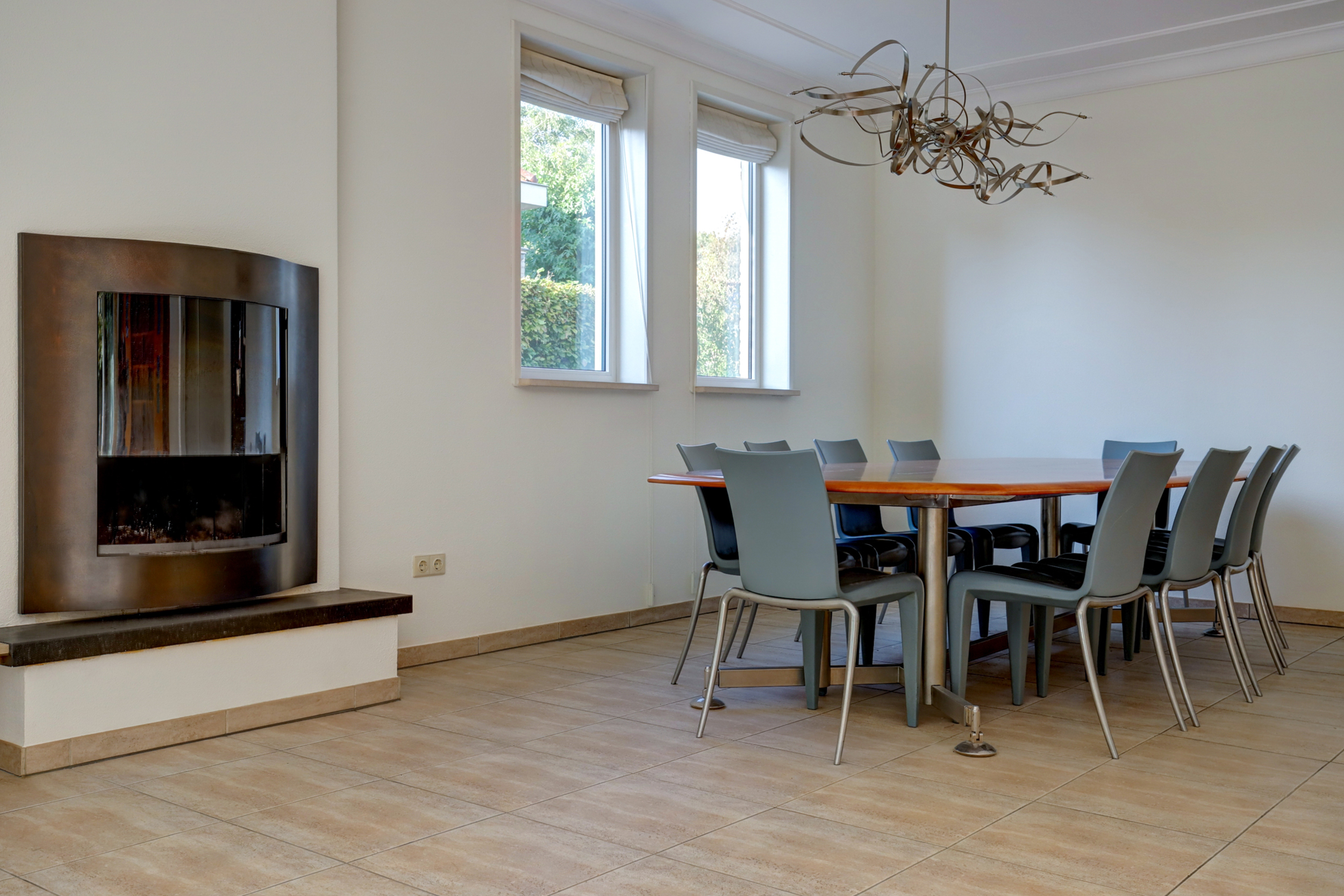 – Royale woonkamer met openhaard en dubbele schuifpui naar de tuin;