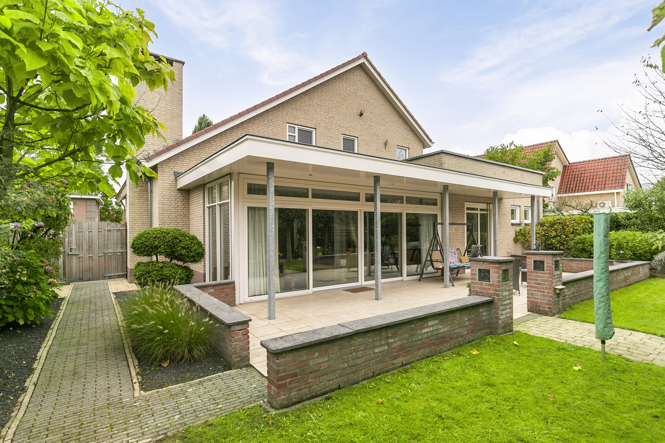 De achtertuin op het zuidoosten is verzorgd aangelegd en biedt volop ruimte om te ontspannen en te genieten van de zon of de schaduw. Door de ligging heb je veel vrijheid en privacy. Het ruime perceel, meerdere terrassen, de overkapping met elektra en buitenkraan maken dit een fijne plek voor de lange zomeravonden, barbecues of gewoon om te genieten van de rust. Naast de woning is nog een praktische houten berging van ca. 9 m² met elektra. De voortuin is netjes en onderhoudsvriendelijk aangelegd en voorzien van laadpaal voor een elektrische auto en een buitenkraan.