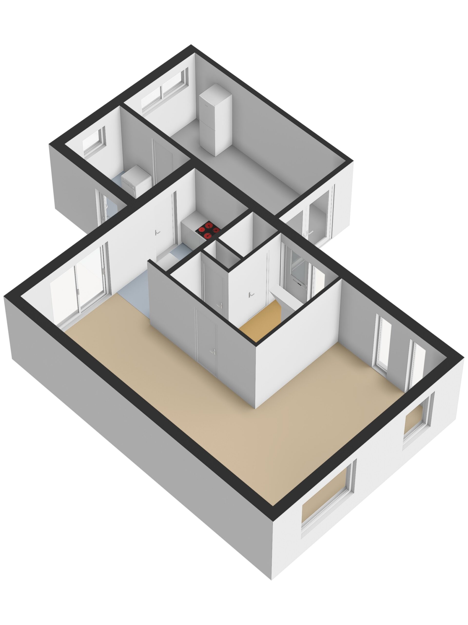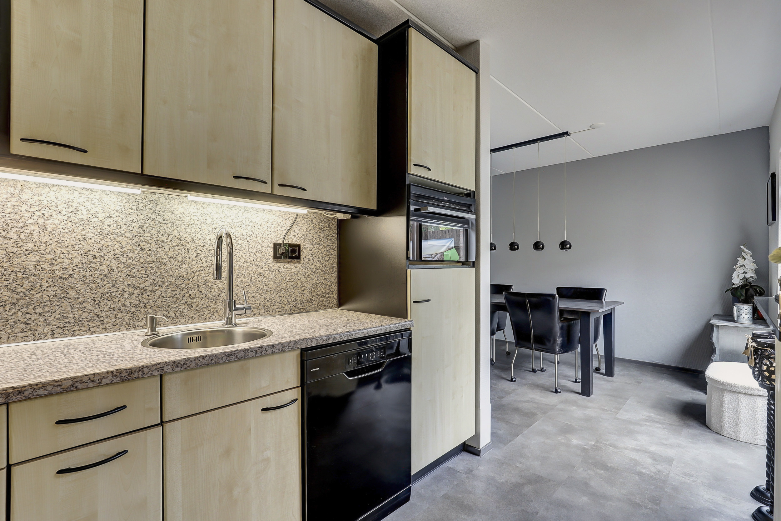 + Neutrale PVC vloer (2024) in woonkamer, keuken, hal en toilet;