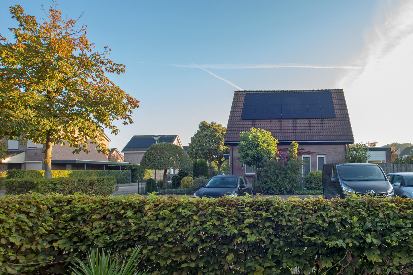 + Voortuin met eigen oprit, achtertuin op het zuiden;