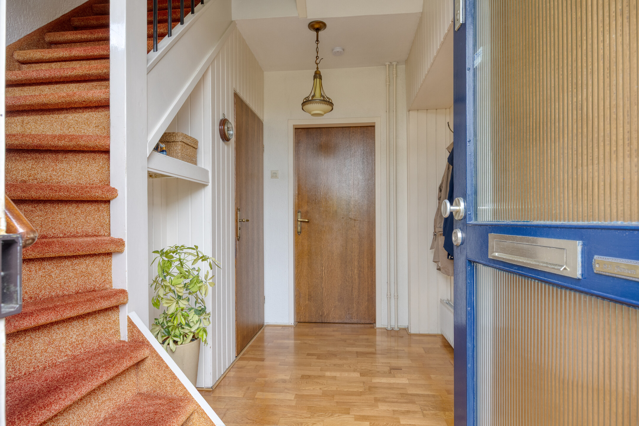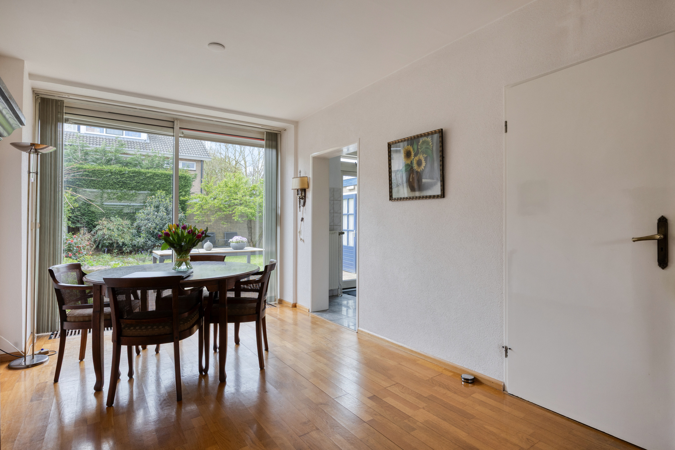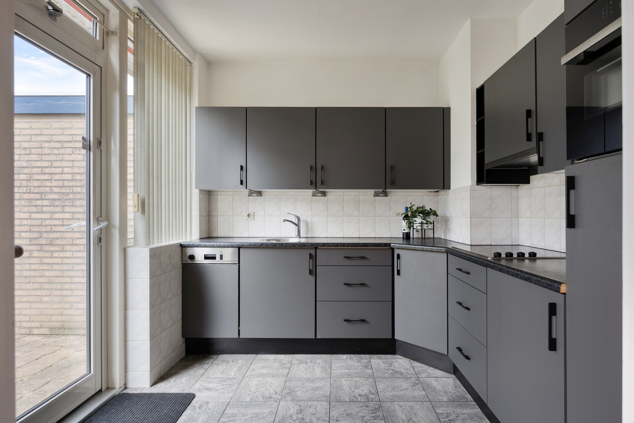 Je komt binnen in een ruime hal met toegang tot het toilet met fontein, de meterkast en de vaste trap naar de eerste verdieping. Vanuit de hal betreed je de lichte en royale woonkamer, waar grote raampartijen zorgen voor een prettige lichtinval. De aanwezige gashaard vormt een sfeervol middelpunt, terwijl de kunststof schuifpui zorgt voor een fijne verbinding tussen binnen en buiten. Aan de achterzijde van de woning bevindt zich de keuken, die in 2010 is vernieuwd en is voorzien van kunststof deur naar de achtertuin. De L-vormige opgestelde keuken heeft veel kastruimte en diverse inbouwapparatuur, o.a. een 4-pits keramische kookplaat, afzuigkap, vaatwasser, combioven, koelkast en vriezer en biedt daarmee alle benodigde apparatuur voor dagelijks comfort.