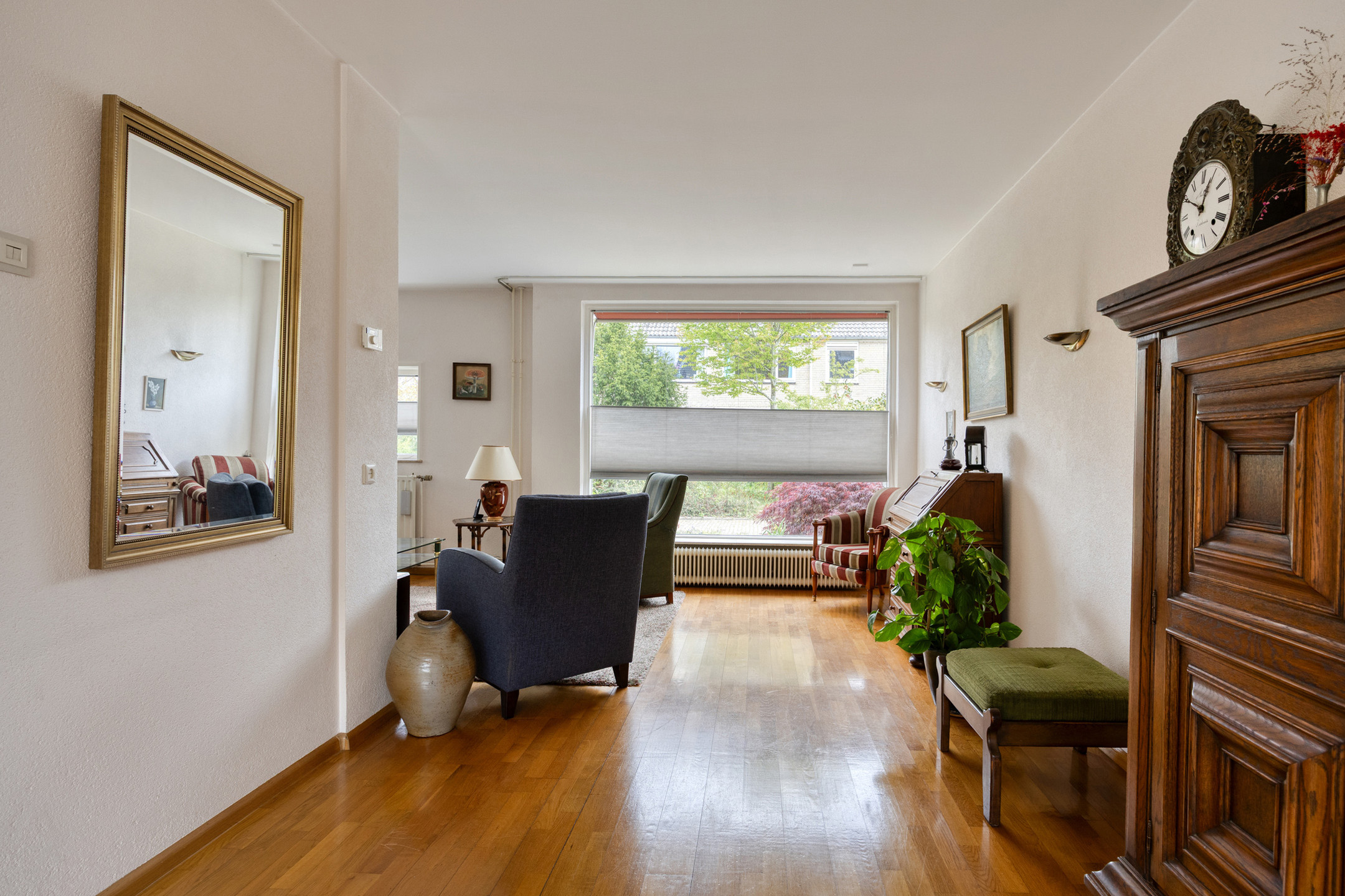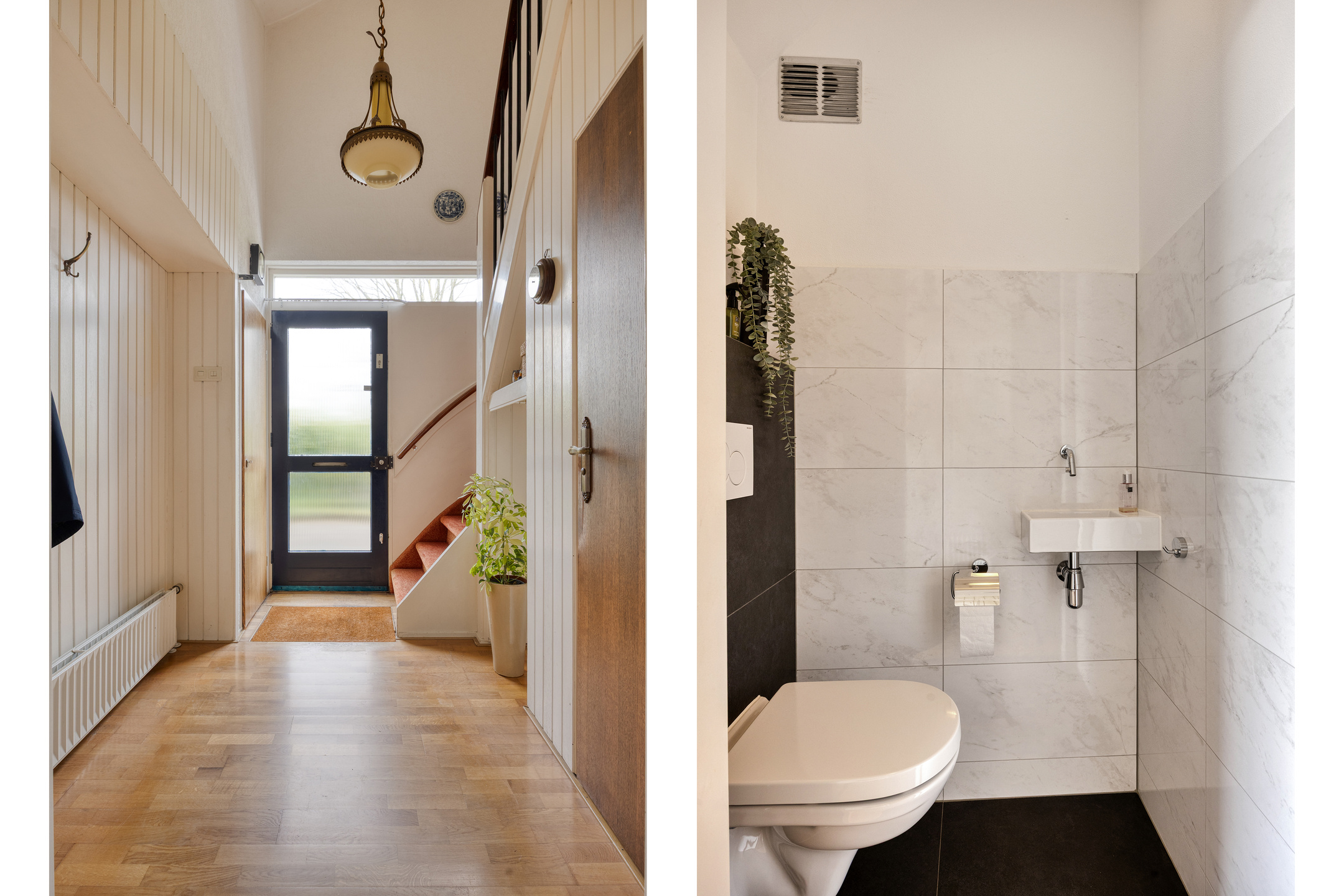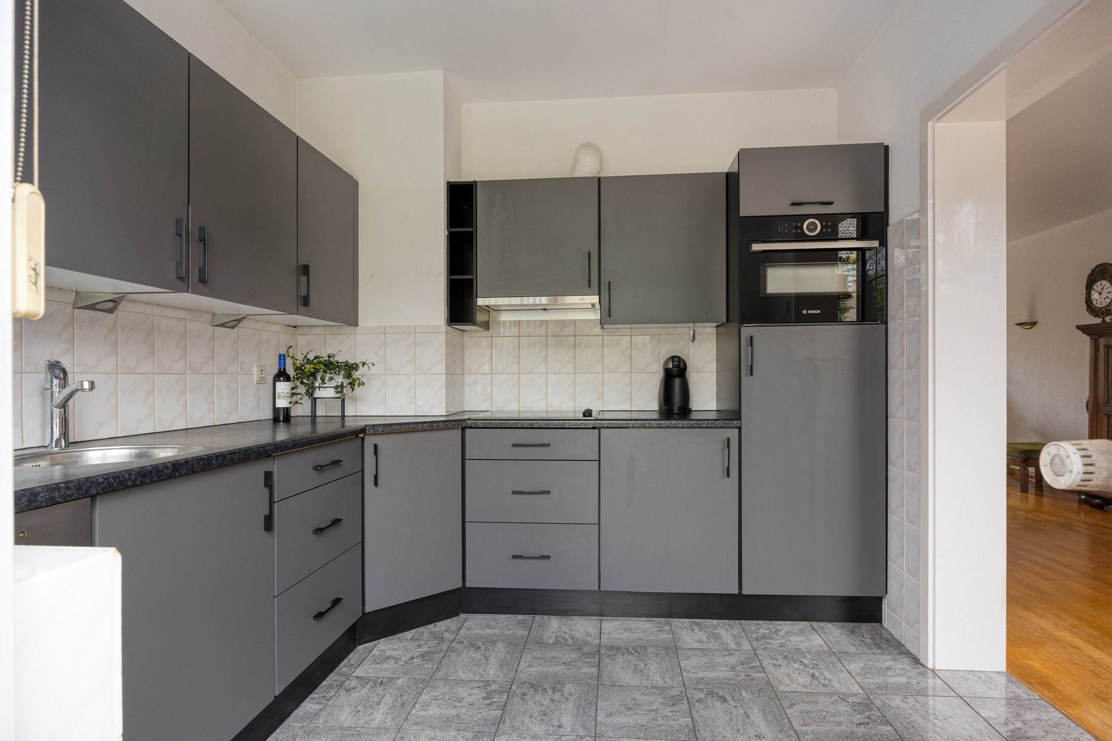 Je komt binnen in een ruime hal met toegang tot het toilet met fontein, de meterkast en de vaste trap naar de eerste verdieping. Vanuit de hal betreed je de lichte en royale woonkamer, waar grote raampartijen zorgen voor een prettige lichtinval. De aanwezige gashaard vormt een sfeervol middelpunt, terwijl de kunststof schuifpui zorgt voor een fijne verbinding tussen binnen en buiten. Aan de achterzijde van de woning bevindt zich de keuken, die in 2010 is vernieuwd en is voorzien van kunststof deur naar de achtertuin. De L-vormige opgestelde keuken heeft veel kastruimte en diverse inbouwapparatuur, o.a. een 4-pits keramische kookplaat, afzuigkap, vaatwasser, combioven, koelkast en vriezer en biedt daarmee alle benodigde apparatuur voor dagelijks comfort.