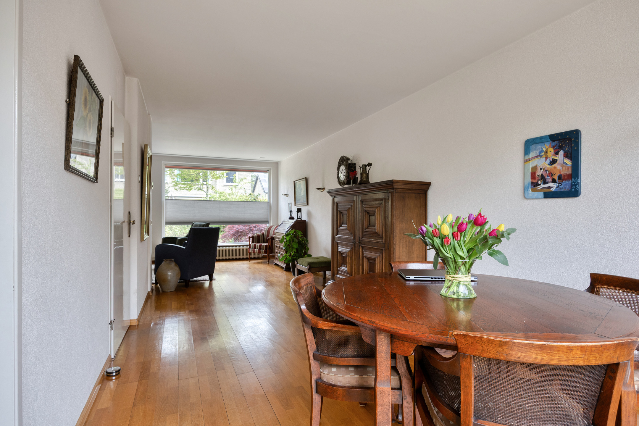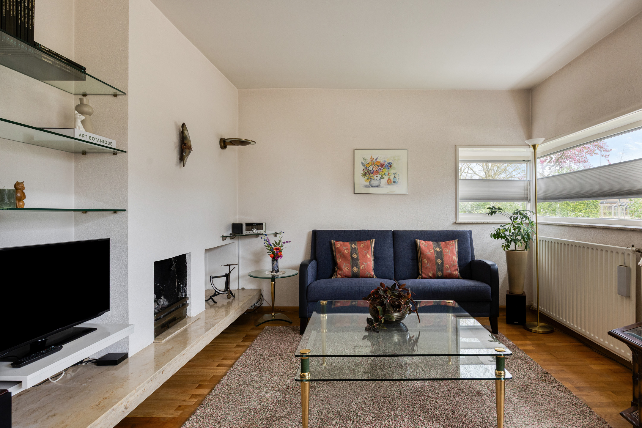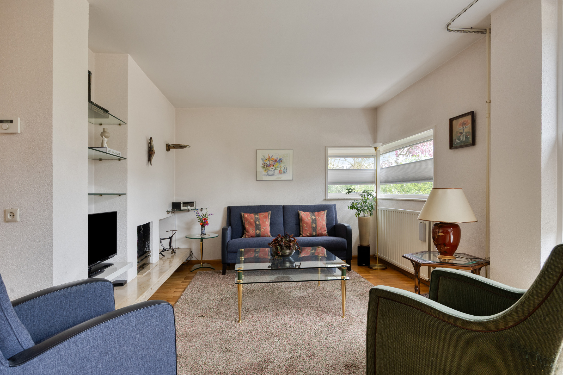 + Woonkamer met veel lichtinval, gashaard en schuifpui;