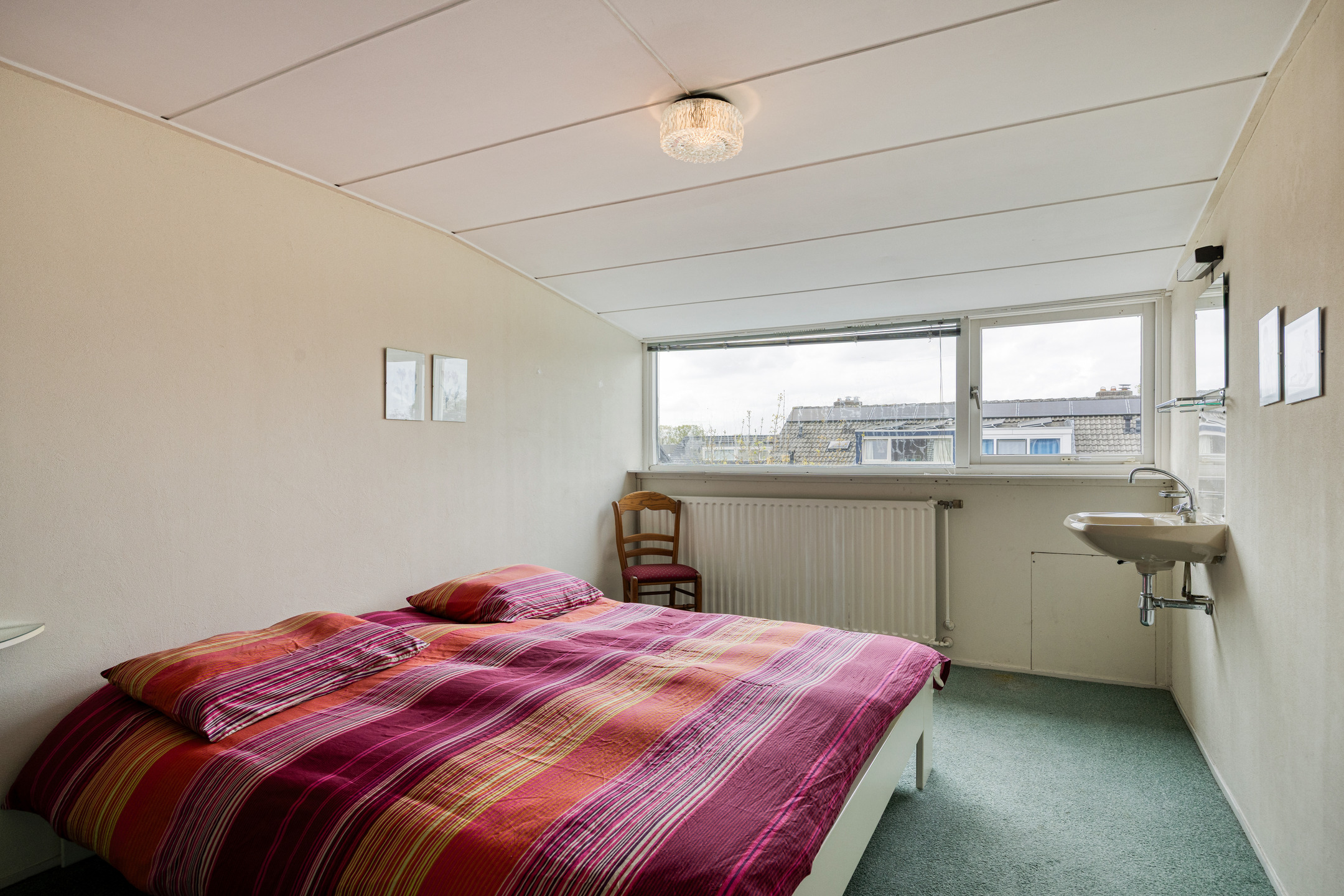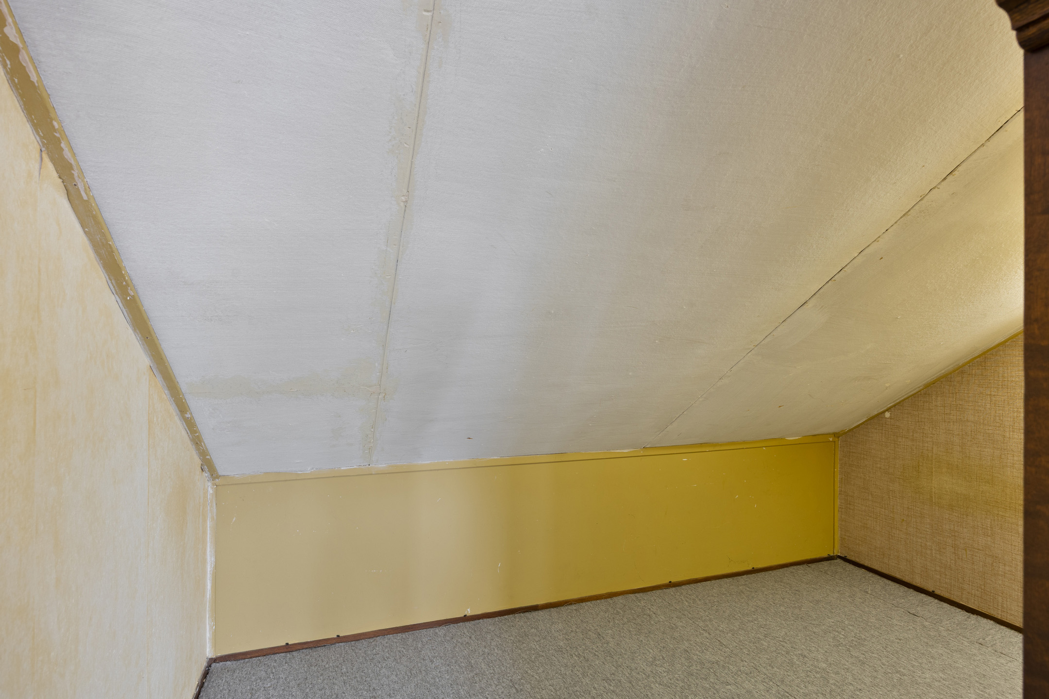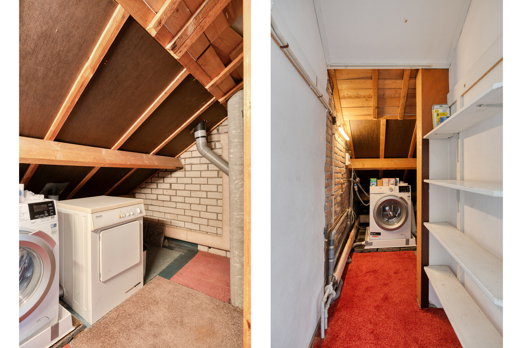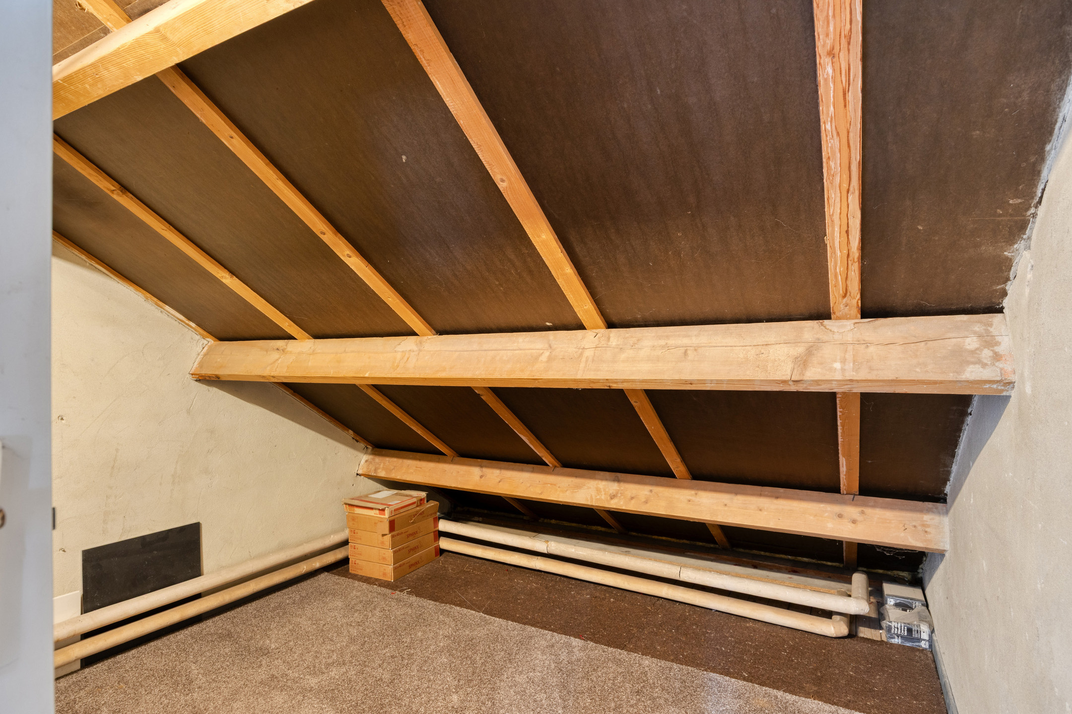 De overloop met raampje is via vaste trap te bereiken en biedt toegang tot de 2 separate bergruimtes en de 4de slaapkamer. 1 bergruimte is tevens in gebruik als wasruimte en is voorzien van wasmachine en droger aansluiting. In de andere bergruimte is de opstelplaats voor de Cv-ketel (Nefit, ca. 2013). De royale slaapkamer heeft aan de achterzijde een dakkapel, inbouwkast, wastafel en ruime extra separate bergruimte.