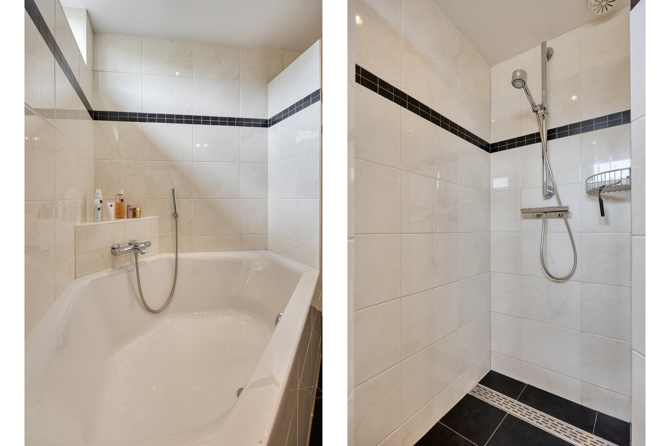 De badkamer is in 2015 vernieuwd en is uitgevoerd met een ligbad, inloopdouche toilet en wastafel en biedt daarmee een comfortabele en complete indeling.