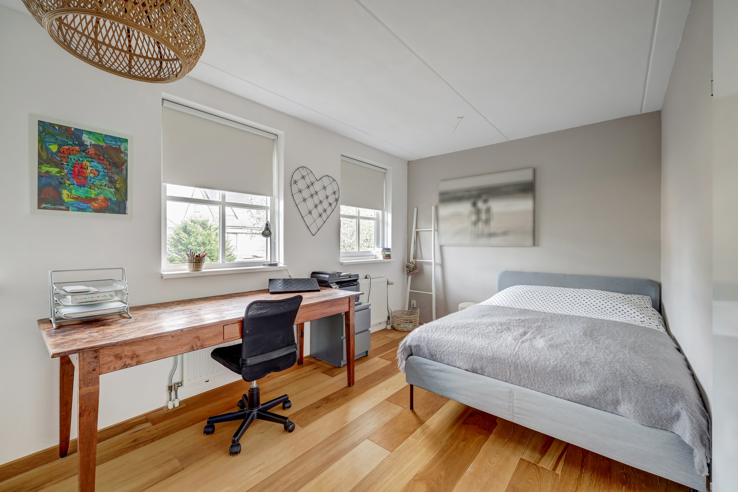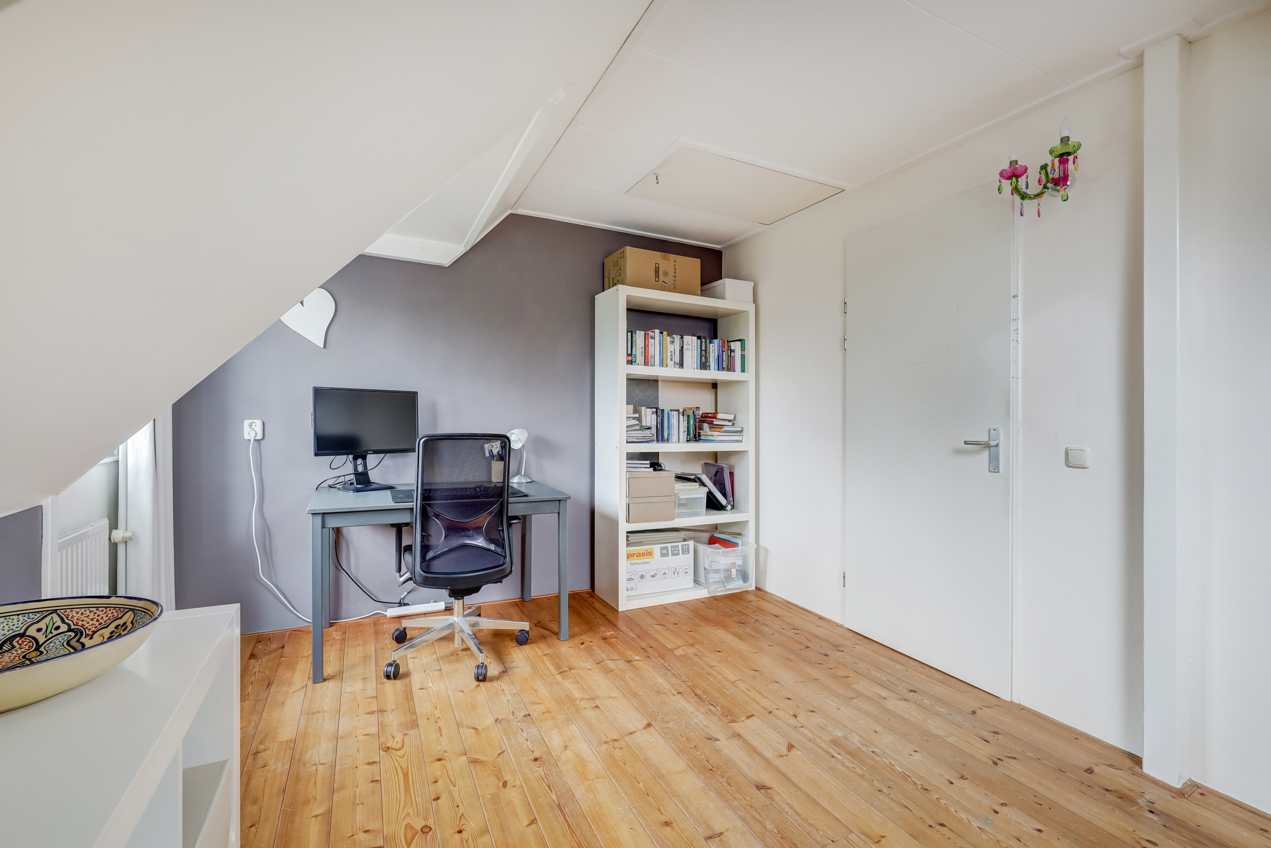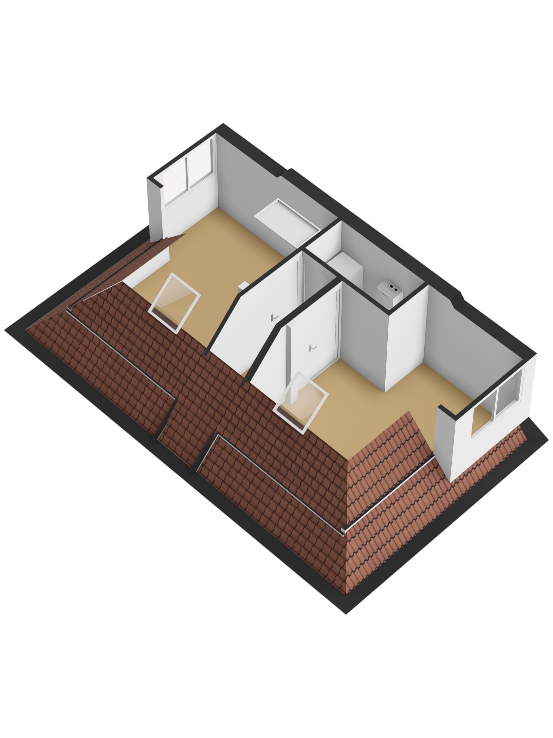 Hier bevinden zich nog twee ruime slaapkamers, beide voorzien van dakramen. De kamer aan de voorzijde beschikt over een vlizotrap naar een extra bergruimte. Op deze verdieping bevinden zich ook de CV-installatie en aansluitingen voor wasmachine en droger.