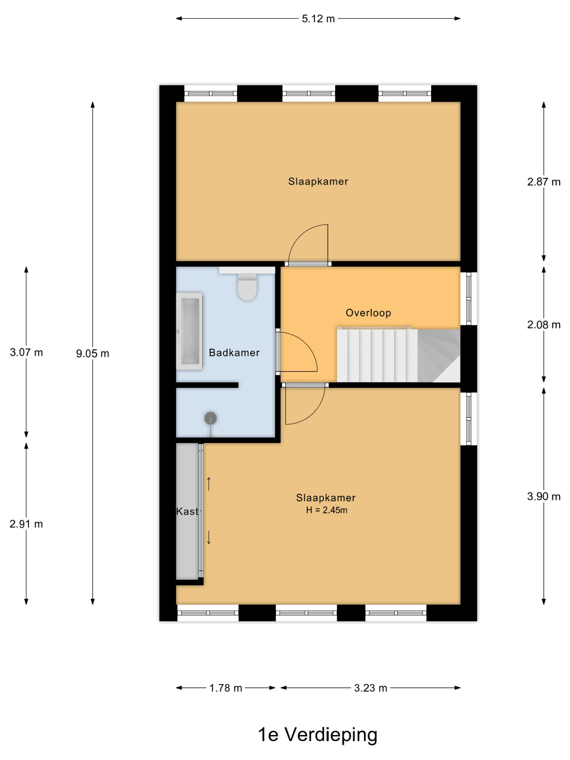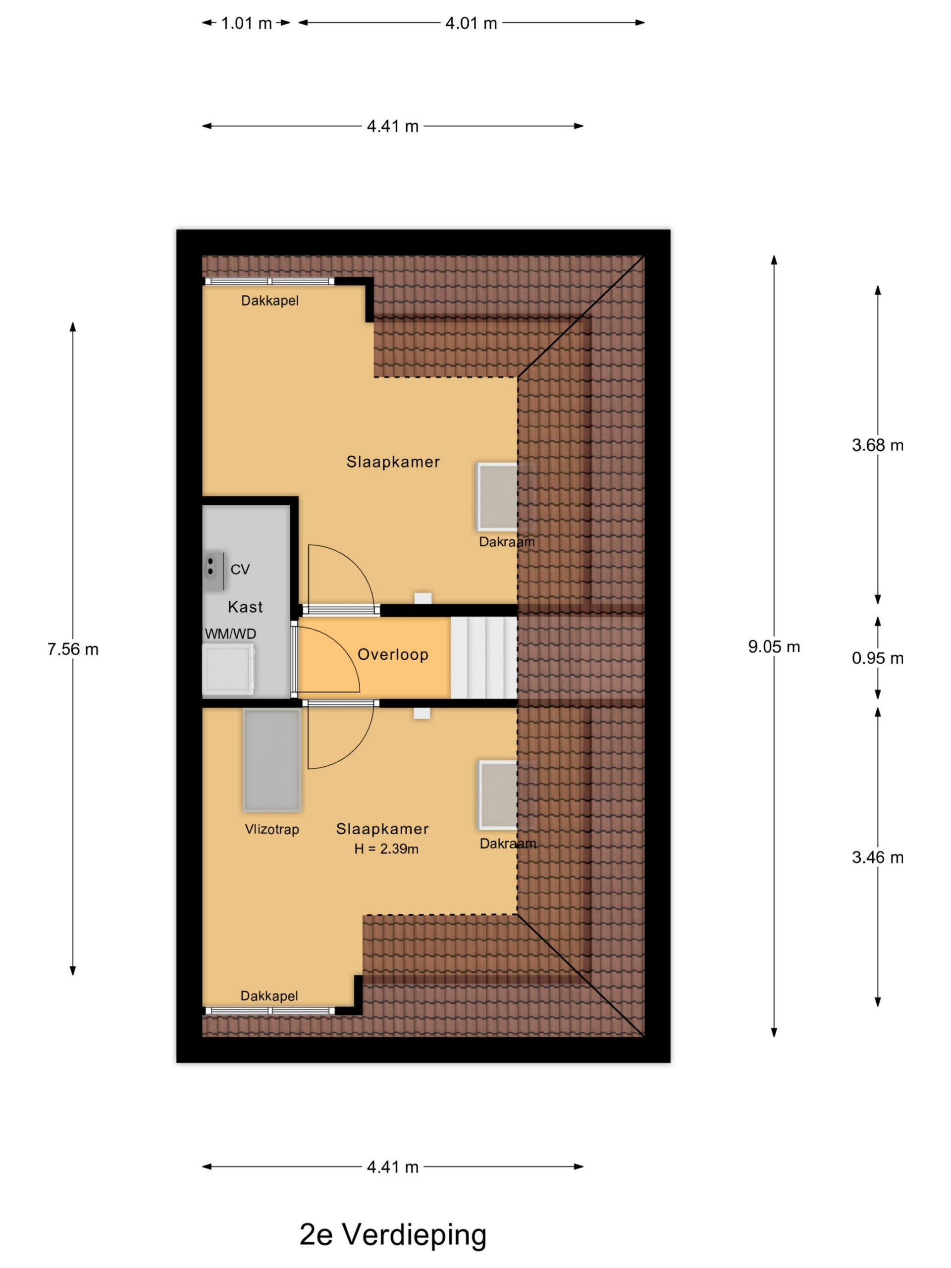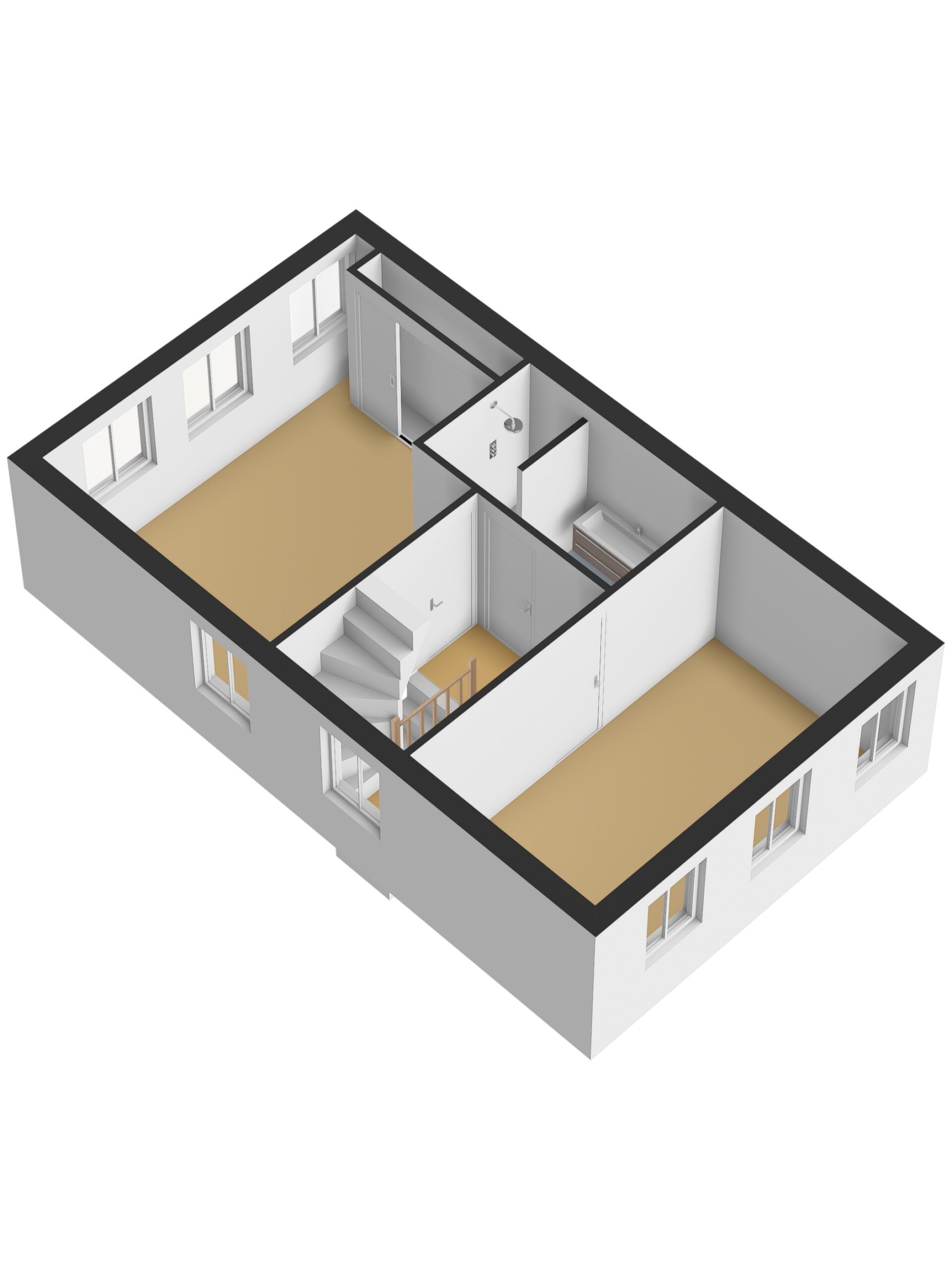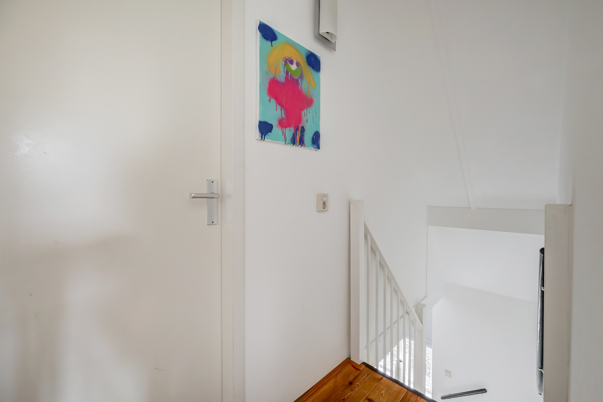 Hier bevinden zich nog twee ruime slaapkamers, beide voorzien van dakramen. De kamer aan de voorzijde beschikt over een vlizotrap naar een extra bergruimte. Op deze verdieping bevinden zich ook de CV-installatie en aansluitingen voor wasmachine en droger.