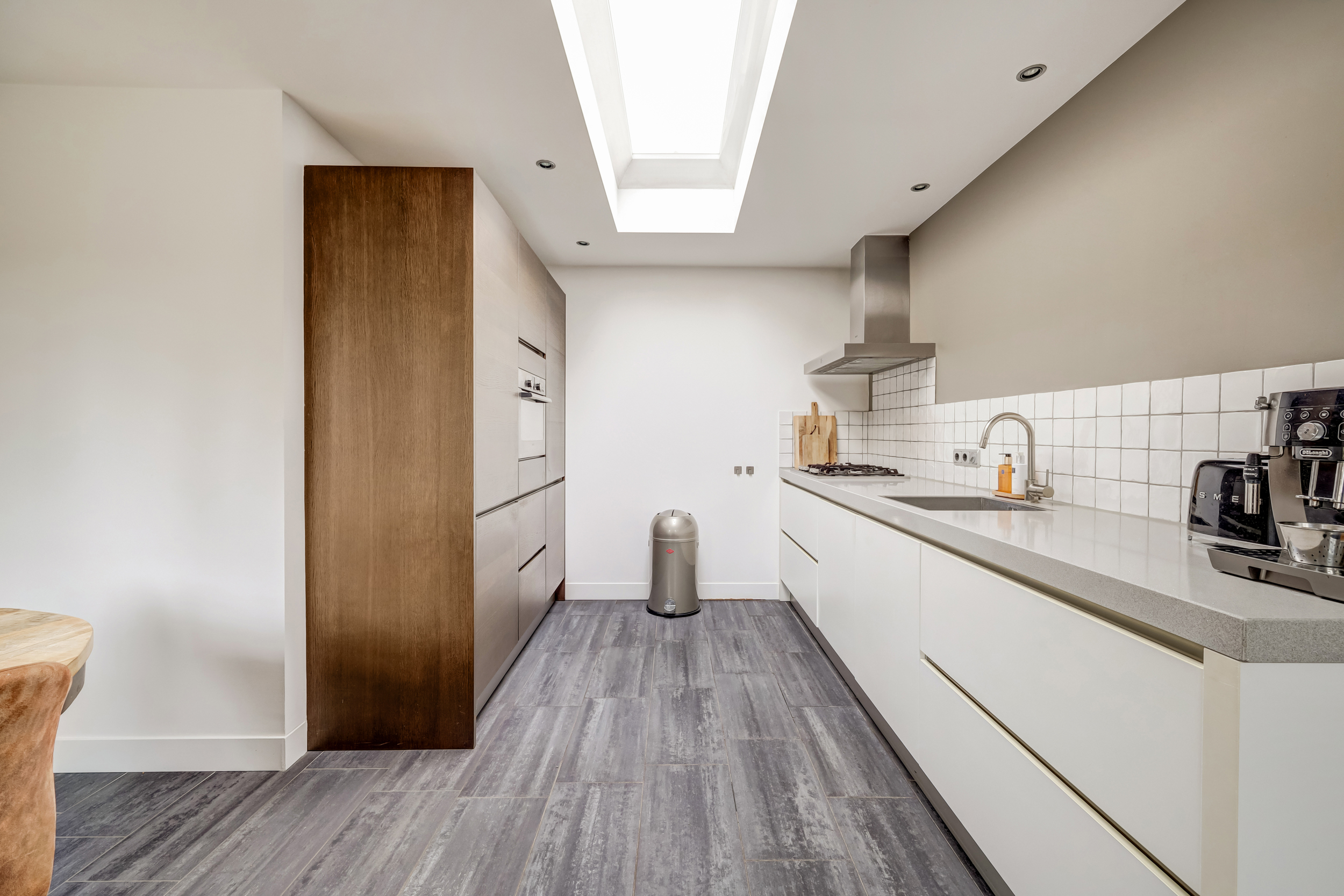 De keuken is van alle gemakken voorzien en volledig modern afgewerkt. Hier vind je een 5-pits gasfornuis, koelkast, oven en vaatwasser, allemaal geïntegreerd in een strak en tijdloos design. Een lichtkoepel laat extra daglicht binnenstromen, waardoor de ruimte open en luchtig aanvoelt.