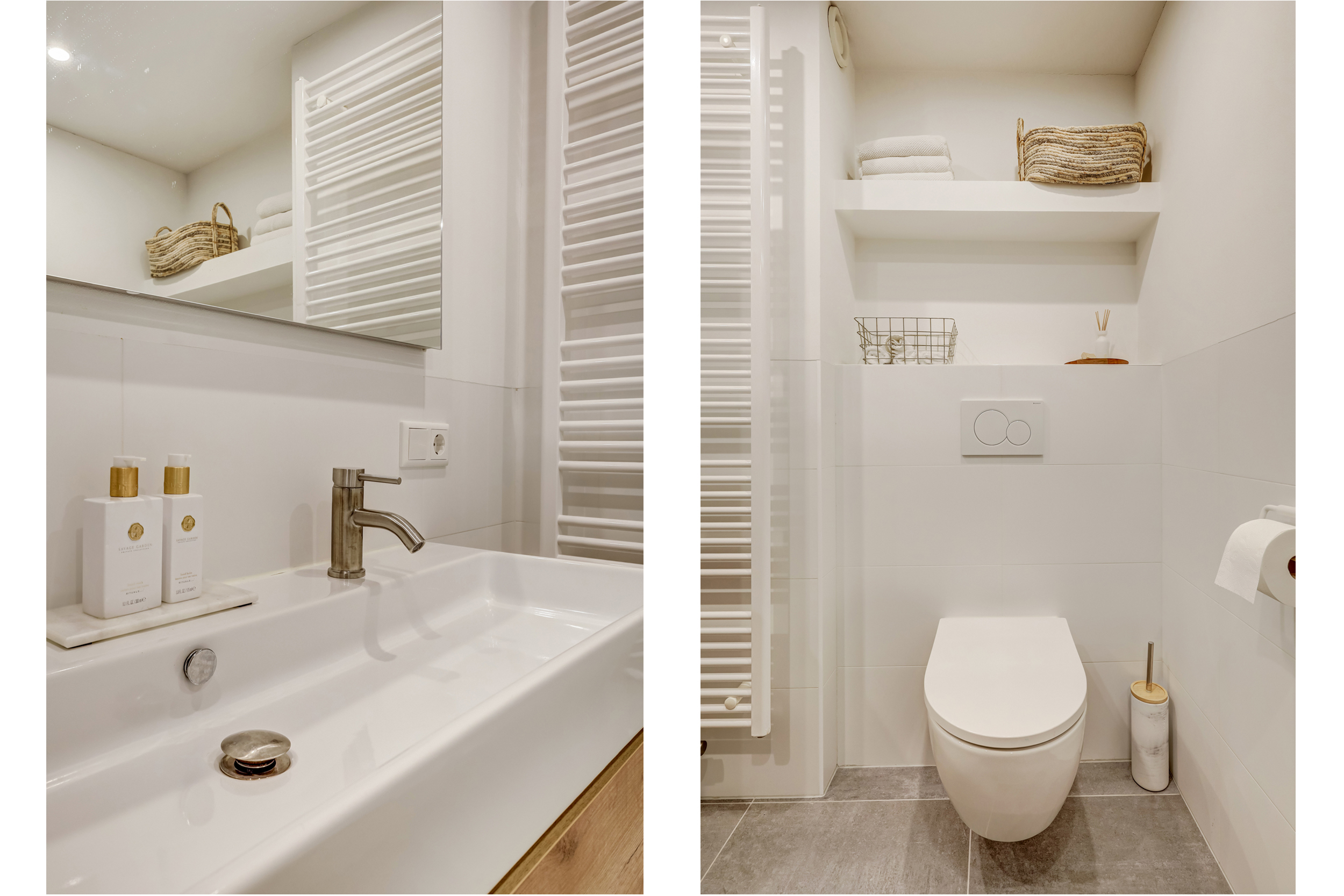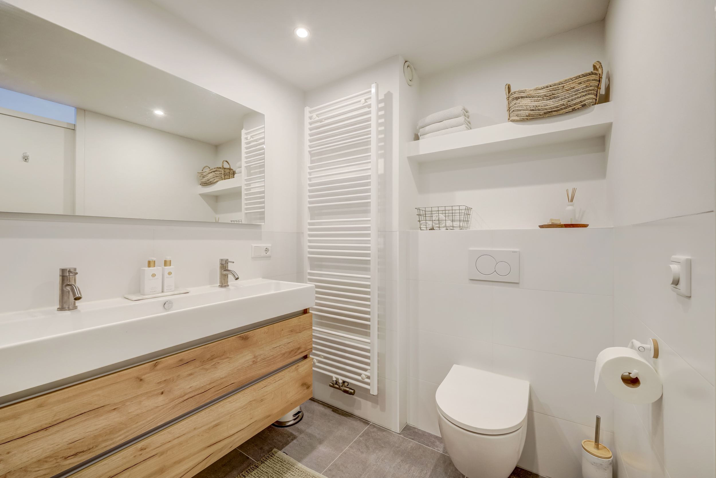 Twee ruime slaapkamers (oorspronkelijk drie slaapkamers), waarvan één met inbouwkast. De moderne badkamer (2020) is volledig vernieuwd en biedt een dubbele wastafel met meubel, een zwevend toilet en een inloopdouche. Stijlvol en functioneel.